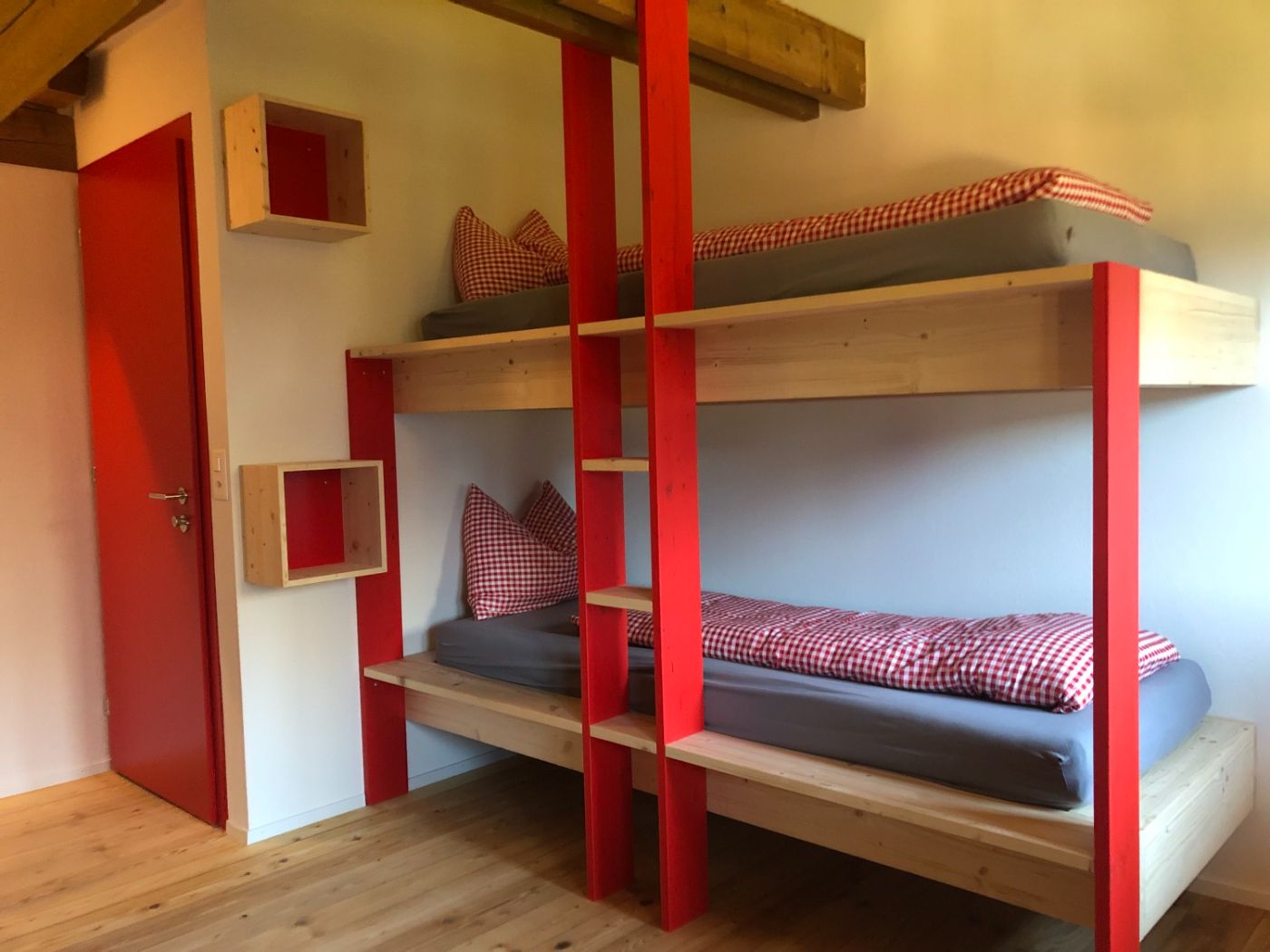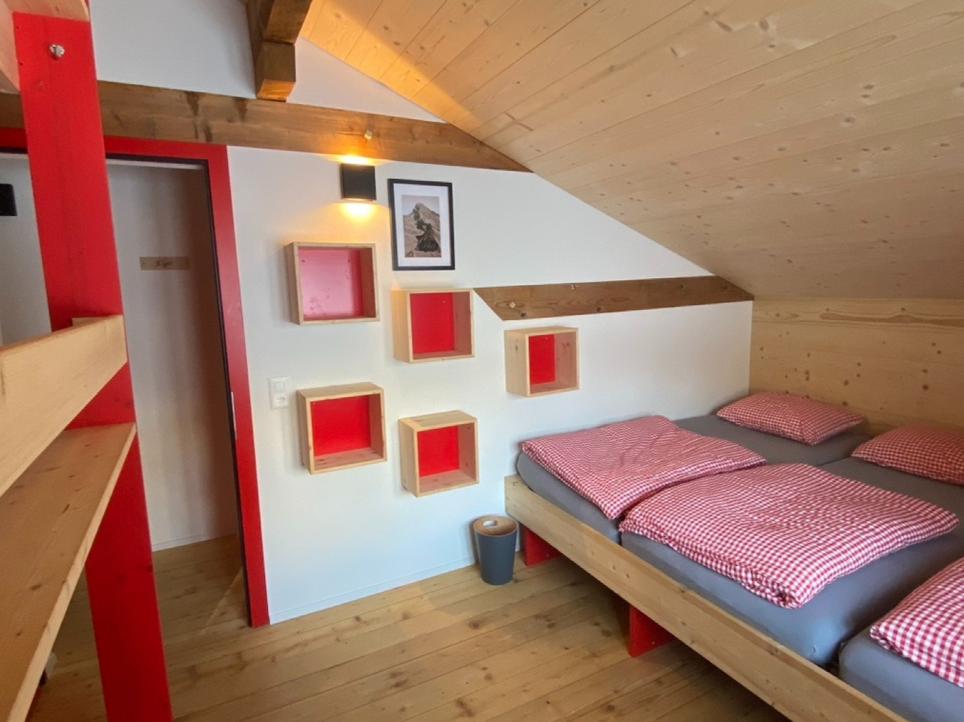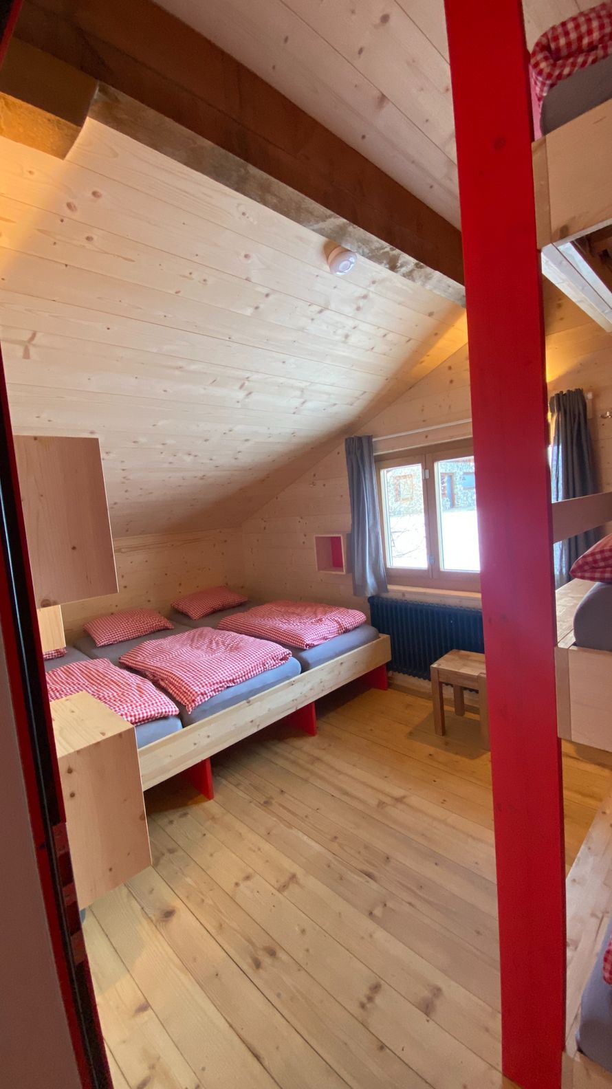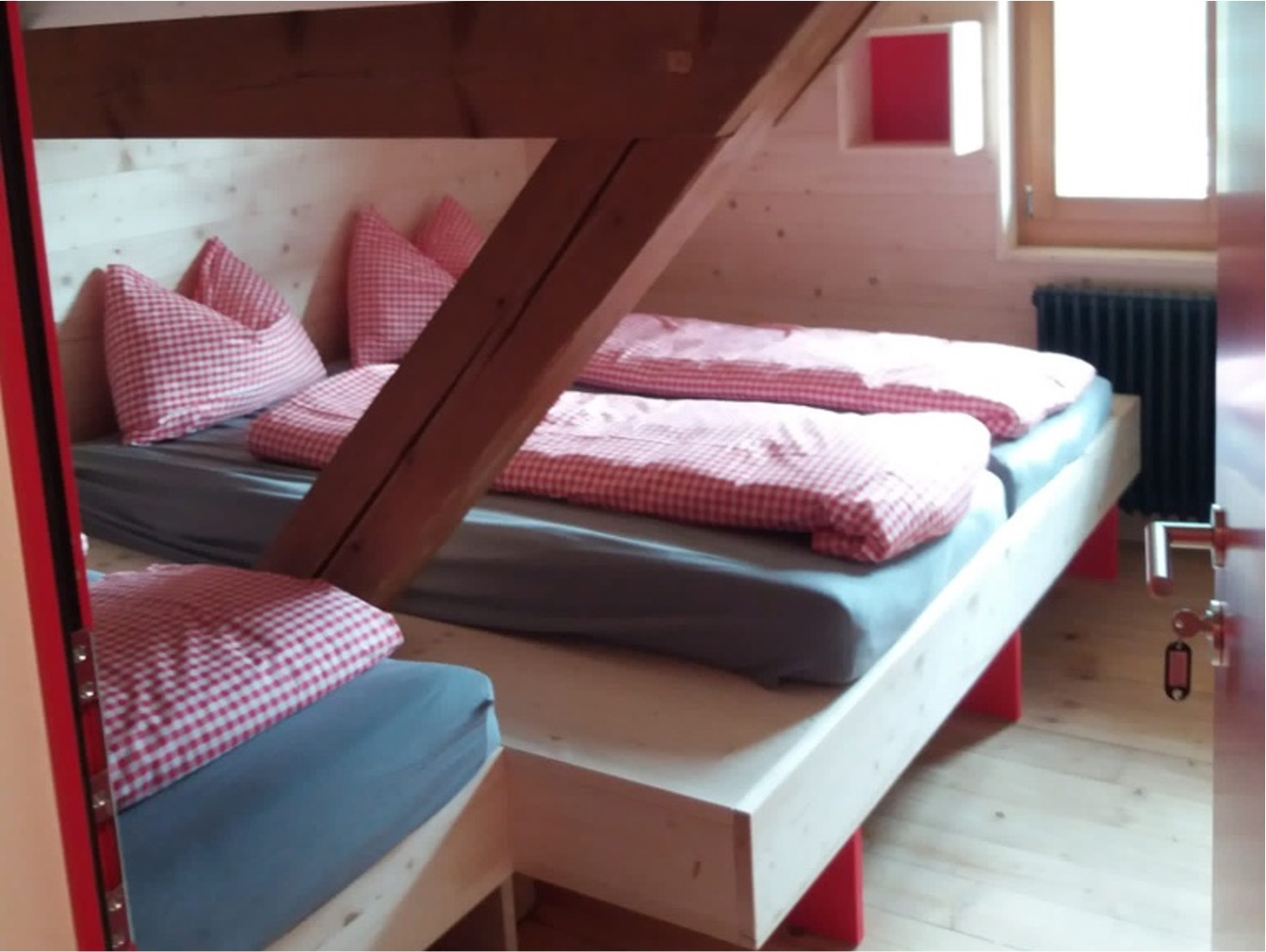 Das Haus bietet Dir 24 Schlafplätze in 5 gemütlichen Zimmern mit 4 bis 6 Betten im ersten Stock. Im Erdgeschoss erwartet Dich ein grosser Aufenthaltsraum mit Lese- und Spielecke sowie eine gut ausgestattete Küche mit Kochfeld, Backofen, Kühlschrank und Spülbecken. Im Untergeschoss findest Du Duschen, Waschräume und Toiletten. Praktisch für Deinen Aktivurlaub: eine Schuh-Trocknungsanlage und Platz zum Aufhängen nasser Kleidung. Eine aktive Lüftung sorgt dafür, dass alles schnell wieder einsatzbereit ist.