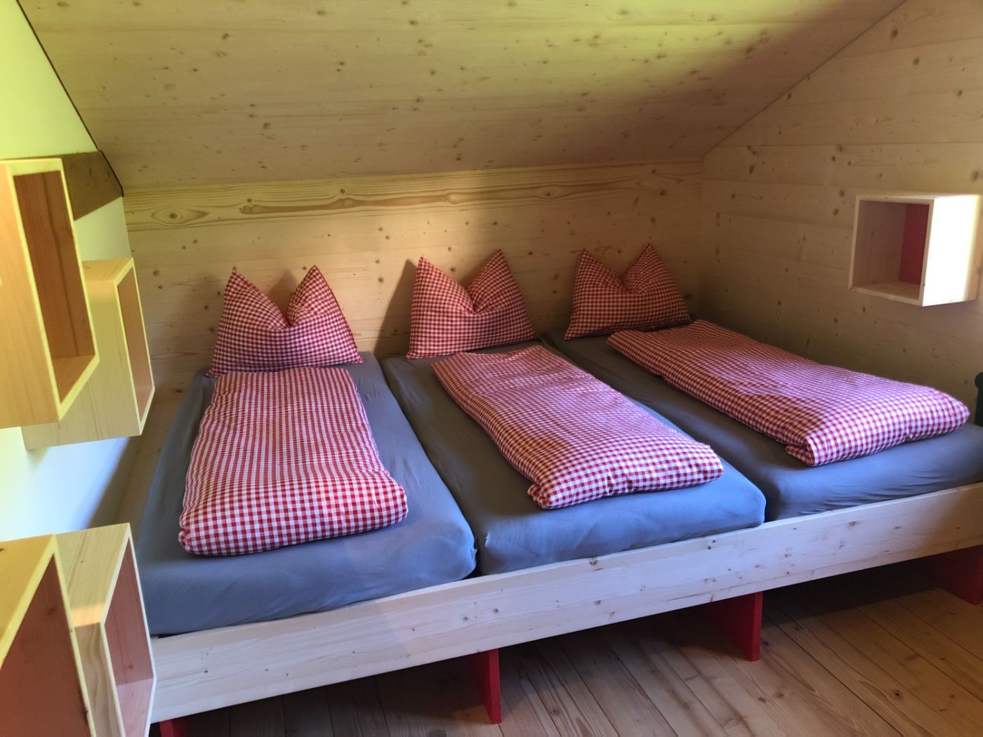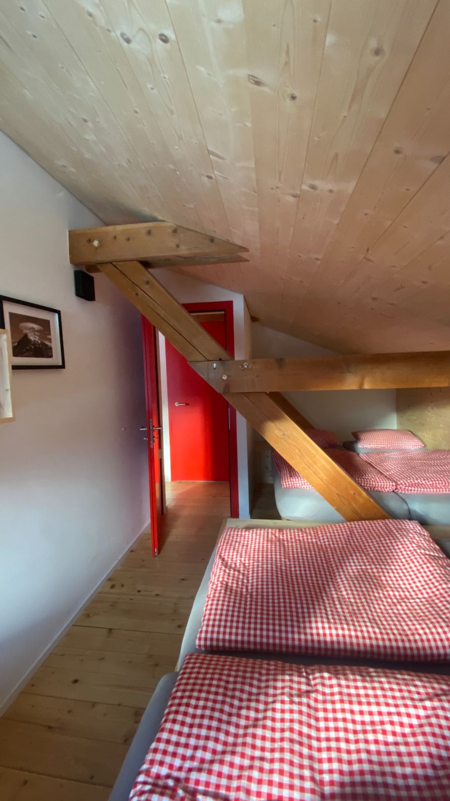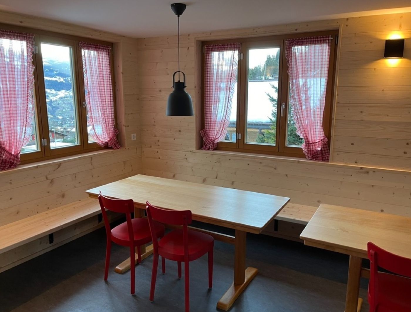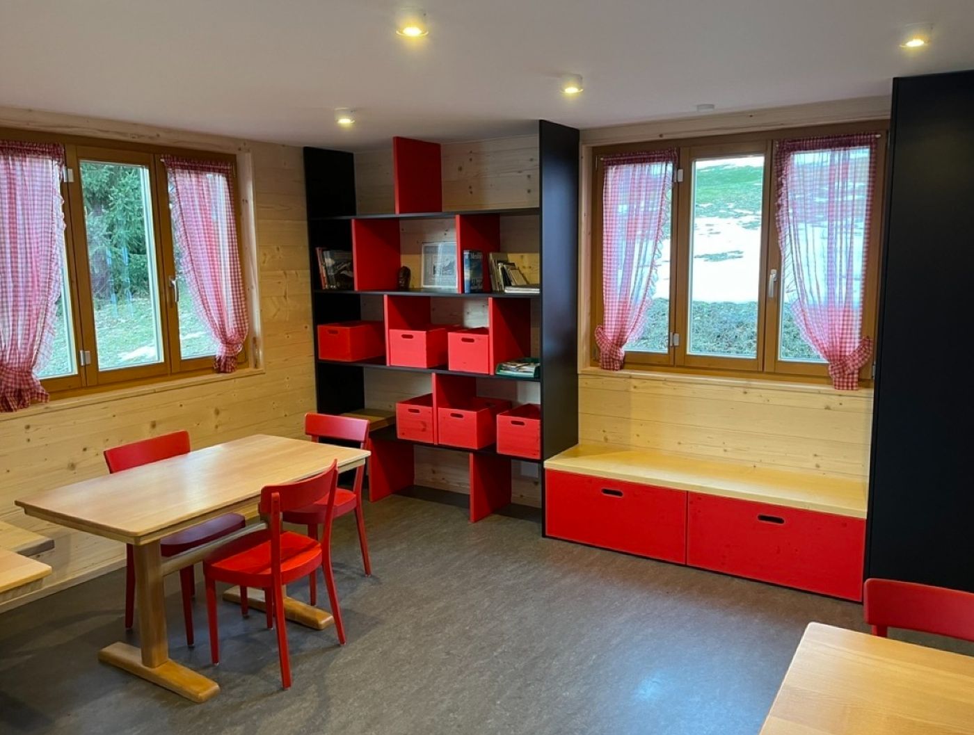 Das Haus bietet Dir 24 Schlafplätze in 5 gemütlichen Zimmern mit 4 bis 6 Betten im ersten Stock. Im Erdgeschoss erwartet Dich ein grosser Aufenthaltsraum mit Lese- und Spielecke sowie eine gut ausgestattete Küche mit Kochfeld, Backofen, Kühlschrank und Spülbecken. Im Untergeschoss findest Du Duschen, Waschräume und Toiletten. Praktisch für Deinen Aktivurlaub: eine Schuh-Trocknungsanlage und Platz zum Aufhängen nasser Kleidung. Eine aktive Lüftung sorgt dafür, dass alles schnell wieder einsatzbereit ist.
