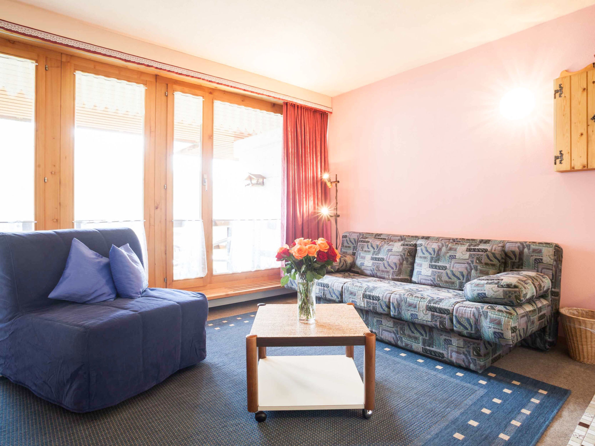 "Résidence Arzinol", 1-Zimmer-Studio 30 m2 im 1. Stock. Zweckmässig eingerichtet: Wohn-/Schlafzimmer mit Kabel-TV. Ausgang zum Balkon. Offene Küche (2 Kochplatten, elektrische Kaffeemaschine) mit 1 Diwanbett und 1 Doppeldiwanbett. Bad/WC. Balkon, Südlage. Balkonmöbel. Zur Verfügung: Internet (Wireless LAN, gratis). Bitte beachten: Nichtraucher-Unterkunft.