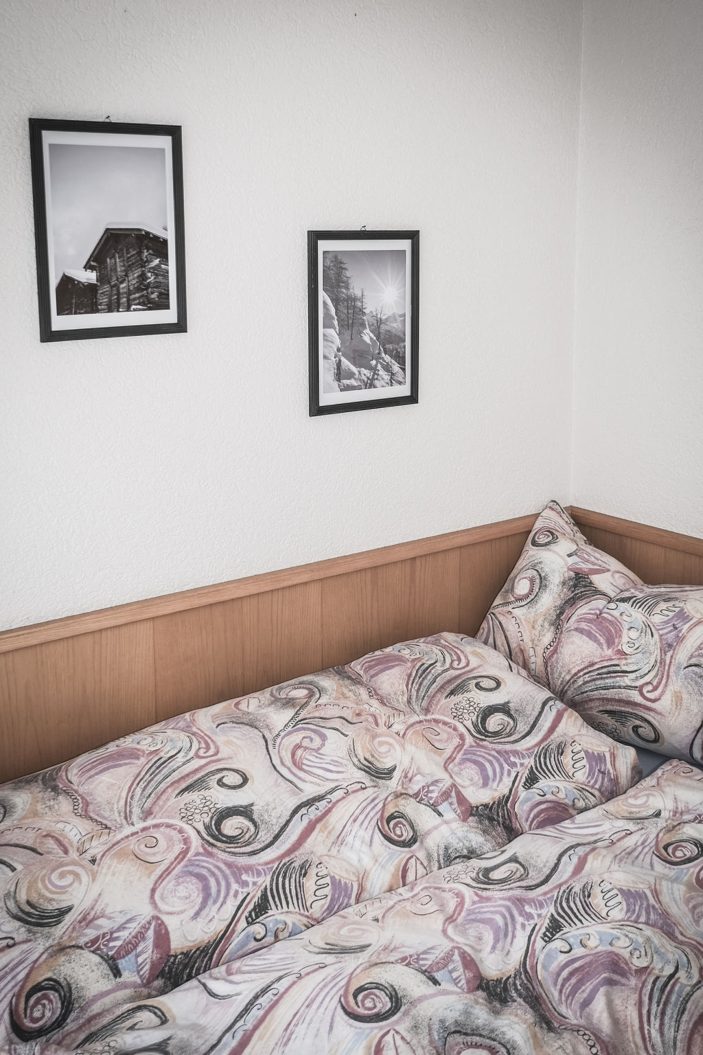 3-Zimmer-Wohnung 55 m2, im Obergeschoss. Gemütlich eingerichtet: Wohn-/Esszimmer mit 2 Diwanbetten, Esstisch und Sat-TV (Flachbildschirm), Radio und DVD. Ausgang zum Balkon. 1 Doppelzimmer. 1 Doppelzimmer mit Waschbecken. Offene Küche (3 Kochplatten, Backofen, Wasserkocher, Mikrowelle, elektrische Kaffeemaschine, Fondue Set (Käse)). Bad/WC oder Dusche/WC. Ölheizung. Balkon, Südlage. Balkonmöbel, Liegestühle (2). Panoramasicht auf die Berge und die Ortschaft. Zur Verfügung: Kinderhochstuhl. Internet (Wireless LAN, gratis). Bitte beachten: Nichtraucher-Unterkunft. Wohnung befindet sich in der 1., 2. oder 3. Etage.