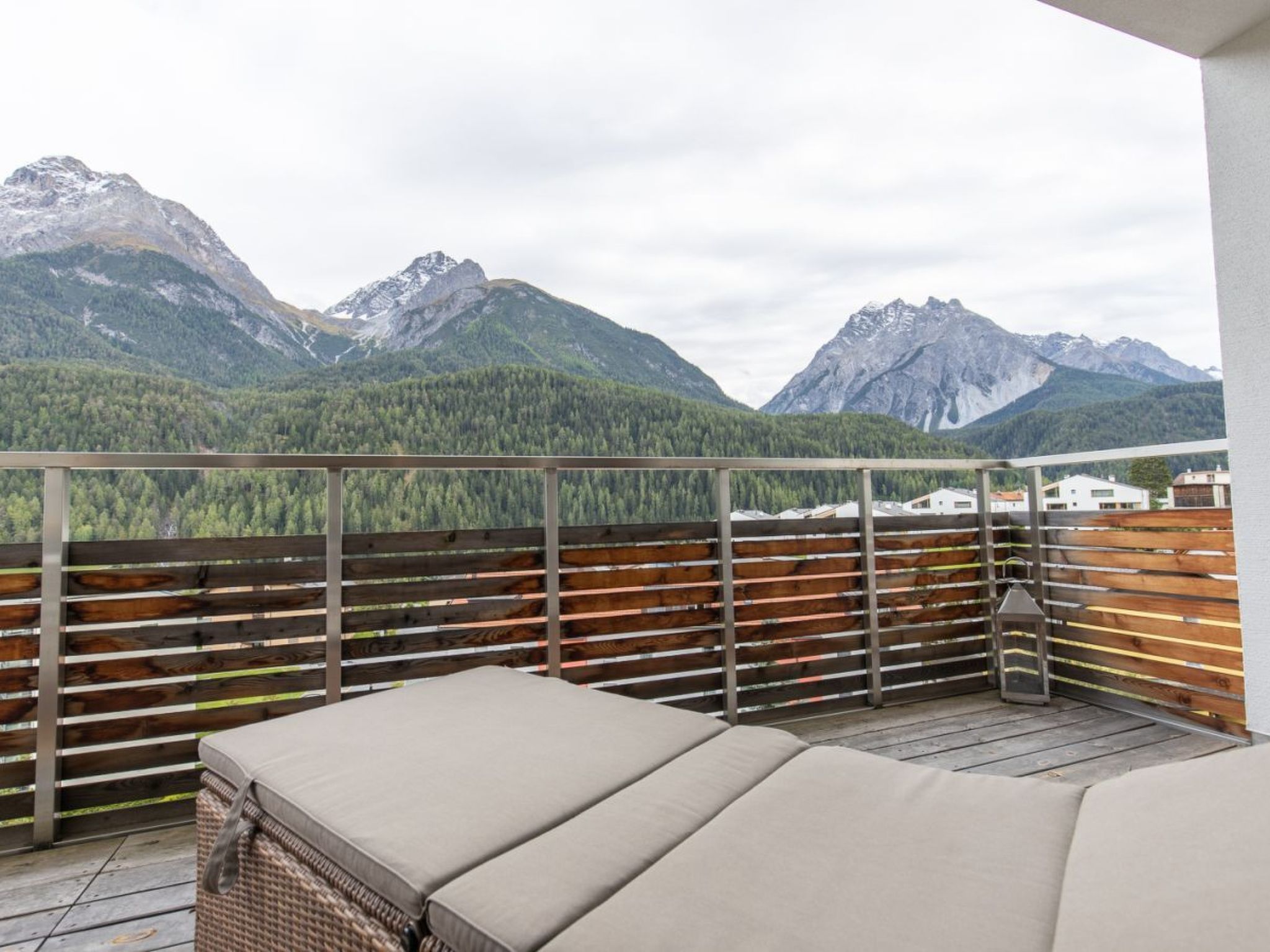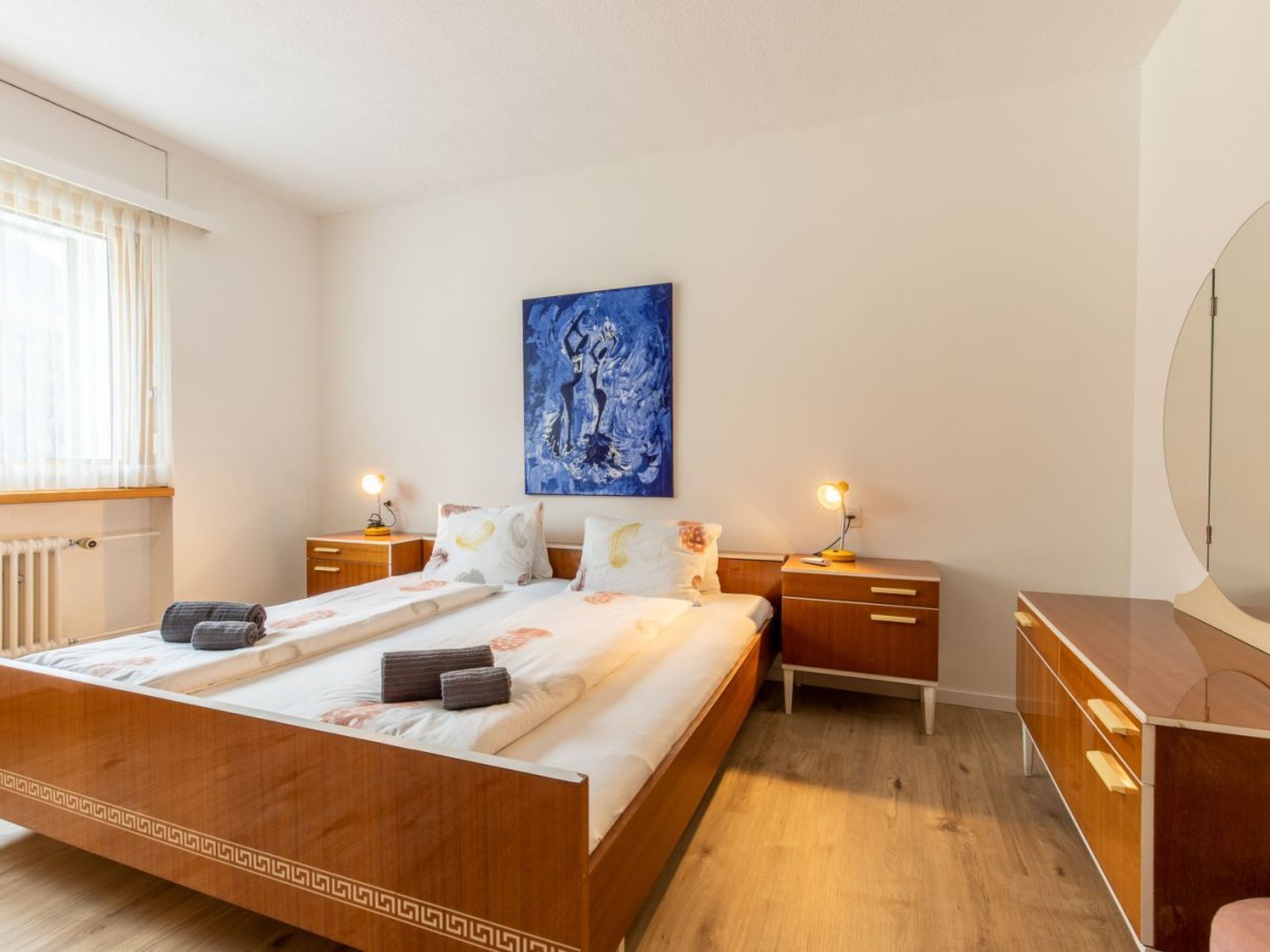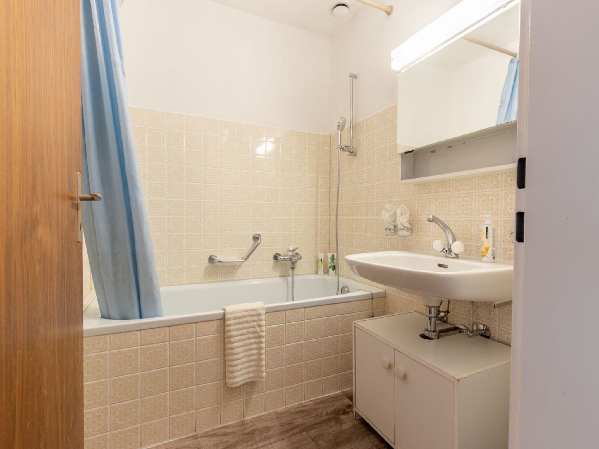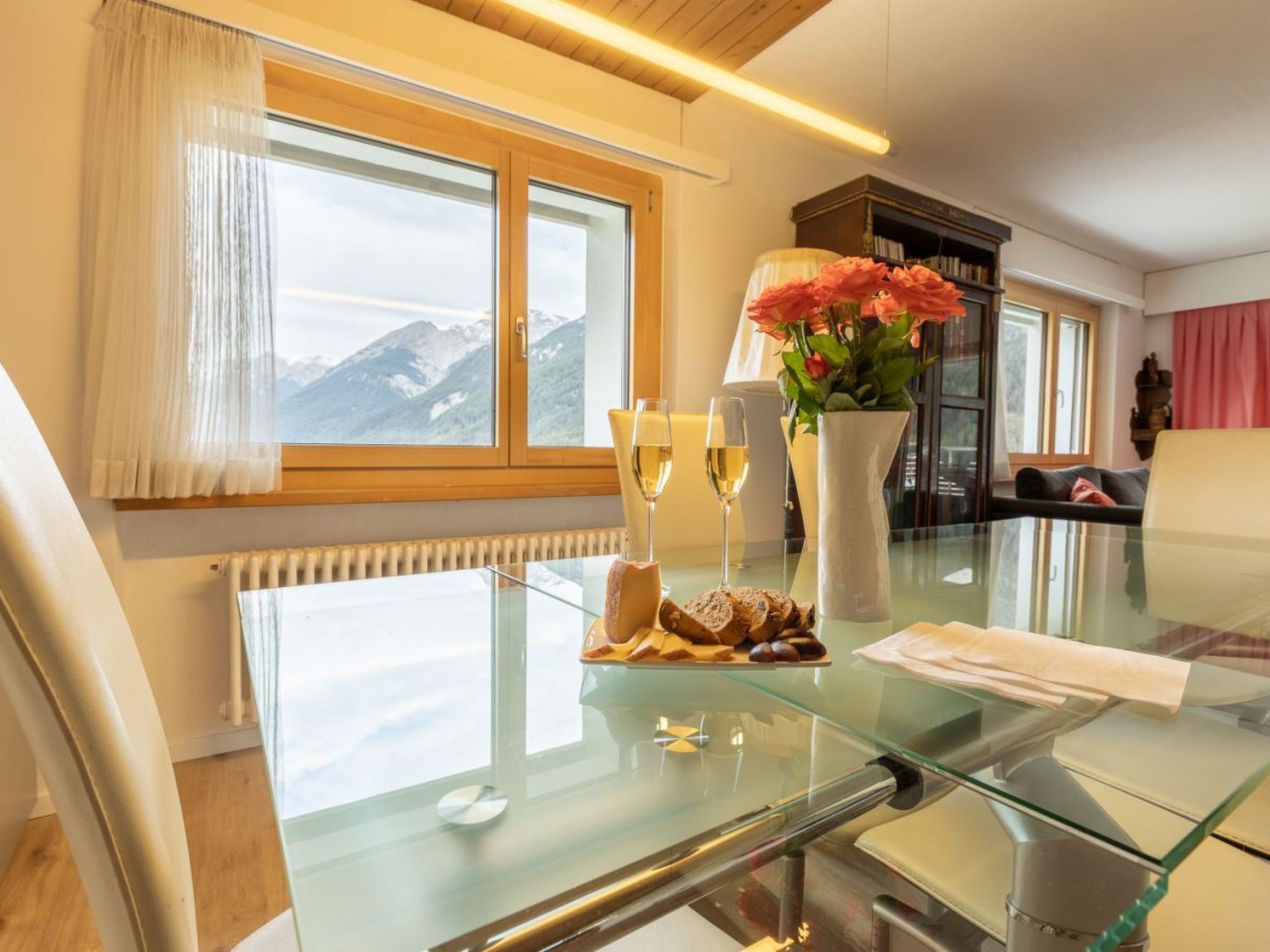 In der hellen und grosszügigen Wohnung (94m2) kann man die Ferien rundum geniessen. Vom geräumigen Wohnzimmer mit grossem Esstisch und Fenstern Richtung Osten und Süden hat man eine tolle Aussicht auf den Piz Lischana und das Tal. Die ältere aber zweckmässige Küche ist mit neuem Geschirrspüler, älterem Backofen, Kochherd und grossem Kühlschrank mit Gefrierfach ausgestattet. Die ganze Wohnung verfügt über einen neuen Laminatboden.