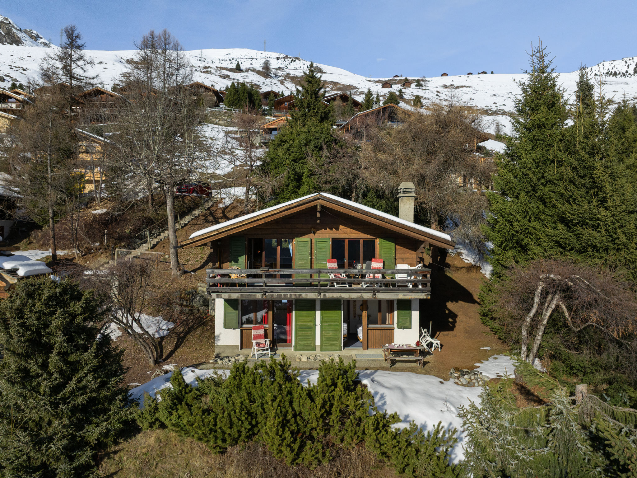 Chalet "5 -Ecorces", auf 3 Stockwerken. Oberhalb von Verbier, ruhige, sonnige Lage, Richtung Süden. Im Hause: Skiraum. Treppenweg bis zum Haus. Supermarkt 3 km, Restaurant 500 m, Bäckerei 2.8 km, Bushaltestelle 50 m. Golfplatz (18 Loch) 2.1 km, Sportzentrum 3.2 km, Gondelbahn 1.7 km, Skibushaltestelle 50 m, Skischule 1.6 km. Bitte beachten: Fahrzeug empfohlen.
