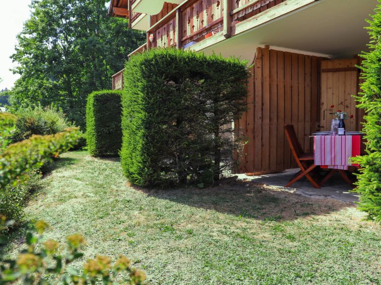 "Chaperon Rouge A3", 2-Zimmer-Wohnung 42 m2, im erhöhten Erdgeschoss, Südwestlage. Vollständig renoviert im Jahre 2019, komfortabel und schön eingerichtet: Wohn-/Esszimmer mit 1 Diwanbett (140 cm), TV (Flachbildschirm). Ausgang zum Garten. 1 Doppelzimmer mit 1 Doppelbett (160 cm, Länge 200 cm). Offene Küche (Backofen, Geschirrspüler, 4 Glaskeramikplatten, Toaster, Wasserkocher, Mikrowelle, Tiefkühler, elektrische Kaffeemaschine, Kapseln für die Kaffeemaschine (Dolce Gusto) extra, Racletteofen, Fondue Set (Käse)) mit Bar. Dusche/WC. Holzdielenboden. Kleine Terrasse 8 m2. Terrassenmöbel. Sehr schöne Panoramasicht auf die Berge und das Tal. Zur Verfügung: Haartrockner. Internet (Wireless LAN, gratis). Parkplatz Nr. A3. Bitte beachten: Nichtraucher-Unterkunft.