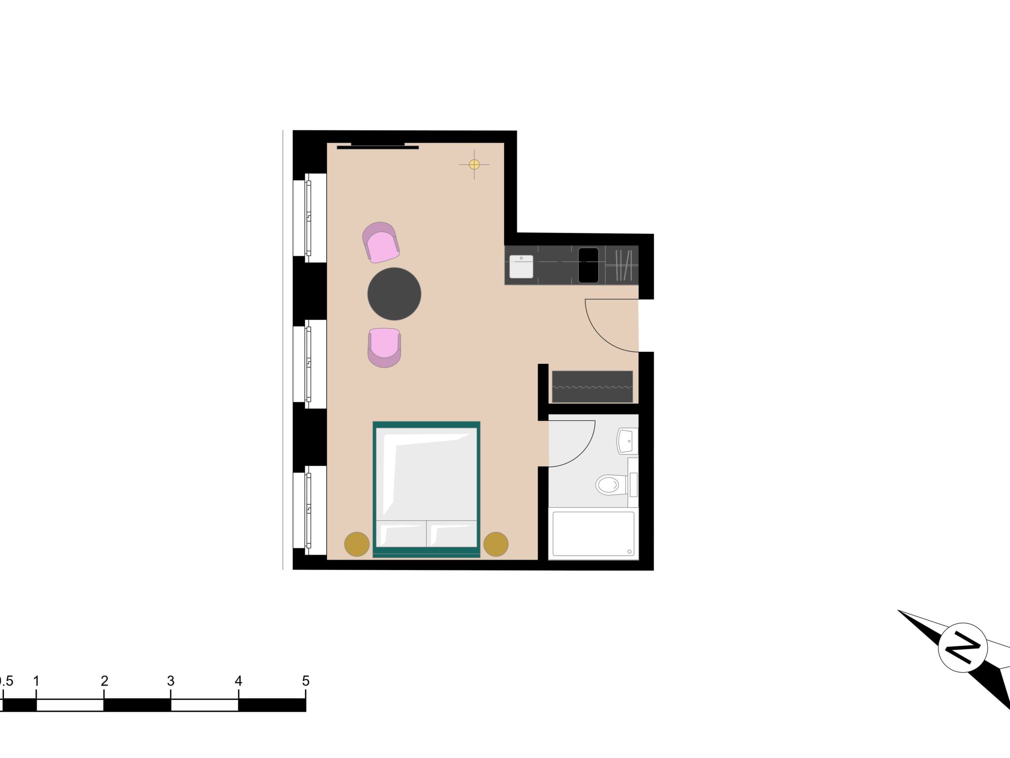 - Schlafzimmeranzahl: Studio (kein separates Schlafzimmer)