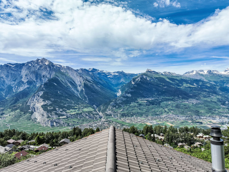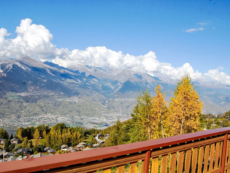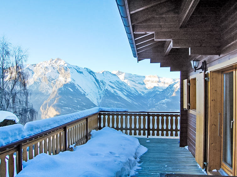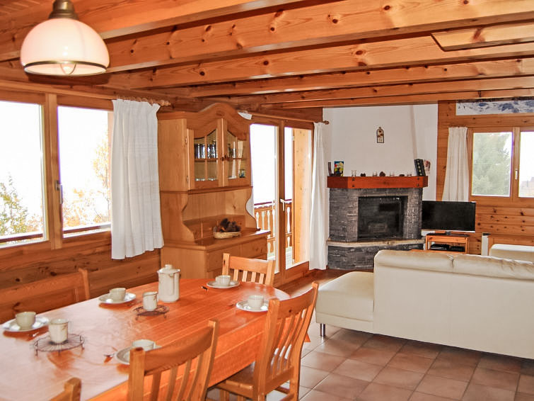 "Chalet Boucaro", 5-Zimmer-Chalet 110 m2 auf 3 Stockwerken. Einfach eingerichtet: Wohn-/Esszimmer mit offenem Kamin, Kabel-TV, Radio und DVD. Ausgang zum Balkon, zur Terrasse, Richtung Norden und Richtung Westen. Offene Küche (4 Kochplatten, Backofen, Geschirrspüler, Toaster, Wasserkocher, Mikrowelle, Racletteofen, Fondue Set (Chinoise, Käse)). Dusche/WC. E-Heizung. Unteres Geschoss: 1 Zimmer mit 1 franz. Bett (140 cm, Länge 200 cm). 1 Zimmer mit 1 Bett (90 cm, Länge 190 cm). Bad/WC. Dachgeschoss: offene Galerie mit 3 Betten (90 cm, Länge 190 cm). 1 Zimmer mit 1 franz. Bett (140 cm, Länge 200 cm). Balkon, Terrasse. Terrassenmöbel, Gartengrill. Sehr schöne Sicht auf das Tal. Zur Verfügung: Babybett, Haartrockner. Internet (WLAN, gratis). Parkplatz, Garage. Bitte beachten: Nichtraucher-Unterkunft. Anstelle eines abgeschlossenen Schlafzimmers befinden sich manche Schlafplätze in einem offenen Bereich (Galerie, Nische etc.).