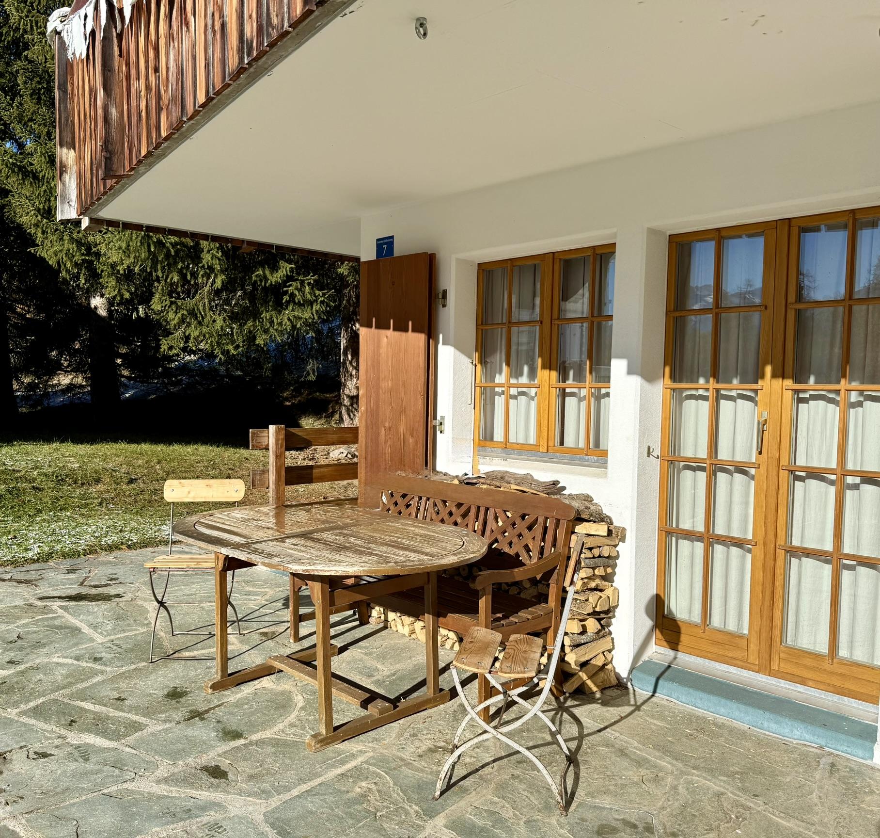 Das Haus liegt auf etwa 1 600 m ü. M., in einer Wohnlage, in der Kinder ohne große Gefahren draußen spielen können – mit Wiese, Terrasse, Spielraum im Freien und viel Natur rundherum.