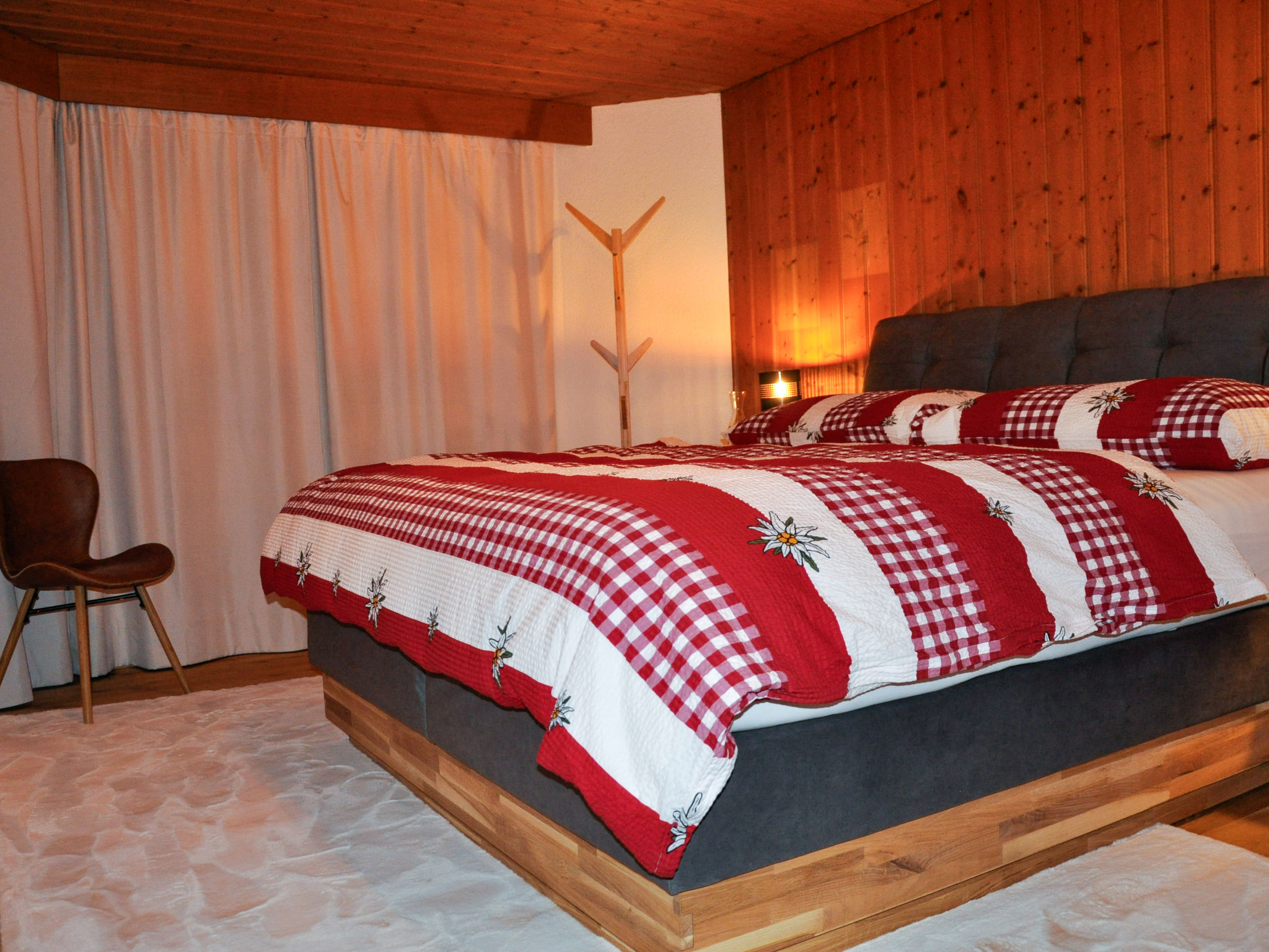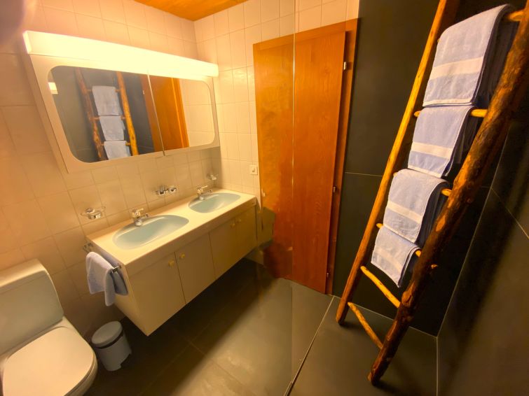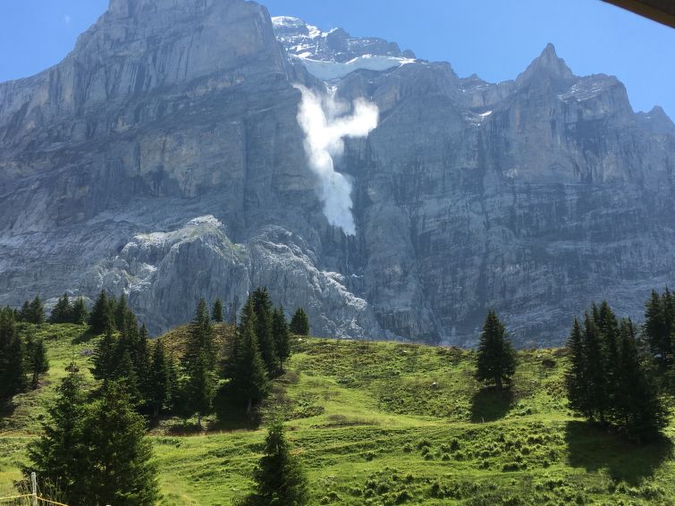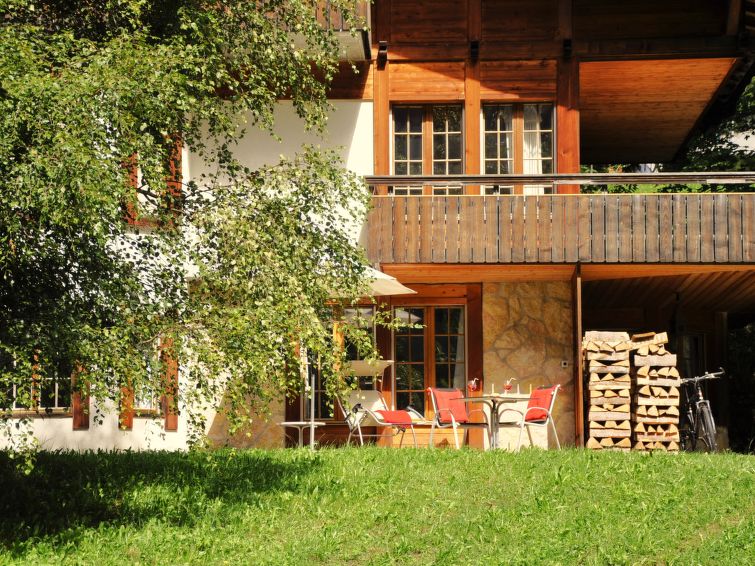 2-Zimmer-Wohnung 64 m2, im Erdgeschoss, Südlage. Geräumig, rustikal und gemütlich eingerichtet: Wohnzimmer mit Internationale TV-Sender. Ausgang zur Terrasse. 1 Zimmer mit 1 Bett (180 cm, Länge 200 cm), Dusche/WC. Wohnküche (Backofen, Geschirrspüler, 4 Glaskeramikplatten, elektrische Kaffeemaschine, Kapseln für die Kaffeemaschine (Nespresso) extra, Racletteofen). Sep. WC. Holzdielenboden, Natursteinboden. Herrliche Sicht auf Eigernordwand. Zur Verfügung: Internet (WLAN, gratis). Parkplatz in 40 m. Bitte beachten: Nichtraucher-Unterkunft.
