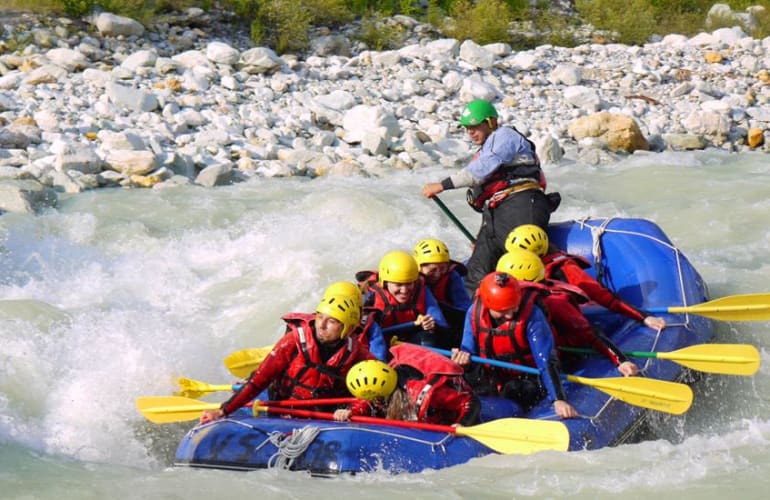 The town of Sierre is surrounded by vineyards and mountains, providing a spectacular natural setting. Rafting in Sierre allows you to admire these landscapes from a totally new angle. Your rafting trip on the Rhône begins with a meeting in Sierre, where you'll be welcomed by your guides and given your rafting equipment. Once equipped, you'll head off to Susten, the starting point for your rafting trip near Sierre.