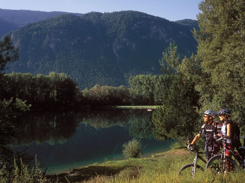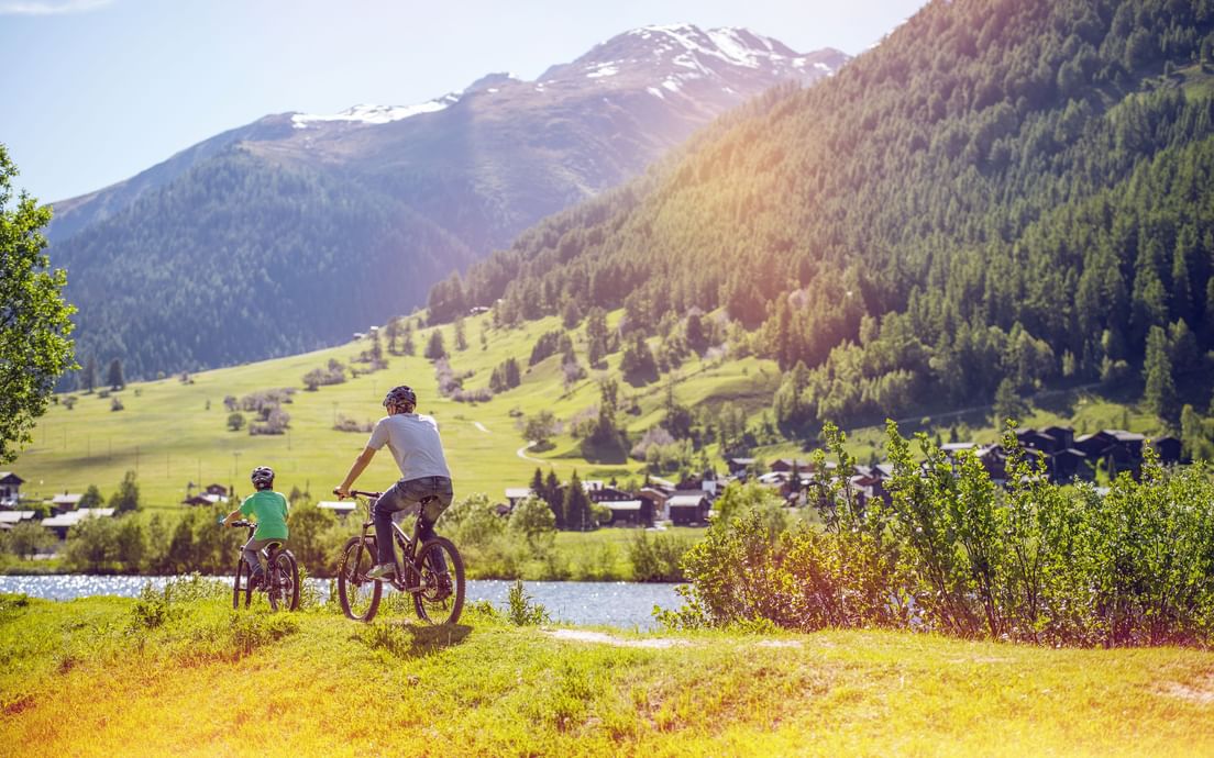 Sun, wine and culture The Rhone-Route connects – between Oberwald and Geneva – three completely different types of landscapes: In the Goms, the landscape is alpine and the route consists for the most part of downhill rides with an occasional rise. In Brig, the Rhone valley widens. Nowhere in Switzerland, is there more sunshine than here in the Wallis. Another change of scenery in Villeneuve. The wide, light flooded area of the Lake of Geneva on one side, the wine hills with sounding names on the other side of the route accompany the cyclist on his way towards the goal of Geneva. The Rhone-Route offers scenic and cultural variety and the flat route profile makes it perfect for casual cyclists aswell.