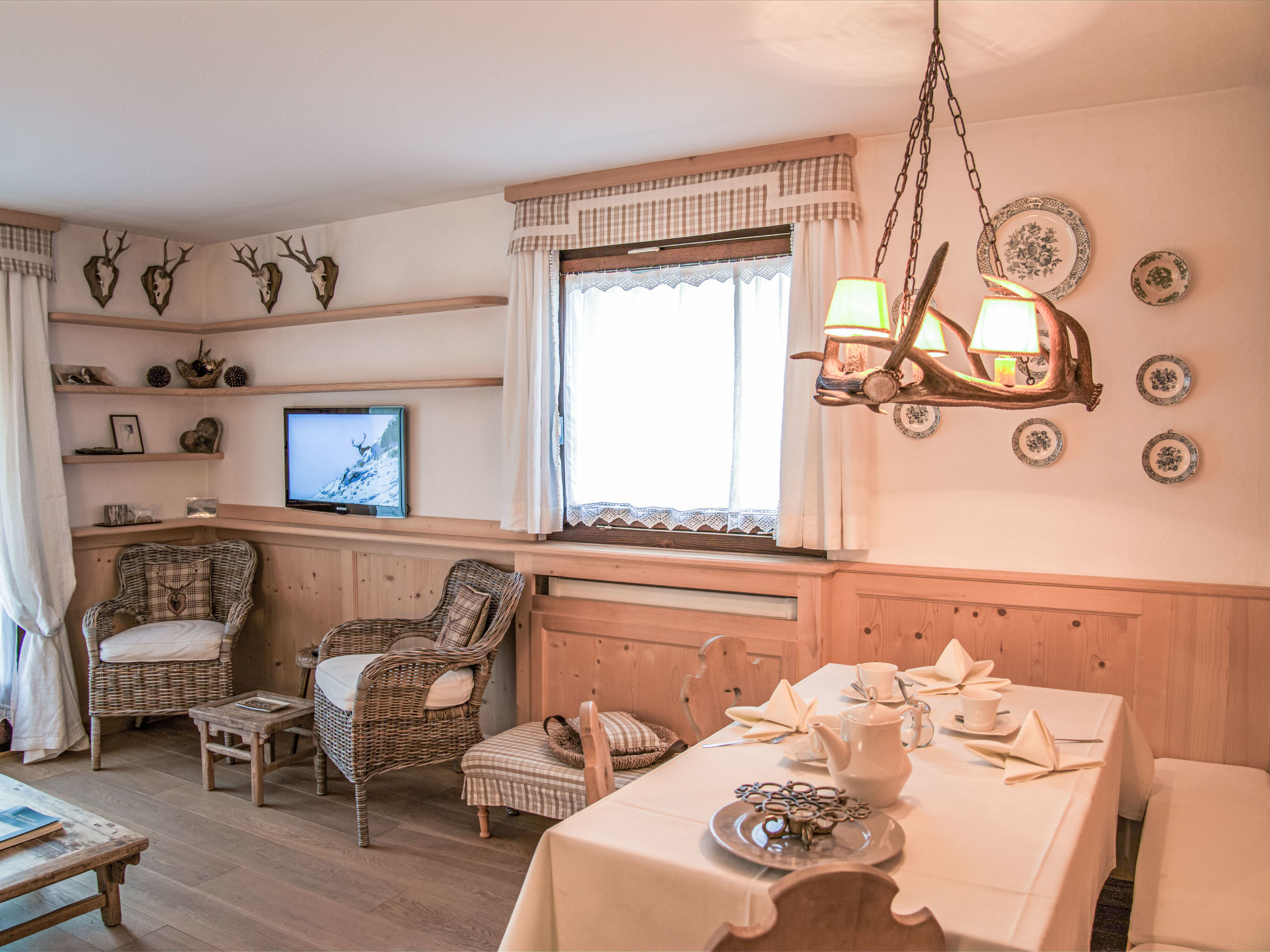 "Chesa Tschierv II 30", 3-room apartment 60 m2, on the upper ground floor. Tasteful and cosy furnishings: open living/dining room with dining nook and TV (flat screen). Exit to the garden, to the balcony. 1 room with 1 double bed (1 x 160 cm, length 190 cm). 1 small children's room with 1 bed (90 cm, length 190 cm), 1 sleeping facility (1 x 70 cm, length 120 cm). Kitchen (oven, dishwasher, 4 ceramic glass hob hotplates, toaster, kettle, microwave, electric coffee machine, Capsules for coffee machine (Nespresso) extra, fondue Set (cheese)). Bath/bidet/WC. Parquet floors. Small balcony 4 m2. Balcony furniture. Side view of the mountains and the resort. Facilities: iron, hair dryer. Internet (WiFi, free). Garage space n 30 on the property, height 200 cm, width 230 cm. Please note: suitable for families. Non-smokers only, non-smoking house. Maximum 1 pet/ dog allowed. No lift. Bed layout is flexible. There are more sleeping options available than the maximum number of people allowed which may, however, not be exceeded.