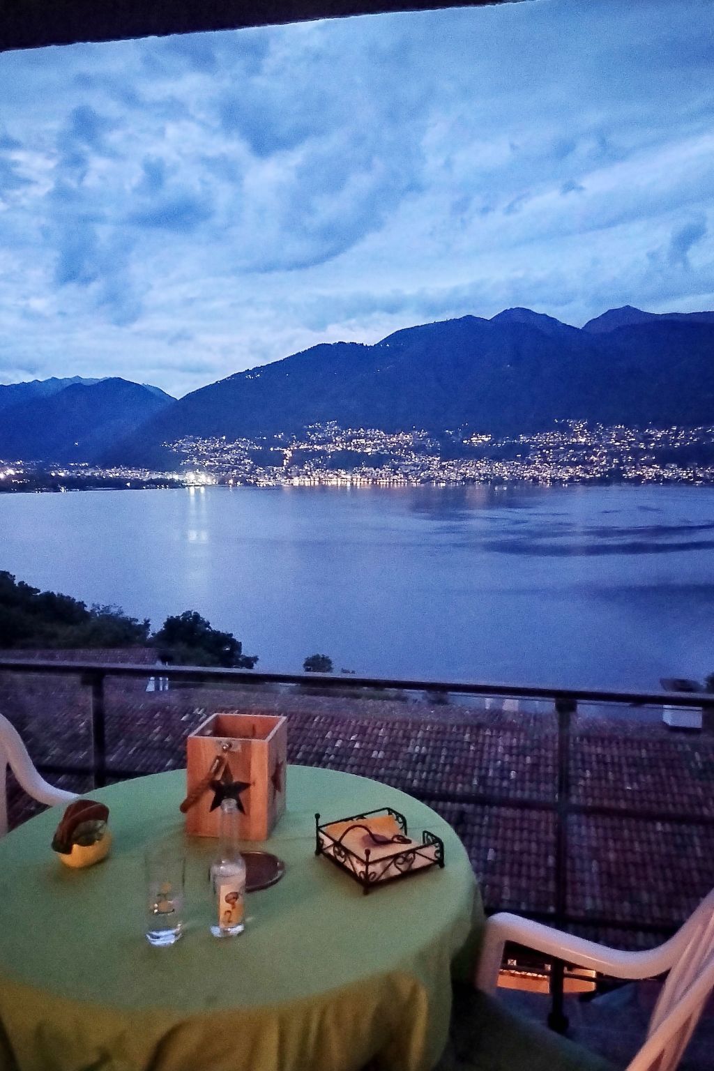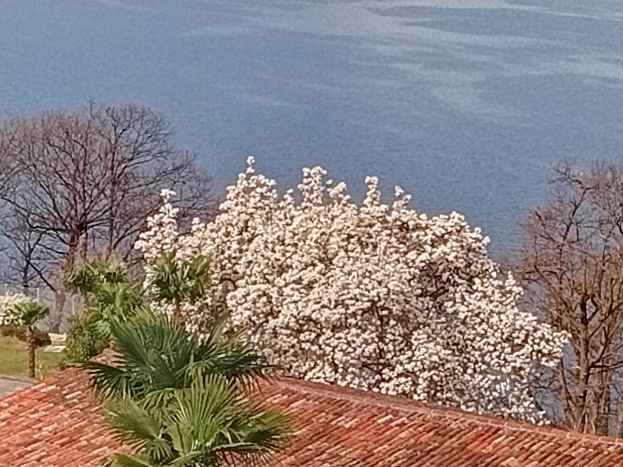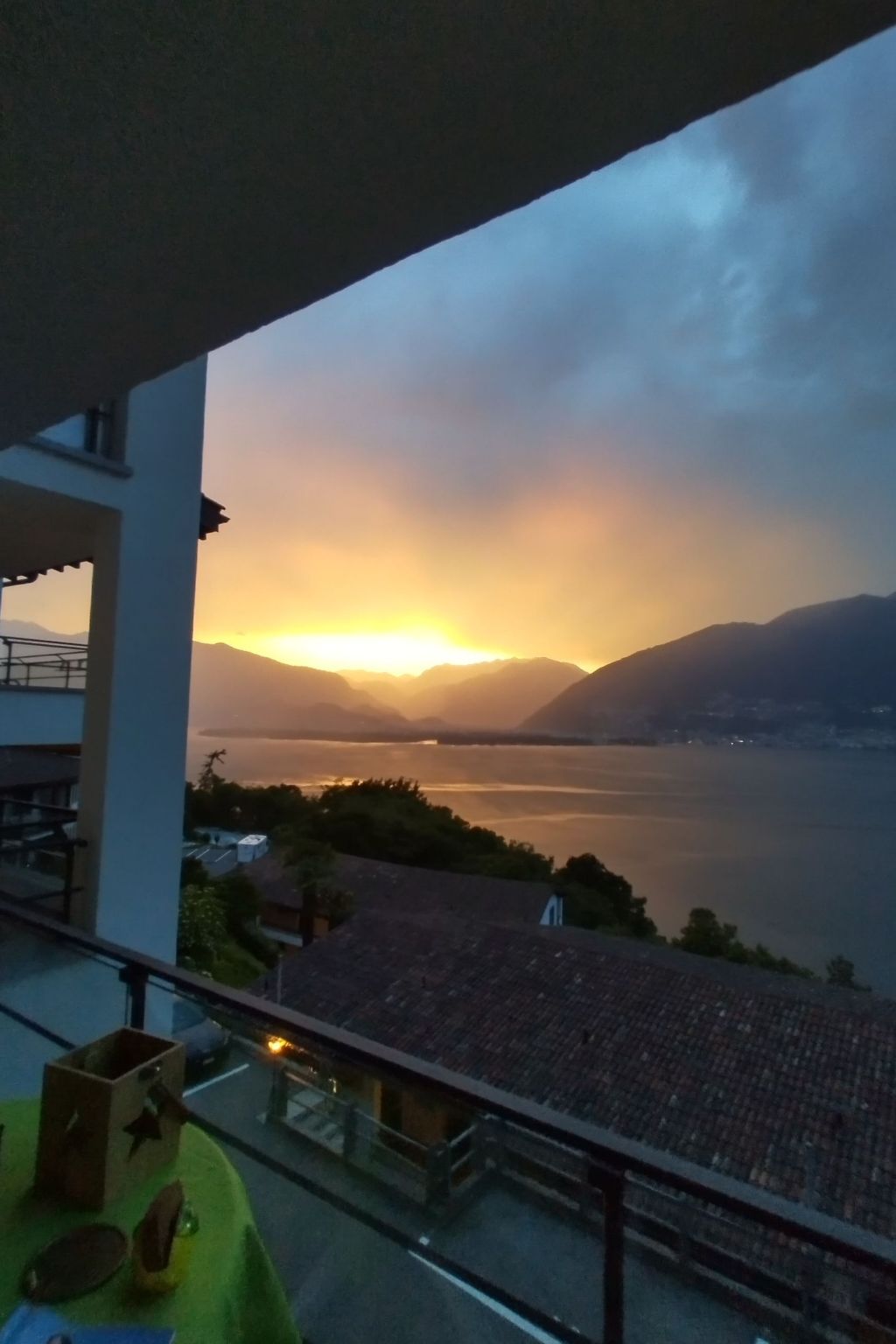 Beautiful holiday flat with TOP view in a small paradise with pool. The one-room flat is located in a park-like, secluded property above Vira with its own swimming pool, rustico, spacious sunbathing lawn and panoramic views of Lake Maggiore and Locarno, fitness room, chess board and playground. The perfect place for rest and relaxation. With its old churches and narrow streets, Gambarogno has largely retained the character of the past. The covered balcony offers a magnificent view of Lake Maggiore and Locarno at any time of day. The fully furnished flat is located on the 2nd floor, without lift, in Casa Fiona of the very well-maintained Residenza Viramonte. The Residenza Viramonte consists of 6 houses on a well-kept hillside plot of approx. 16000 m2. Each house has a heat pump for hot water and heating. The flat itself is 46 m2 and has new windows with triple glazing. The beds are made and the bathroom and kitchen linen are laid out. Please bring your own large towels for the pool and beach.