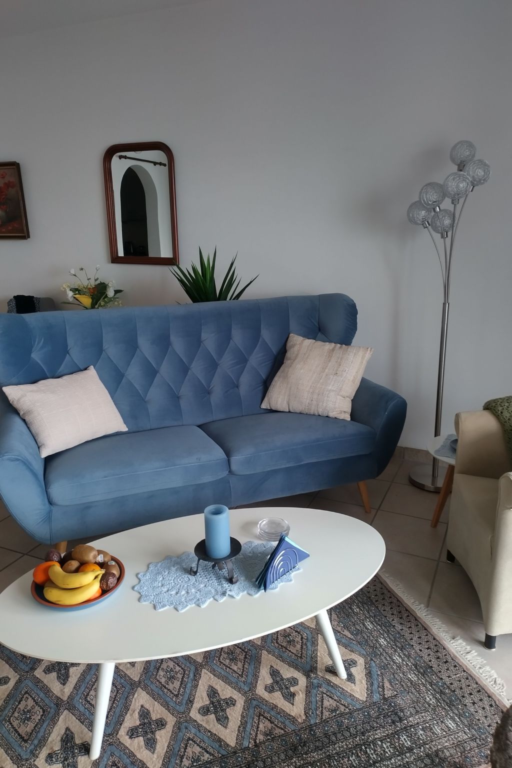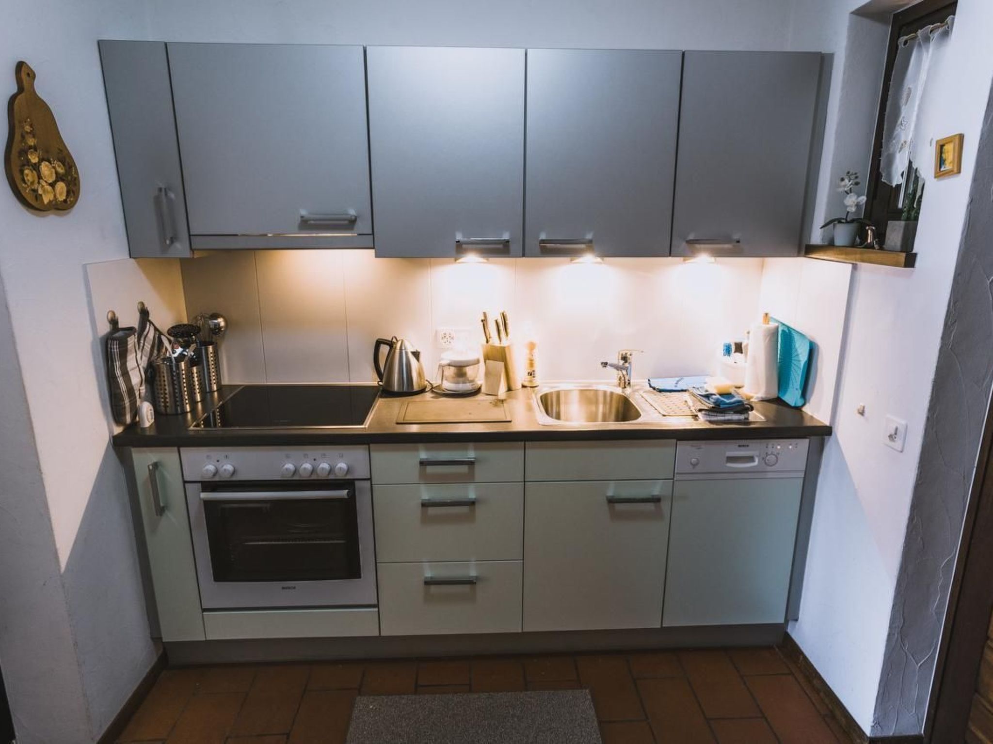 Kitchen in the entrance area with dishwasher, cooker with ceramic hob, microwave, extractor bonnet, oven, large fridge with freezer compartment, kettle, filter coffee machine (suitable filter paper is available), toaster, moka maker, elect. Press for citrus fruits, crockery, glasses and cutlery for 4 persons, 3 pans, 2 frying pans, knife block, 2 rubbish bags, washing-up liquid, liquid hand soap, tabs for dishwasher, household paper, aluminium foil, cling film, salt, pepper, sugar sticks, paper napkins and candles.