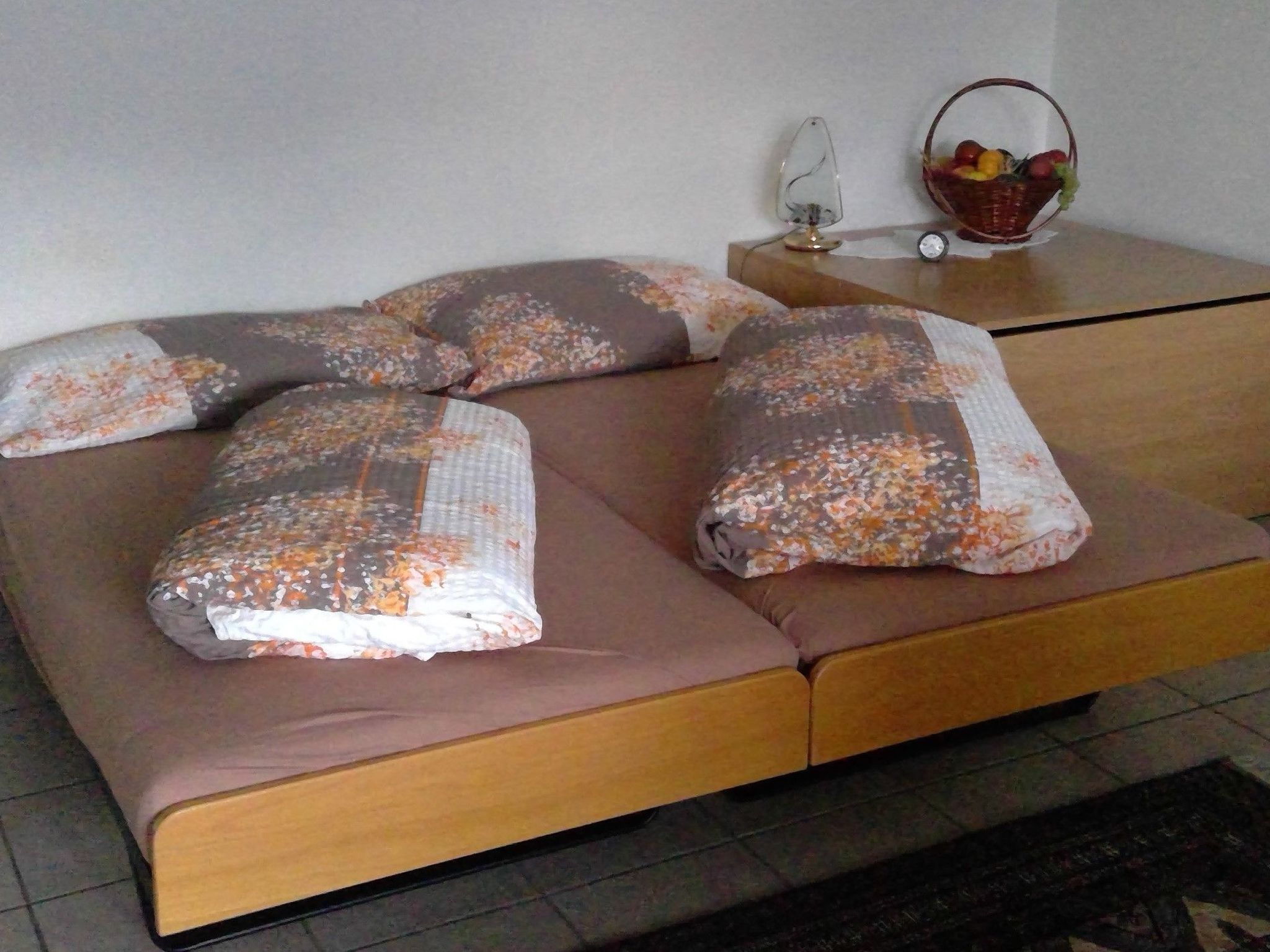 Combined living/bedroom with 2 beds 190x90cm, dining table, 4 chairs, 1 sofa, 1 armchair, reading lamp, mirrored wardrobe (3 doors), serving tray, TV with radio, satellite reception, free WLAN.
