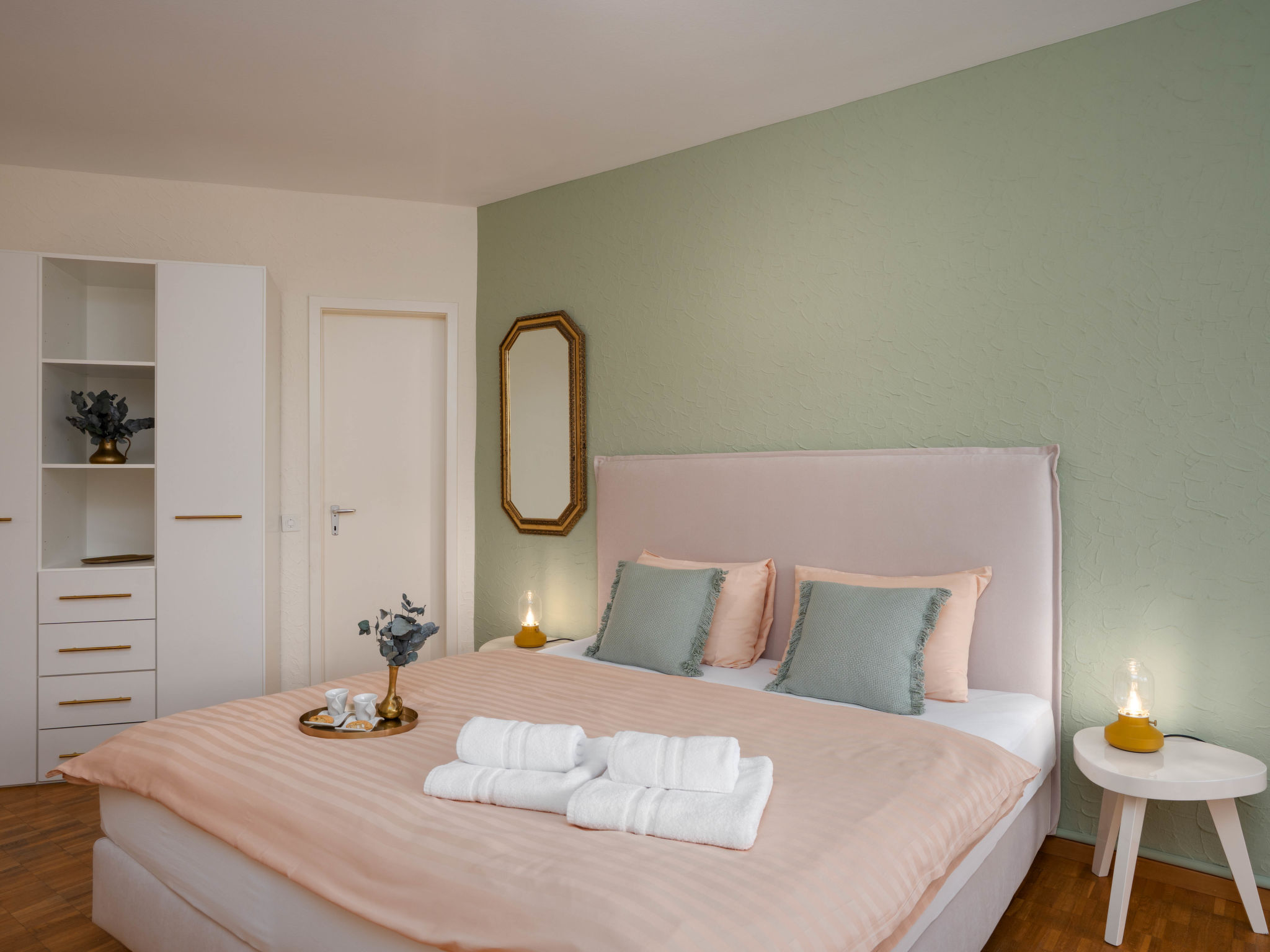"Double Room Classic", 1-room apartment 35 m2 on 1st floor, south facing position. Living/sleeping room with 1 double bed (1 x 180 cm, length 200 cm), satellite TV and radio. Kitchenette (oven, electric coffee machine, Capsules for coffee machine (Nespresso) extra). Bath/WC. Oil heating. Balcony, south facing position. Beautiful view of the lake and the mountains. Facilities: Internet (WiFi, free). Please note: non-smokers only, non-smoking house. Maximum 1 pet/ dog allowed. NL-00004944 Ascona: Modern house "Palazzo Miralago", 4 storeys, built in 1960, renovated. 22 apartments in the property. Above Ascona 400 m from the centre of Ascona, in the district Lago Maggiore, in a quiet, sunny position on a slope, 400 m from the lake. In the house: reception, WiFi, lift, storage room for bicycles, central heating system, washing machine (extra), tumble dryer (for shared use, extra). Bread roll service possible. Parking (limited number of spaces, extra) on the premises, communal covered parking (extra). Parking space or garage only for small to medium-sized cars. Dimension: height 205 cm width 220 cm. Shop 400 m, grocery, supermarket 600 m, shopping centre 1.4 km, bakery, pedestrian zone 400 m, 10 minute walk to the centre, bus stop "Ascona Centro (Bus Nr. 1)" 400 m, railway station "SBB-CFF Locarno-Muralto" 4.7 km, sandy beach "Bagno Pubblico Ascona" 1.3 km, bathing lake "Lago Maggiore" 1.3 km, lake Lago Maggiore 500 m. Golf course (18 hole) 1 km, tennis 1 km. Nearby attractions: Madonana del Sasso, Orselina, Locarno-Ascona, Ronco sopra Ascona, Falconeria, Kamelienpark, Piazza Grande, Castelli di Bellinzona, Monte Verità, Ascona, Brissago Inseln. Well-known lakes can easily be reached: Lago Maggiore, Lago di Lugano, Lago di Como, Lago di Orta. Hiking paths: Monte Veritè, Ronco s. Ascona, Valle Maggia, VMonte Tamaro - Monte Lema, Monte Tamaro - Monte Lema. Please note: baby equipment on request (extra). Loading and unloading of baggage is possible at the holiday house. Additional accommodations can be booked. Property ref. CH6612.250.1-24 is situated on the same property. ATTENTION - limited number of garage spaces and limited number of outdoor parking spaces directly at the house - MUST reserve in advance.