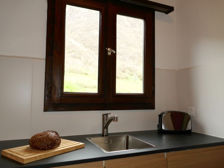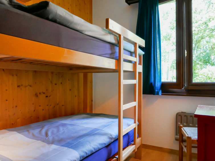 "Chalet Al Portic", 4-room house 60 m2. Rustic and cosy furnishings: living/dining room with open-hearth fireplace, dining nook and satellite TV. Exit to the garden. 1 double bedroom with 1 double bed (1 x 160 cm, length 200 cm). 2 rooms, each room with 1 x 2 bunk beds (90 cm, length 190 cm). Kitchen (oven, dishwasher, 4 induction hot plates, toaster, kettle, electric coffee machine, fondue Set (cheese)). Shower/WC. Electric heating. Large garden. Terrace furniture, barbecue, deck chairs (6), sitting area. Beautiful view of the mountains and the garden. Facilities: children's high chair, baby cot for up to 2 year olds (extra), hair dryer. Internet (WiFi, free). Please note: non-smoking house. Maximum 2 pets/ dogs allowed. 4439