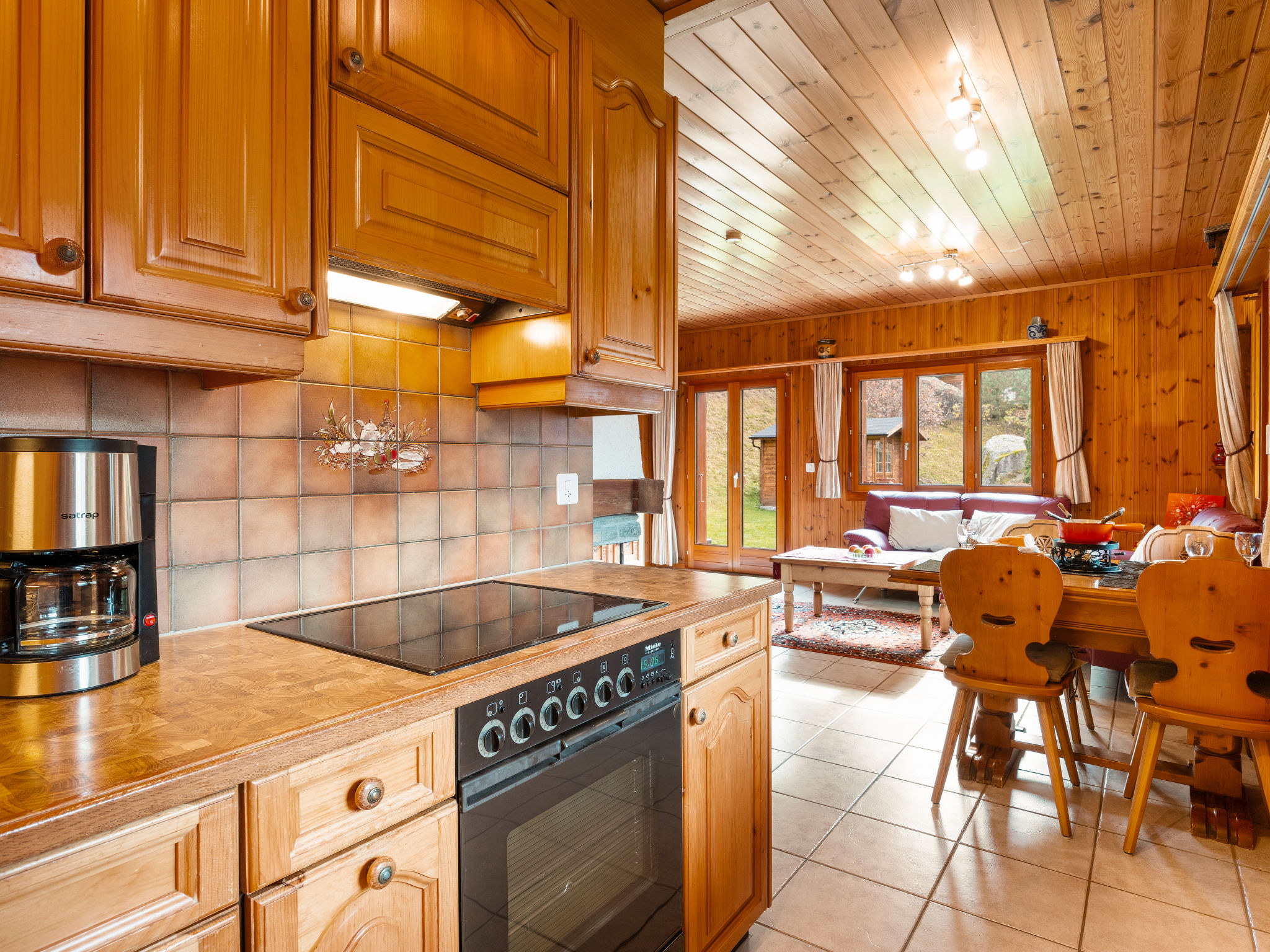 3-room chalet 72 m2. Rustic and cosy furnishings: living/dining room with open-hearth fireplace and satellite TV (flat screen), radio. Exit to the patio. 2 rooms, each room with 2 beds. Open kitchen (oven, dishwasher, 4 ceramic glass hob hotplates) with dining table. Shower/WC. Electric heating, wood heating, boiler (130 litres). Large patio 150 m2. Terrace furniture, barbecue. Very beautiful view of the mountains, the valley and the countryside. Facilities: washing machine, hair dryer. Internet (WiFi, free). Garage at 200 m. Please note: non-smokers only. 'No Pets allowed.