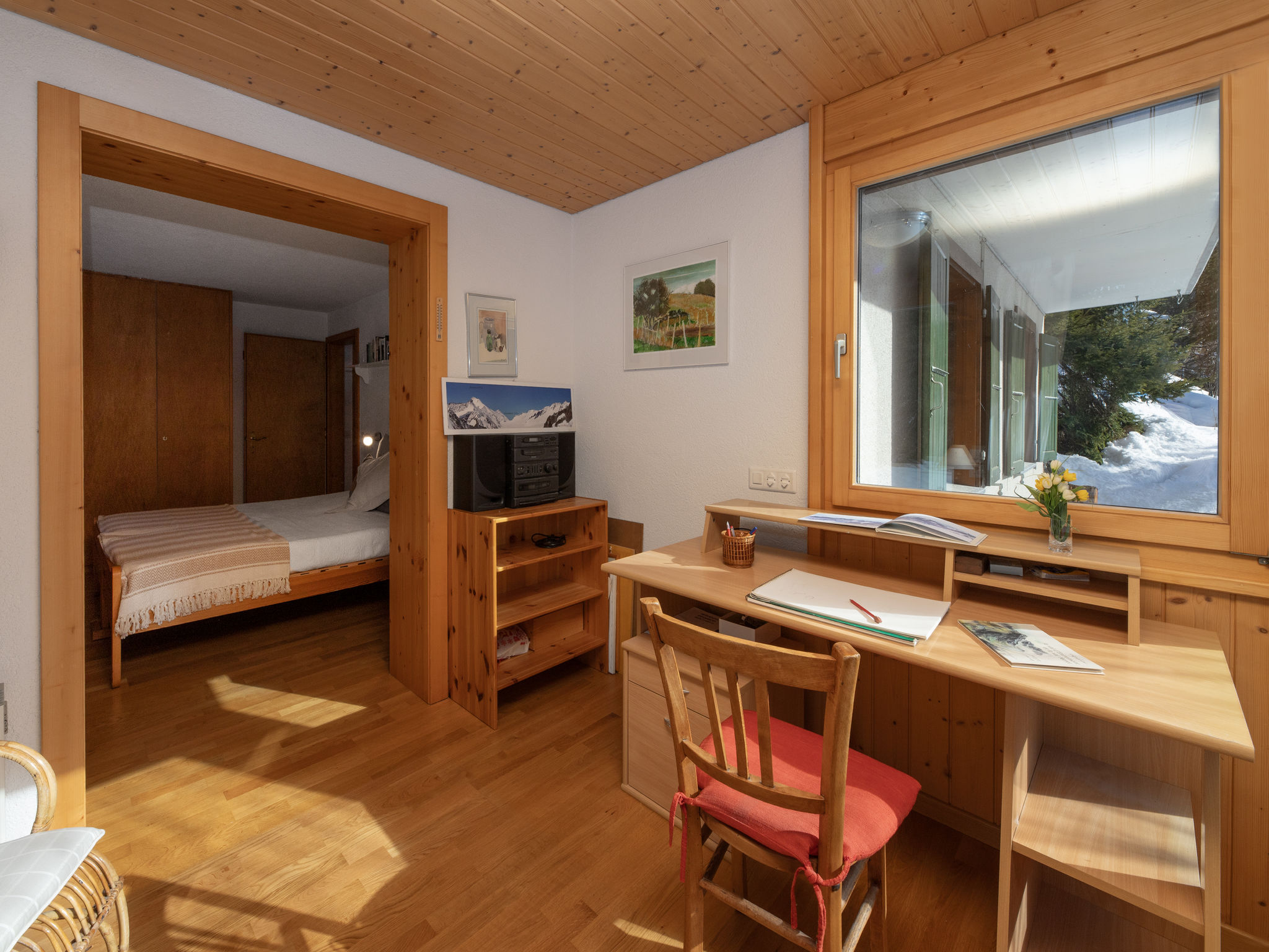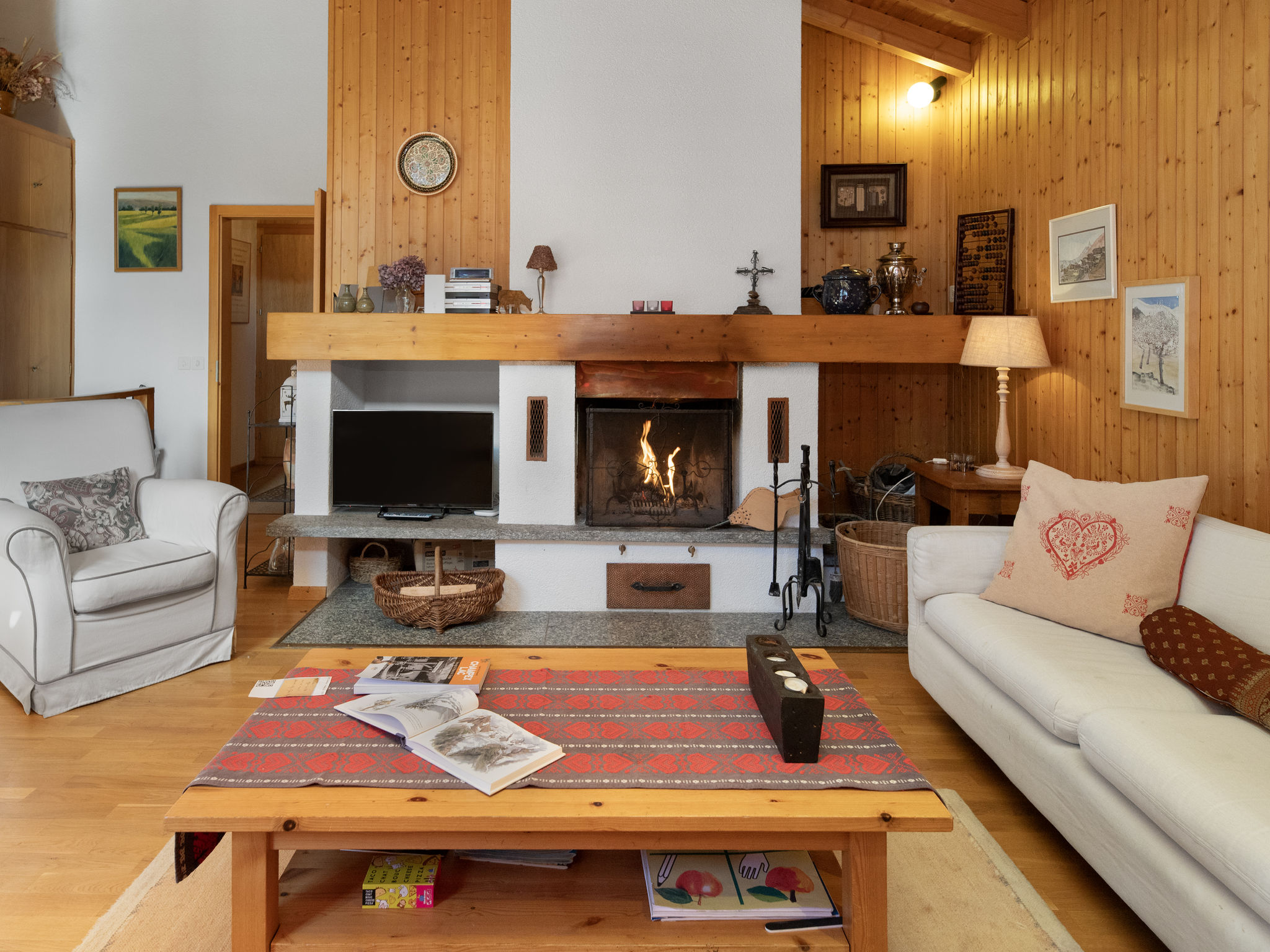 "Veni, Vidi, Mansi", 5-room chalet 126 m2 on 2 levels, south facing position. Object suitable for 6 adults + 2 children. Spacious, comfortable and tasteful furnishings: living/dining room with open-hearth fireplace and cable TV. Exit to the terrace. Kitchen (oven, dishwasher, 4 ceramic glass hob hotplates, toaster, microwave, electric coffee machine, Capsules for coffee machine (Nespresso), fondue Set (cheese)). Sep. WC. On the lower ground floor: 2 rooms, each room with 2 beds (90 cm, length 200 cm). 1 room with 1 double bed (160 cm, length 200 cm). 1 room with 2 x 2 bunk beds, hand-basin and shower. Bath/WC, double hand-basin. Large balcony. Balcony furniture, barbecue, deck chairs. Very beautiful view of the mountains and the countryside. Facilities: washing machine. Internet (WiFi, free). Parking (2 cars), garage (1 car). Please note: non-smokers only. Maximum 1 pet/ dog allowed.