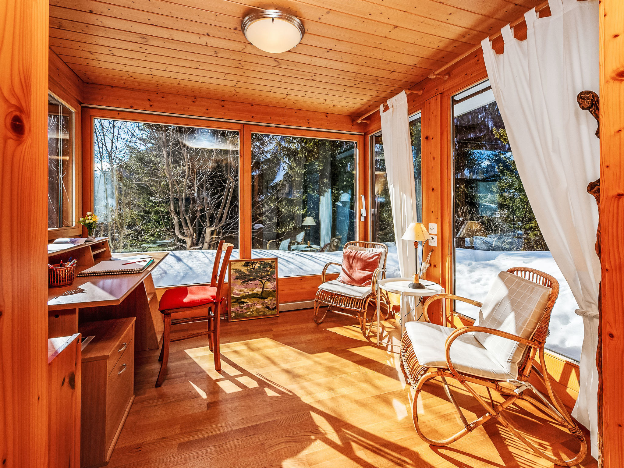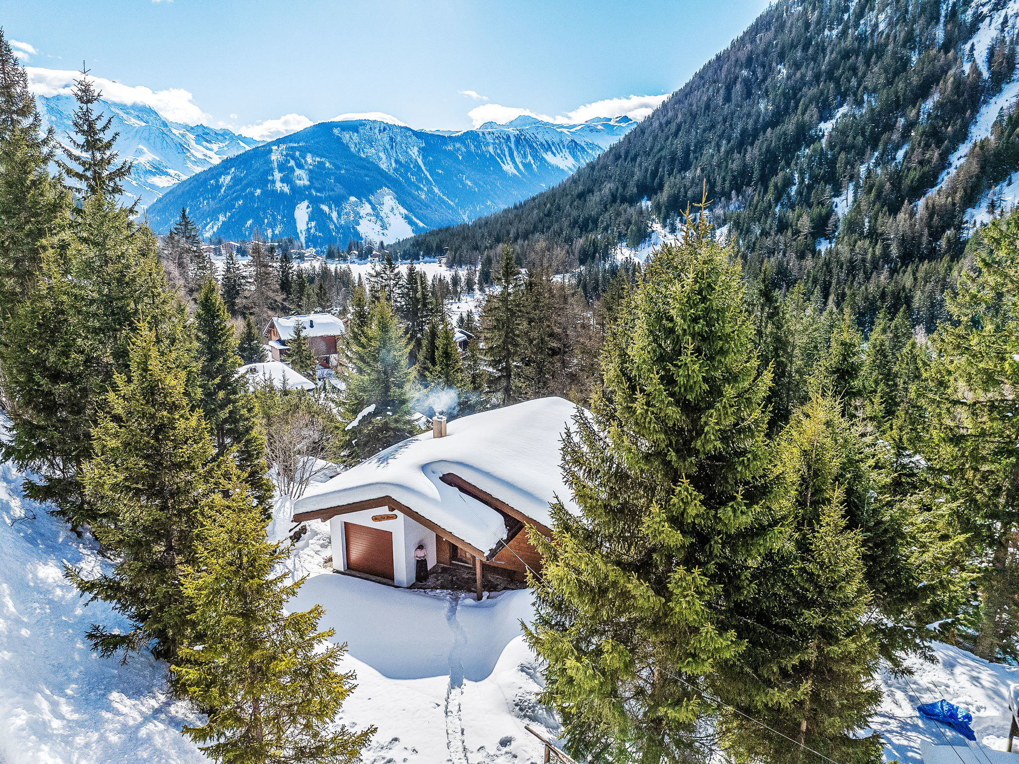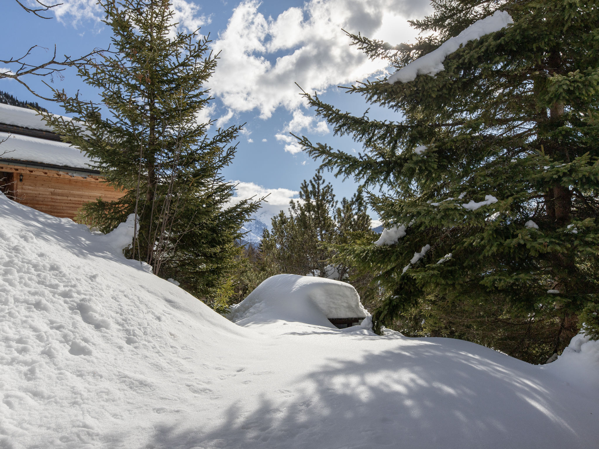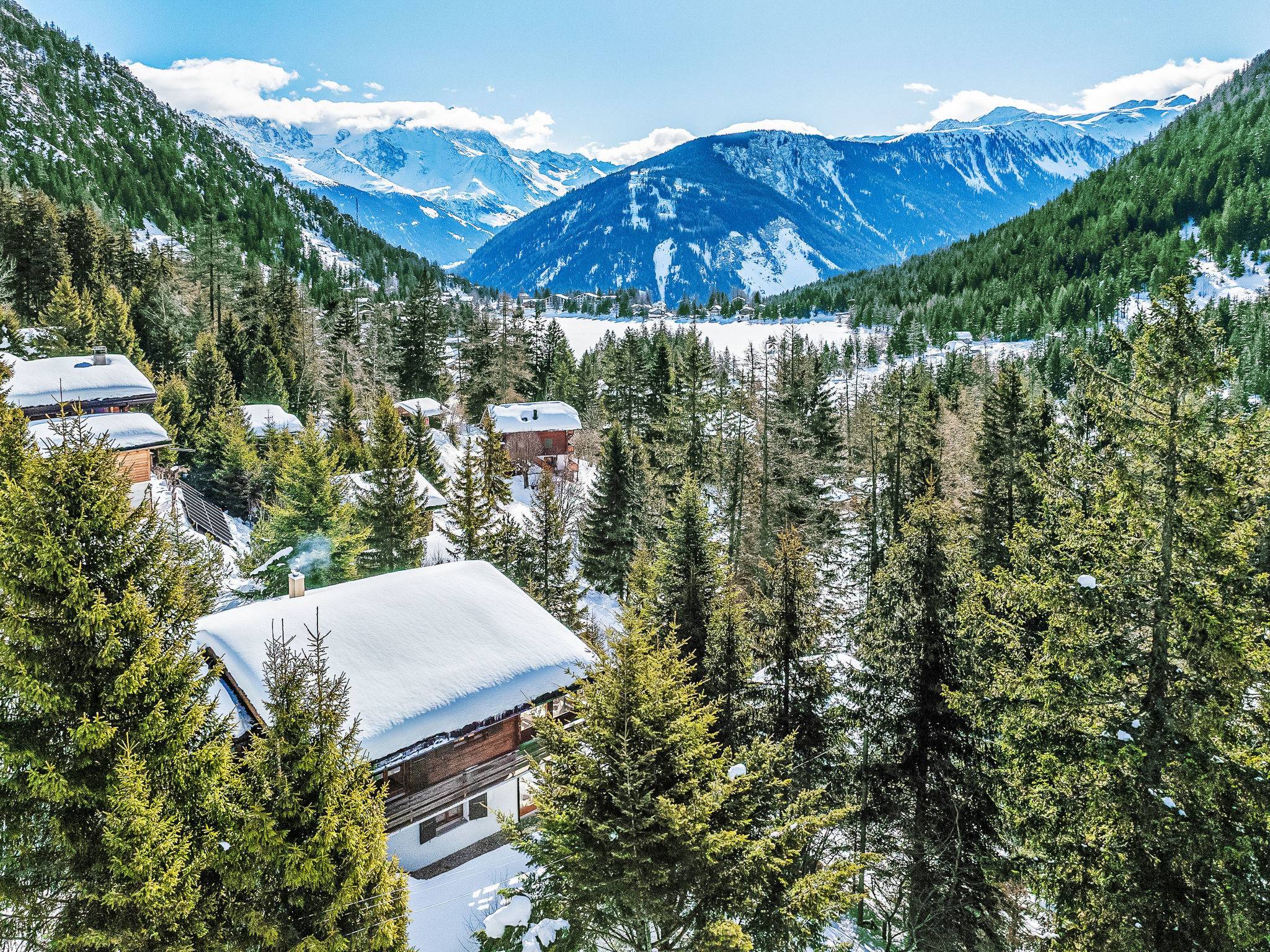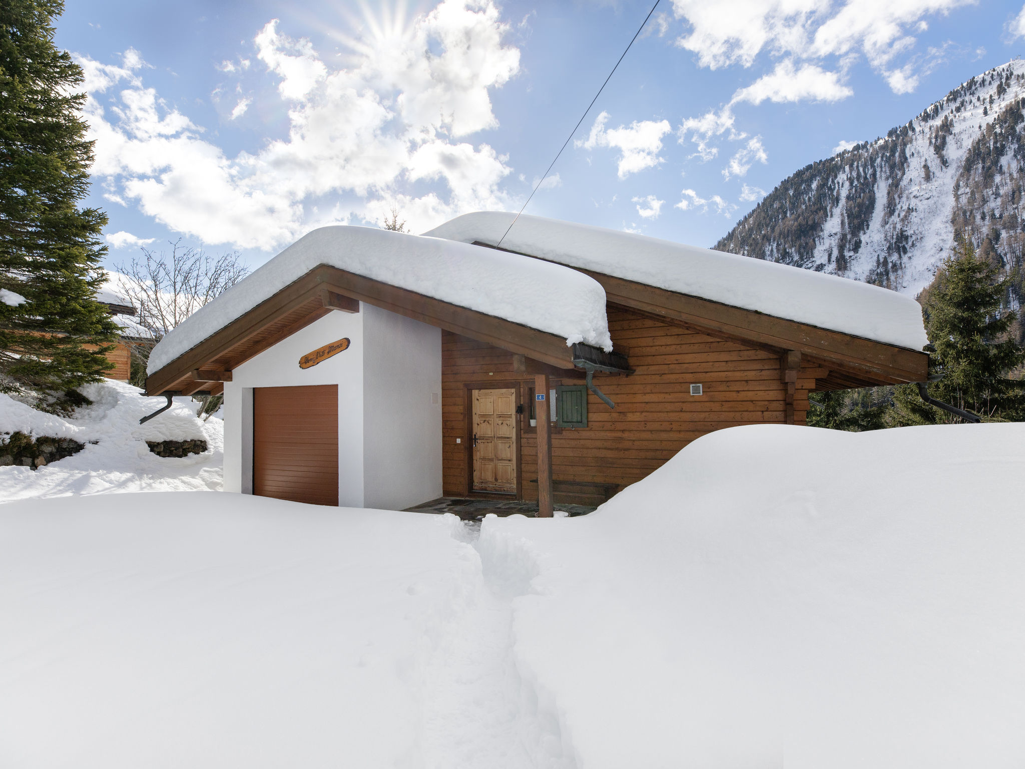 Chalet "Veni, Vidi, Mansi", 2 storeys. Above Champex-Lac, in a quiet, sunny, elevated position, 1 km from the lake, 1.2 km from the skiing area. 4x4 car recommended in winter. Grocery 1.1 km, restaurant 1 km, bakery 800 m, bus stop "Jardin Alpin" 750 m, lake Champex-Lac 1 km. Chair lift 1.2 km, ski rental 1.2 km.