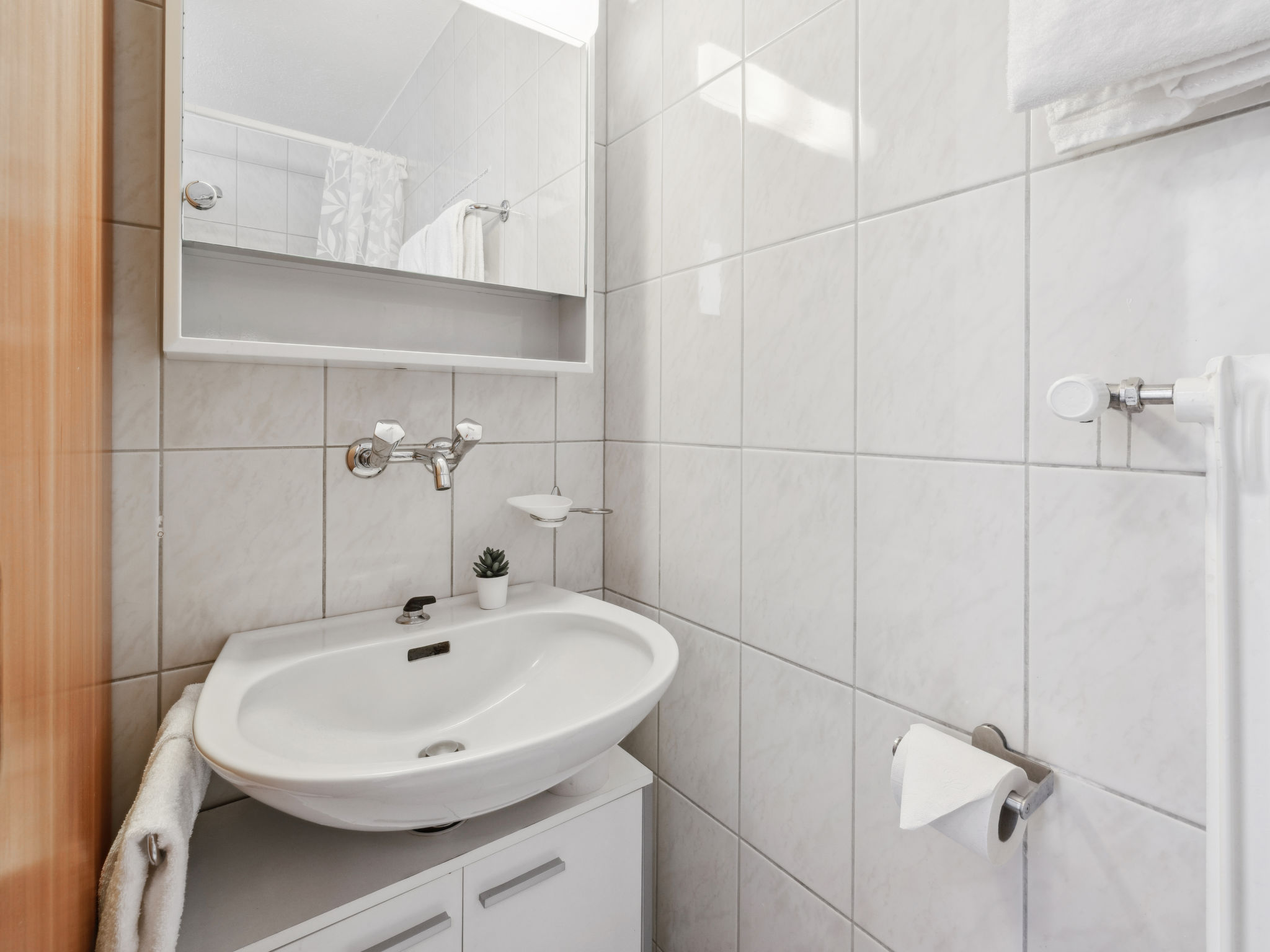 Apartment block "Promenade (Utoring)". In the resort, 500 m from the centre, in a quiet position. In the house: lounge, table tennis, kiosk, lift, storage room for skis, central heating system, washing machine (for shared use). Motor access to the house (mountain road). In Winter: please take snow chains, 4x4 car recommended in winter. Parking (limited number of spaces, extra) at the house, communal covered parking (extra), public car park at 800 m. Shop 500 m, bus stop "Arosa, Rathaus" 400 m, railway station "Arosa" 1 km. Skisport facilities, slopes, sled run 500 m. Home delivery service possible. Beautiful hiking trails right in front of the house. Attention: limited number of parking spaces! Parking space or garage space must be reserved in advance with the key holder: parking space CHF 5.00/day, covered parking space CHF 8.00/day, garage space CHF 16.00/day, payable on site. Lounge with internet connection (WiFi). Ski passes are available at reception.