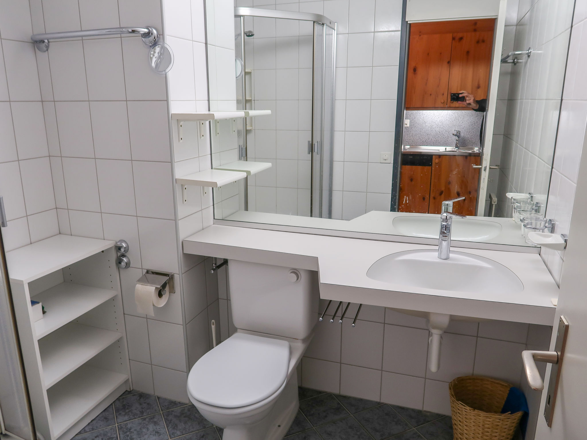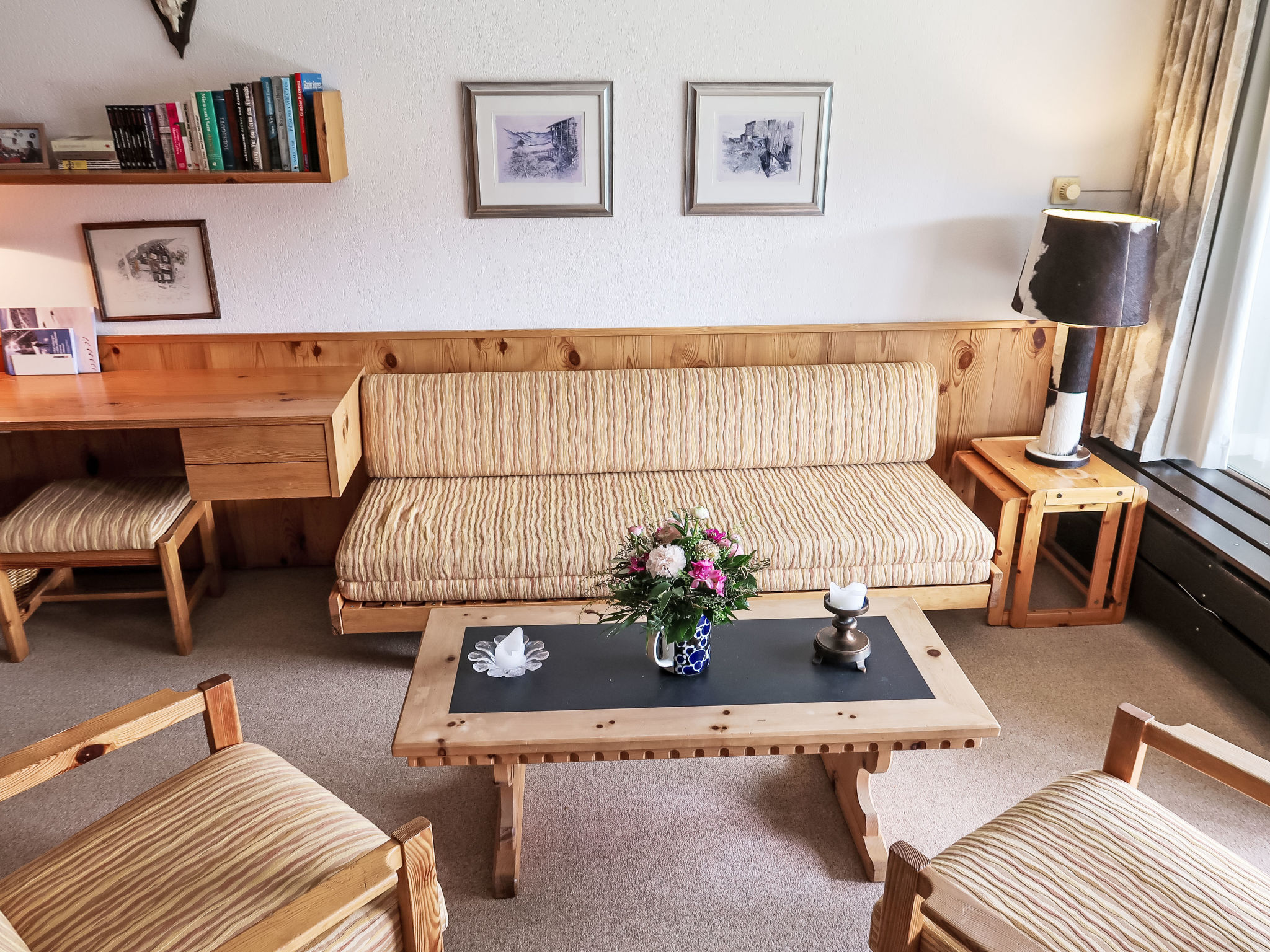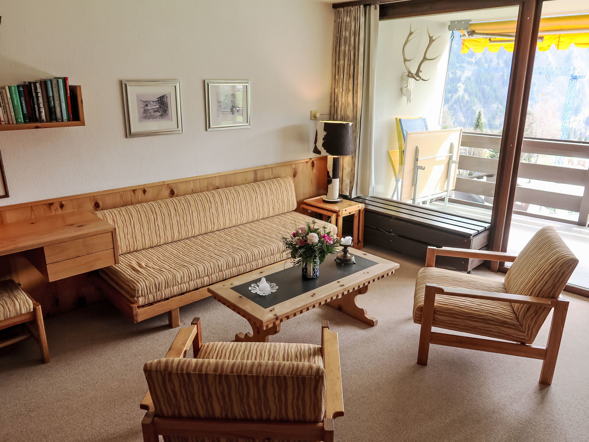 Apartment block "Utoring Acletta", 1'250 m a.s.l.. Above Disentis, in the resort, 2 km from the centre, in a quiet, sunny position on a slope, 700 m from the skiing area. For shared use: indoor pool (24 m2, depth 170 cm). Children's playground. In the house: reception, lounge, table tennis, lift, storage room for skis, central heating system, washing machine, tumble dryer (for shared use, extra). (extra). Motor access to the house (mountain road). Communal covered parking. Dimension: height 195 cm. E-charging station. Shop, supermarket, restaurant 700 m, bus stop "Disentis/Mustér, Pendicularas" 500 m, railway station "Disentis" 2 km. Cable car, ski lift, skisport facilities, slopes 700 m, ski bus stop 50 m, ski school 500 m, cross country ski track 1.5 km, children's playground 1 km. Well-known ski regions can easily be reached: Ski Arena Andermatt/Sedrun/Disentis. Please note: Additional accommodations can be booked. All houses/apartments are individually designed/furnished. Children's ski school near the house. The house and cable car can be reached on skis when there is enough snow. 1 garage space free of charge (max. height 1.95 m), additional garage space CHF 20.00/week. Reception opening times: Monday/Wednesday/Friday: 6:00 p.m.-6:30 p.m., Saturday 8:30 a.m.-9:30 a.m. and 4:00 p.m.-5:30 p.m., Tuesday/Thursday/Sunday closed.