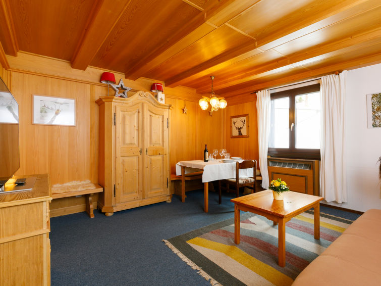 "Residenza Chesa Margun 23-1", 2-room apartment 50 m2, on the ground floor, north facing position. Practical furnishings: living/dining room with 1 double sofabed, TV and radio. 1 room with 2 beds. Kitchen (oven, dishwasher). Bath/WC. Garage. Please note: apartment courtyard side. Non-smokers only. Maximum 1 pet/ dog allowed.