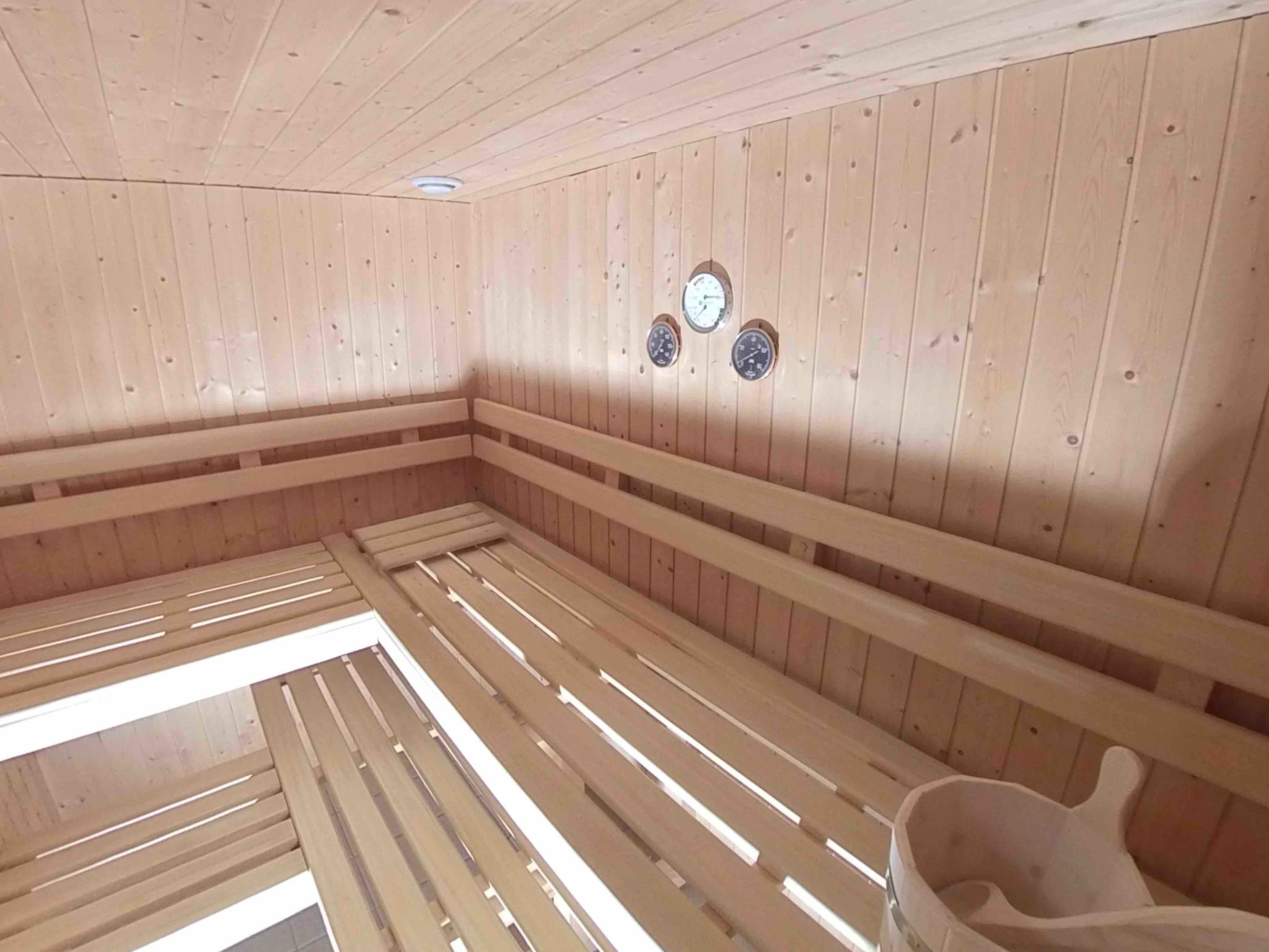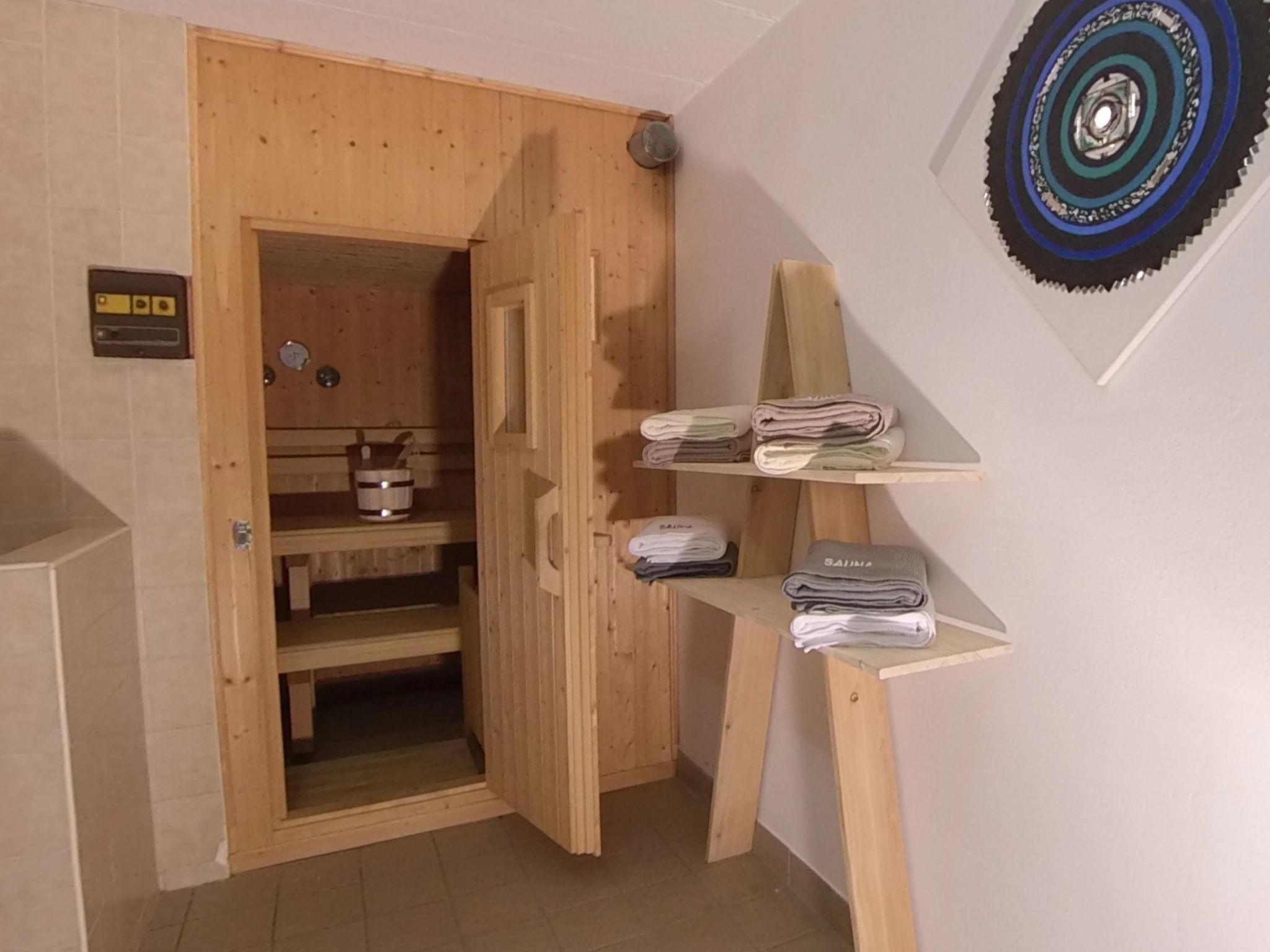 On the first floor there is 1 double bedroom with bed 180x200cm and 1 bathroom with shower/WC. If the booking is for more than 8 guests there is another small bedroom with a double bed 160x200. FACILITIES: Internet (WiFi, free), sauna (all included, sauna towels and aroma drops available), safe, central heating system.