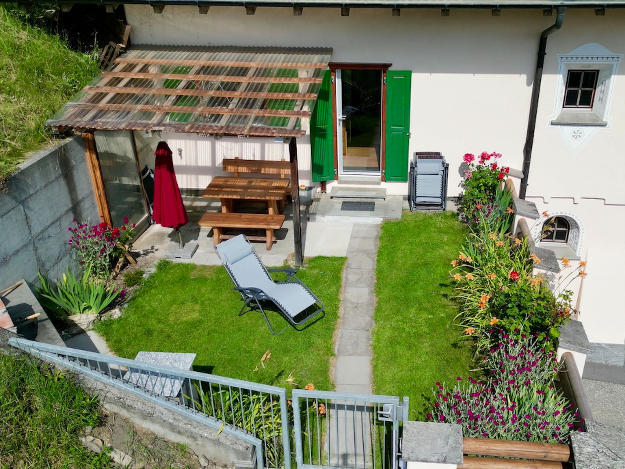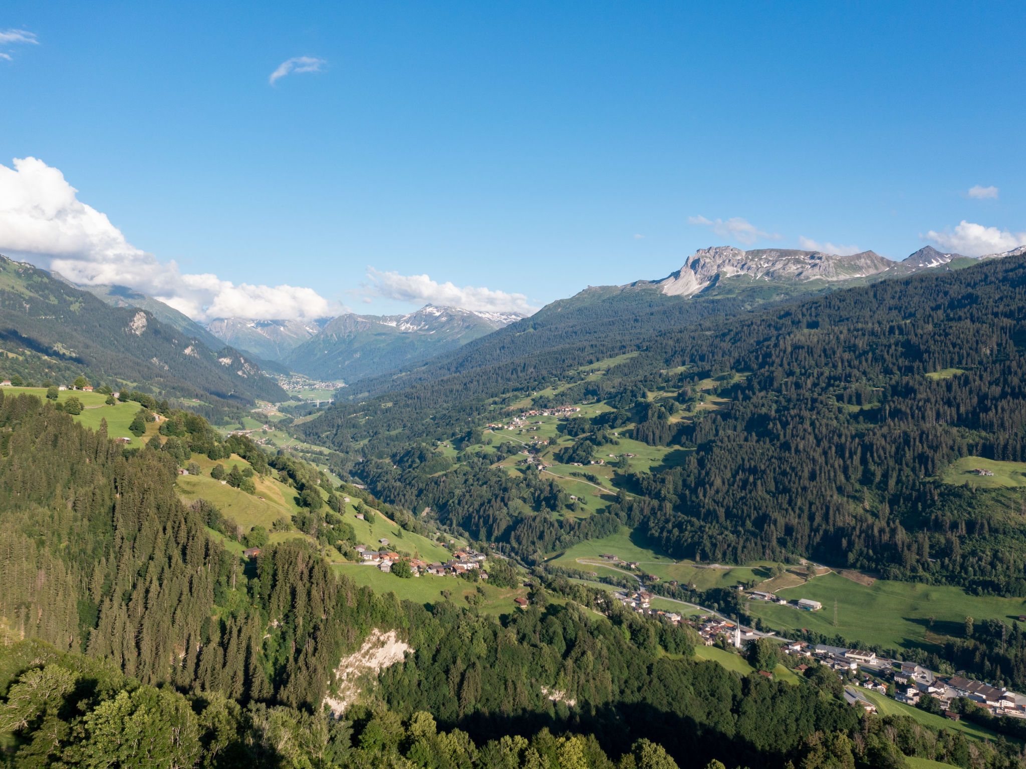 More information by the provider: The spacious holiday house with 6.5 rooms is located in a quiet and sunny spot at the edge of Pany village and has a spectacular panoramic view into the mountains. Renovated in 2021, it is comfortably furnished and has 5 sleeping rooms, a generous living room with fireplace, a dining area, a kitchen with modern equipment and a sauna exclusively for the guests of the house.