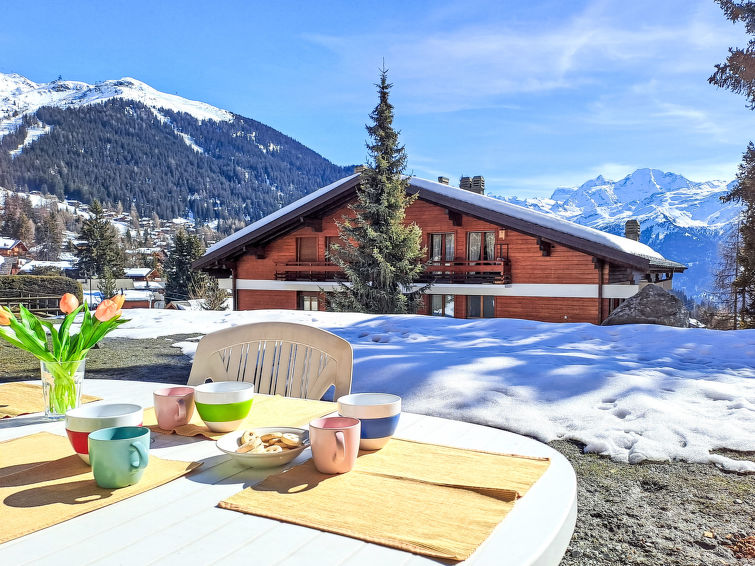 Verbier: Apartment block "Les Rousserolles". In the district of Brunet, in the resort 700 m from the centre of la station, in a quiet, sunny position, located by a road, south facing position. In the house: storage room for skis, central heating system. Motor access to the house. Public parking 800 m. Shop, grocery 200 m, supermarket 1 km, restaurant 700 m, bar 700 m, bakery 700 m, café, bus stop "Brunet" 200 m, indoor swimming pool 800 m. Golf course (18 hole) 2.5 km, tennis 800 m, riding stable 800 m, sports centre, ski lift 300 m, chair lift 2.5 km, gondola lift 600 m, skisport facilities 1.1 km, ski bus stop 200 m, ski school 1.1 km, ski-kindergarten 700 m, ice rink 800 m, children's playground 900 m. Free ski bus service to the ski region Savoleyres 600m, Médran 1.1km and Carrefour 2.5km. Please note: nightclub/disco 900 m from the property. Additional accommodations can be booked.