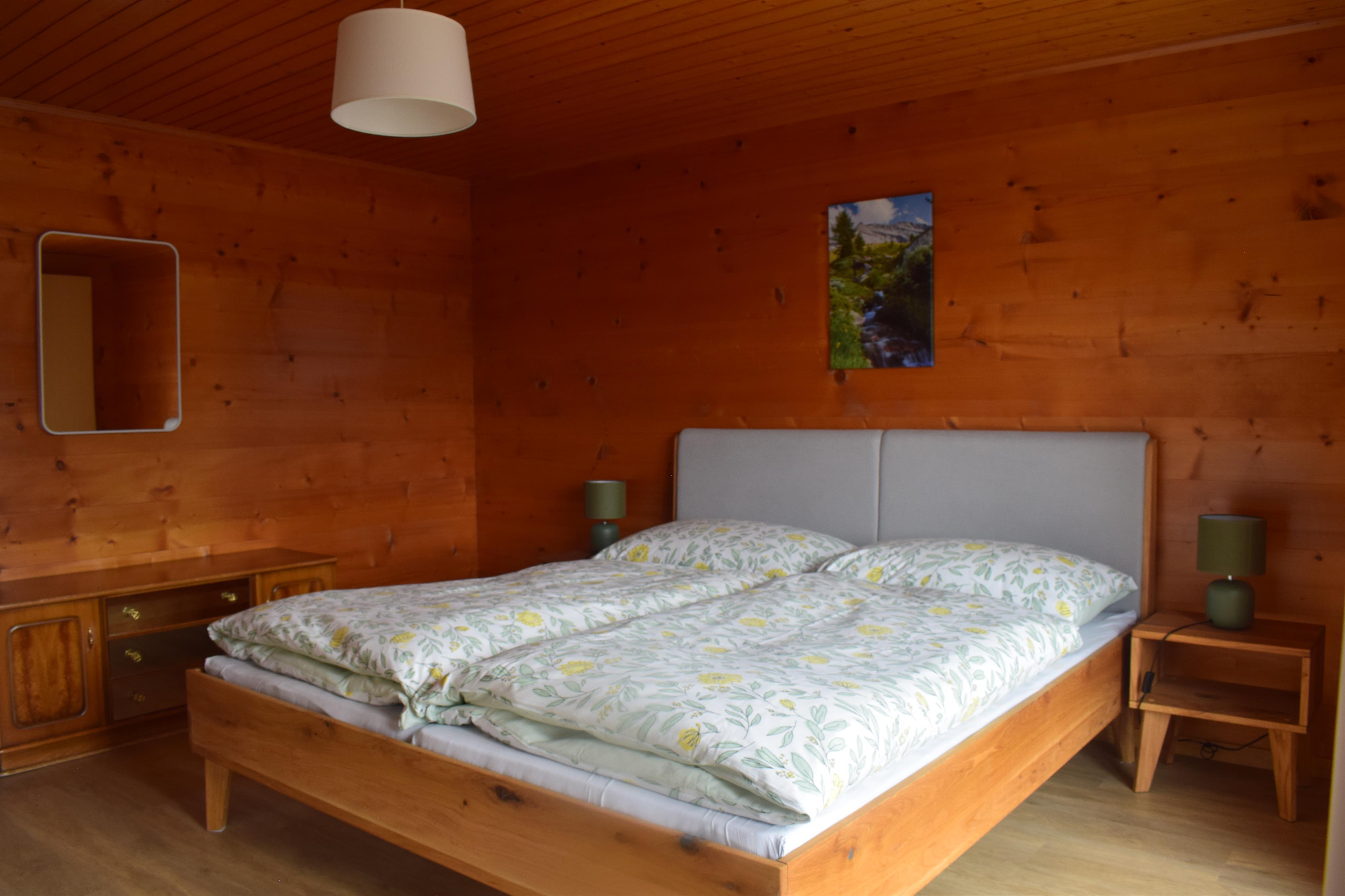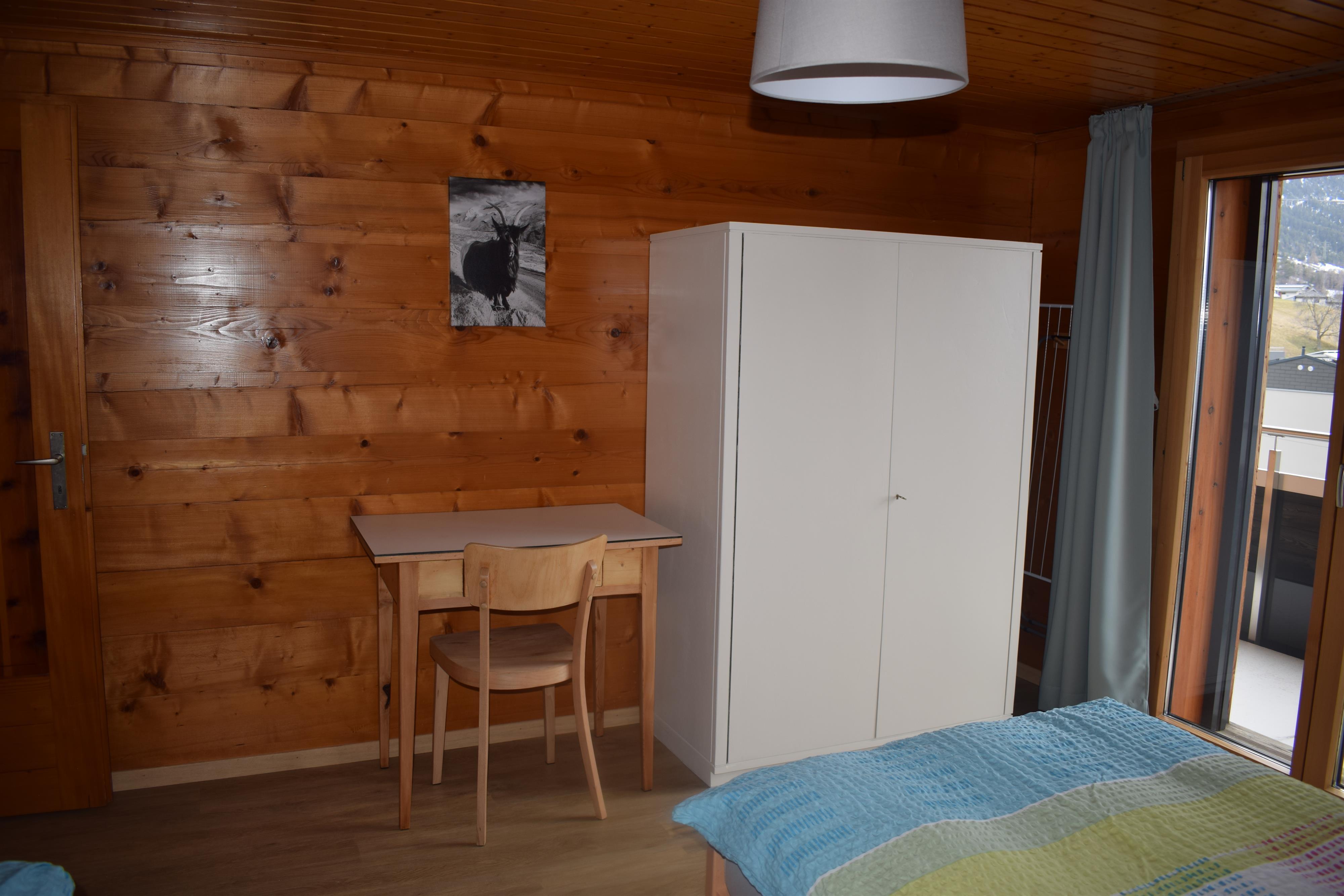 This is situated east of the village of Termen. From here, you have a beautiful view of the Rhône Valley, the Valais and Bernese Alps. It is furnished in a rustic-modern style and has a controllable radiator heating system (heat pump). The holiday apartment features plastic flooring, laminate flooring, and vinyl flooring. Bed and kitchen linens are provided. You can drop off dirty bed linens for washing every two weeks. The chalet is accessible by car. The post bus stop is about 5 - 10 minutes away. The parking lot and green space in front of the house are available for your use.