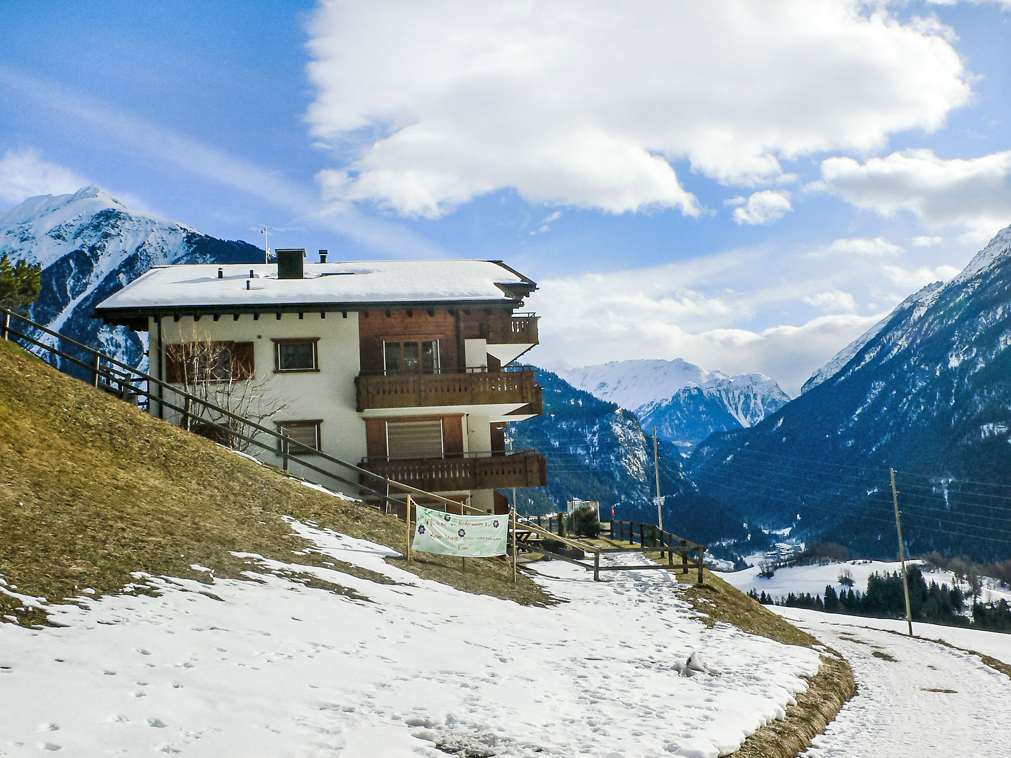 Schmitten 18 km from Davos: Beautiful apartment block "Eva". On the outskirts, in a quiet, sunny position. In the house: central heating system, washing machine (for shared use). Communal covered parking space n 14. Shop 400 m, restaurant 4 km, bus stop 400 m, thermal baths 5 km. Golf course 5 km, slopes 18 km, cross country ski track 300 m.