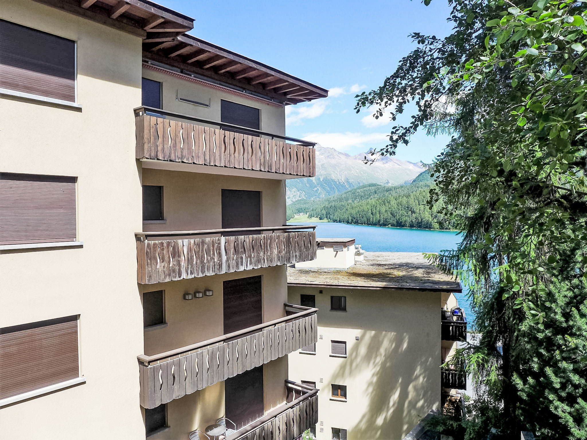 St. Moritz-Bad: Simple apartment house "Chesa Sonnalpine B", 8 storeys, built in 1968. In the resort 800 m from the centre of St.Moritz-Bad, 600 m from the centre of St.Moritz-Dorf, in a central, busy, sunny position, 50 m from the lake, 1 km from the skiing area. In the house: lift, storage room for skis, central heating system. Public car park at 600 m, public parking 50 m. Shop 260 m, supermarket, restaurant 200 m, bakery 500 m, café 700 m, bicycle rental 800 m, bus stop "St. Moritz Bad, Via Aruons" 180 m, railway station 1.5 km, indoor swimming pool 1 km, thermal baths "Heilbadzentrum St. Moritz" 1.2 km, lake St. Moritzer See 50 m. Golf course (18 hole) 7.7 km, tennis 1.5 km, indoor tennis centre 1.5 km, minigolf 1 km, riding stable 2.8 km, walking paths from the house 100 m, cycle lane 1 km, cable car 1.4 km, ski lift 1 km, slopes 1.4 km, ski rental 1 km, ski bus stop 180 m, ski school 1 km, children's ski school 1 km, sled run 5.7 km, cross country ski track 1 km, ice rink 500 m, children's playground 1.3 km. Nearby attractions: Segantini Museum 1.2 km, Engadiner Museum 120 m, Mili Weber-Haus 2 km, Olympia Bob Run mit Museum 1.7 km, Nietzsche Museum in Sils-Maria 10 km. Well-known ski regions can easily be reached: Corviglia Piz Nair 1 km, Corvatsch - Furtschellas 7 km, Diavolezza - Lagalb 19 km. Well-known lakes can easily be reached: St. Moritzer See 50 m, Silvaplaner See 5.7 km, Silser See 10 km. Hiking paths: Stazerwald & Stazersee, Corviglia Piz Nair, Muottas Muragl. Please note: Loading and unloading of baggage is possible at the holiday house. The keys‘ handover takes place by the agency Interhome in St. Moritz Bad. Additional accommodations can be booked.
