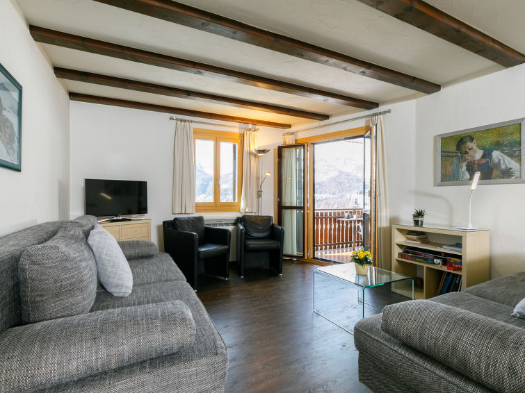 Cosy apartment block "Residenza Chesa Margun", 1'815 m a.s.l., surrounded by trees and meadows. 7 houses in the residence. In the district of Surlej, in a quiet, sunny, elevated position on a slope, 5 m from the edge of the forest, 1 km from the lake, 200 m from the skiing area, in a cul-de-sac, south facing position. For shared use: lawn for sunbathing. Children's playground (slide, swing). In the complex: reception, restaurant, bar, WiFi, lift, storage room for bicycles, storage room for skis, central heating system, washing machine (extra), tumble dryer (for shared use, extra). Bread roll service. Motor access to the house. 4x4 car recommended in winter. Communal covered parking. Dimension: height 203 cm. E-charging station. Shop 2 km, bakery 250 m, bicycle rental 100 m, bus stop "Surlej Foppas" 210 m, thermal baths "Samedan" 14 km. Golf course (8 hole) 7 km, surf school 3 km, tennis 3 km, sports centre 3 km, walking paths from the house 100 m, cable car 500 m, ski lift, chair lift 200 m, ski rental 100 m, ski bus stop 20 m, ski school, children's ski school, cross country ski track 200 m, ice rink 3 km. Well-known ski regions can easily be reached: Corvatsch 500 m. Well-known lakes can easily be reached: Silvaplanasee 1 km. Hiking paths: Panoramaweg 1 km, Via Engiadina 1 km. Please note: fishing [permit required]. Ski bus (free of charge). Free ski bus service to the ski region Silvaplana-Surlej-Corvatsch Bahn. Please note: Additional accommodations can be booked. Property ref. CH7513.600 is situated on the same property. All houses/apartments are individually designed/furnished. The residence is approx. 500 m below the Corvatschbahn. The south apartments have a view of the mountains, the north apartments have a view of the forest. Children's corner with various games for small and large children. Skiing on the Corvatsch-Snownight (illuminated slope). Extra ski pass required. The house has a charging station for electric cars.