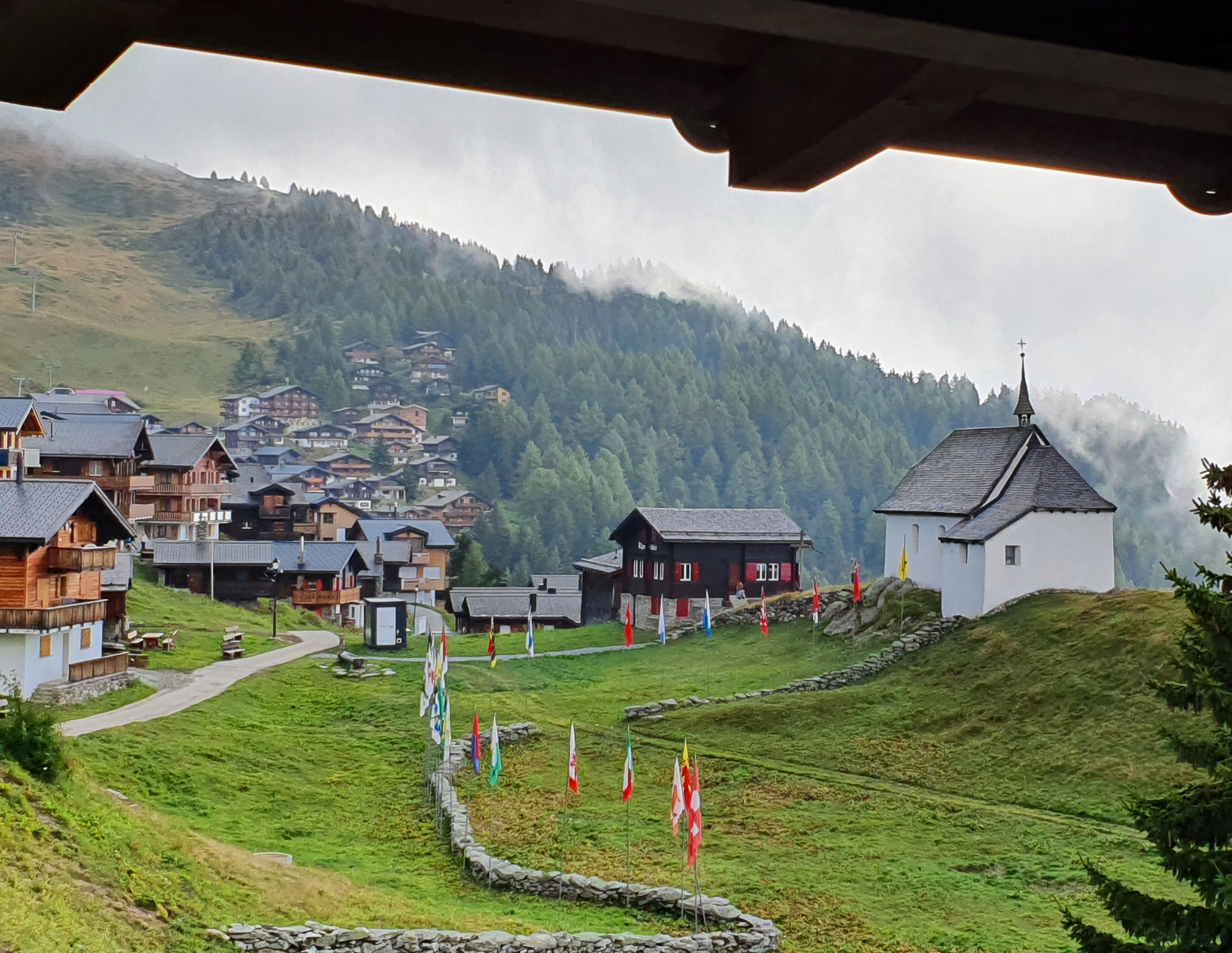 Cosy, renovated chalet for an unforgettable stay at the pedestrian village of Bettmeralp with wonderful views to the mountains of Valais and the “Marie zum Schnee” Chapel, the Bettmeralp landmark. Balcony on the east and south side as well as a sunbathing area with seating and deck chairs on the north side.