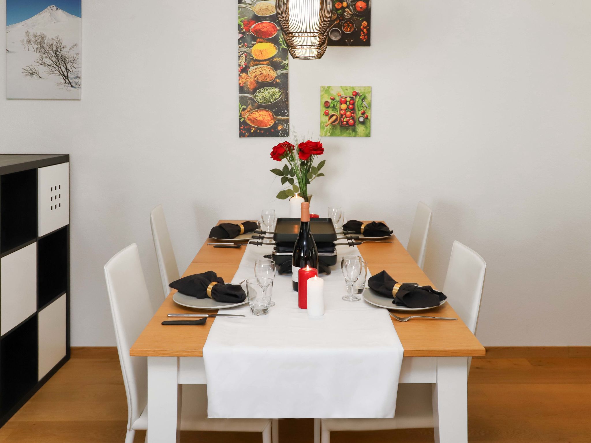 3-room apartment 82 m2 on 3rd floor, south-west facing position. Bright, comfortable and cosy furnishings: living/dining room with dining nook, TV, hi-fi system and DVD. Exit to the balcony, south facing position and west facing position. 1 double bedroom with 2 beds (90 cm, length 200 cm). 1 double bedroom with 1 double bed (140 cm, length 200 cm). Open kitchen (oven, dishwasher, 4 ceramic glass hob hotplates, toaster, kettle, freezer, electric coffee machine, raclette grill, combination microwave, fondue Set (chinoise, cheese)). Bath/WC. Balcony, south facing position and west facing position. Balcony furniture. Very beautiful view of the Matterhorn. Facilities: hair dryer. Internet (WiFi, free). Please note: non-smokers only.