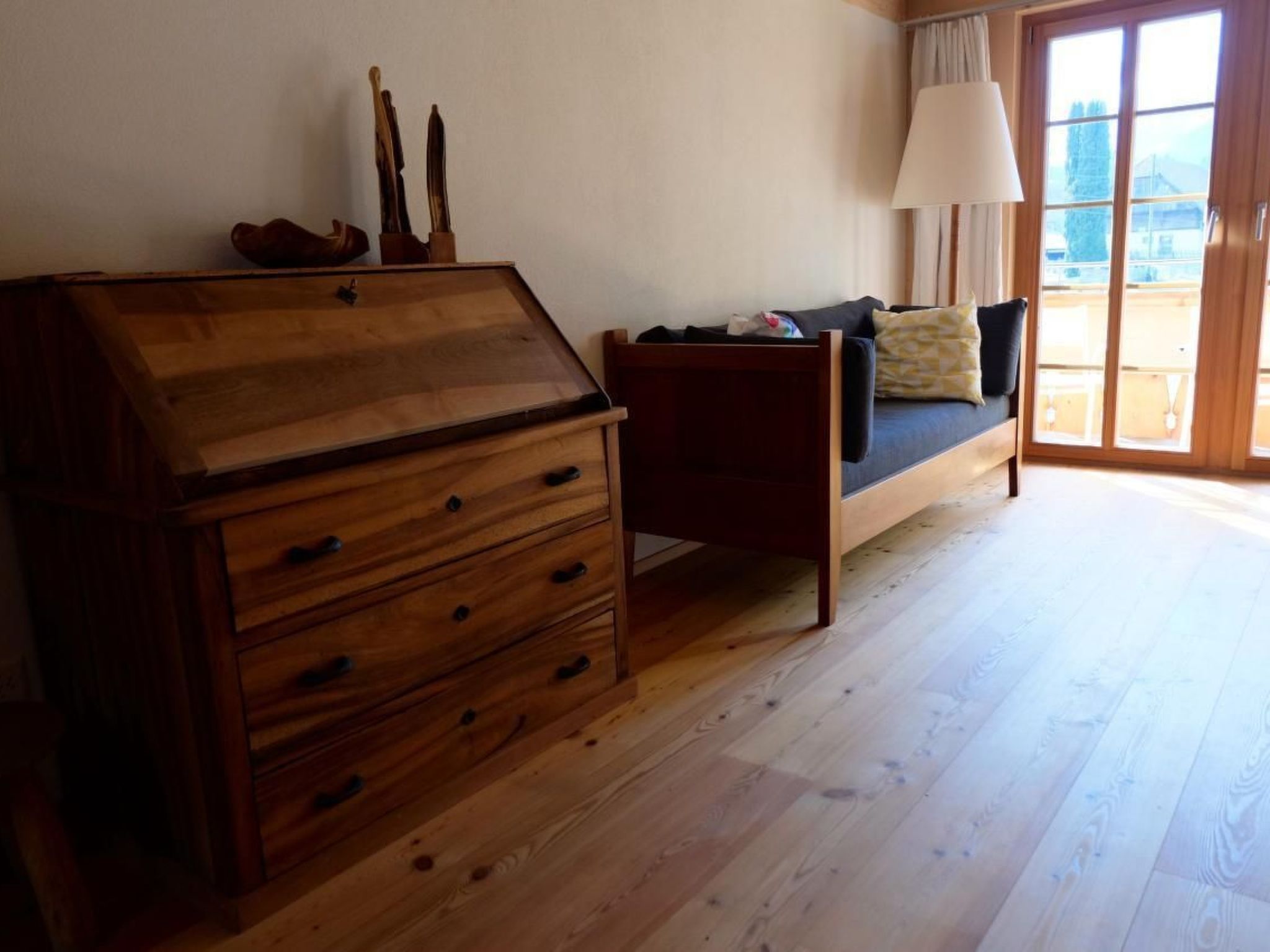 The sunny 4 1/2-room holiday flat for 2-5 people is located on the upper floor of our chalet with a wonderful view of the Diemtigtal valley, the Niesen mountain range and the village of Diemtigen. It was partially renovated in 2018 and offers every comfort and plenty of space with 3 bedrooms, a spacious living and dining area with Swedish stove, a modern kitchen with dishwasher, oven and fridge, a large bathroom with bathtub/shower, two balconies and a terrace, free WiFi and a washing machine in the flat. There is a free parking space for 1 car. The flat is also very easy to reach by public transport (post bus stop 100m) and is suitable as a starting point for various activities in the Diemtigtal Nature Park and the Bernese Oberland throughout the year as well as for relaxing.