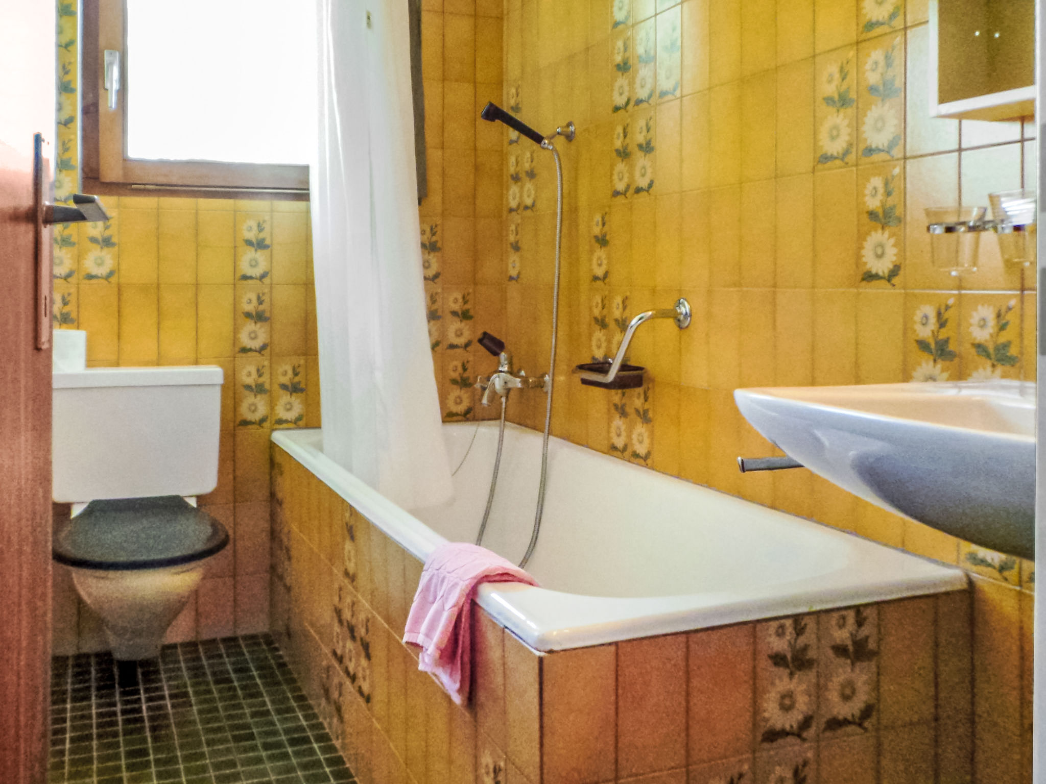 3-room apartment 70 m2 on 2nd floor. Simple and practical furnishings: living room with TV, radio and DVD. Exit to the balcony. 1 room with 1 double bed (2 x 90 cm, length 200 cm). 1 room with 1 bed (90 cm, length 200 cm), 1 x 2 bunk beds (90 cm, length 200 cm). Kitchen-/living room (4 hot plates, oven, toaster, kettle, freezer, electric coffee machine, fondue Set (chinoise)) with dining table. Bath/WC. Balcony. Balcony furniture. Beautiful view of the mountains and the resort. Facilities: hair dryer. Internet (WiFi, free). Please note: non-smokers only.