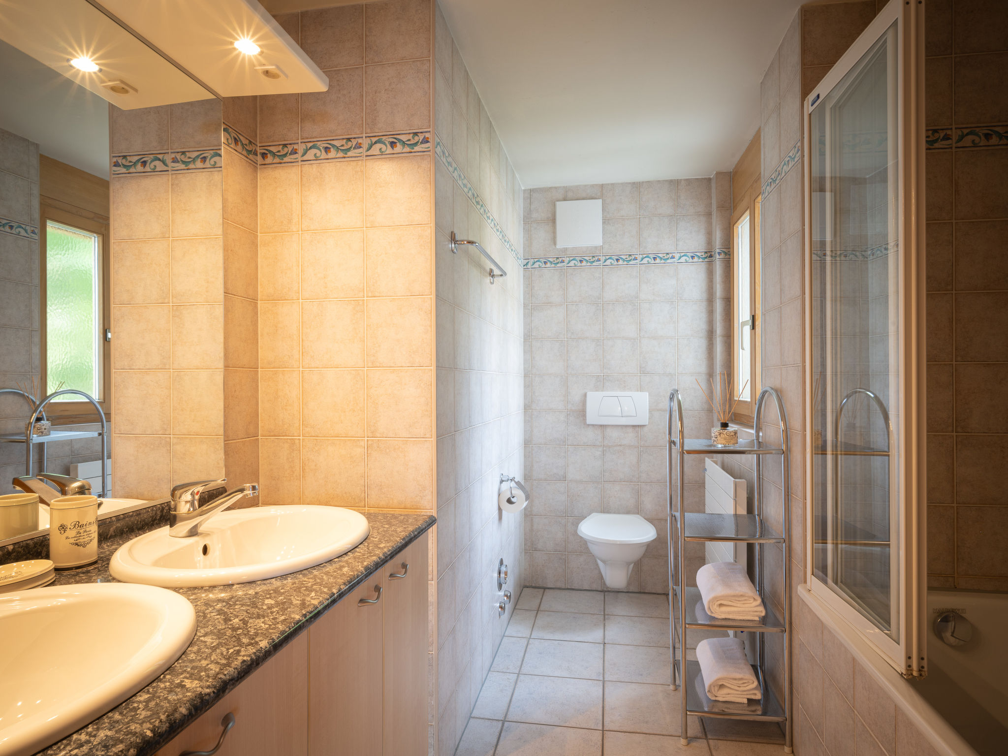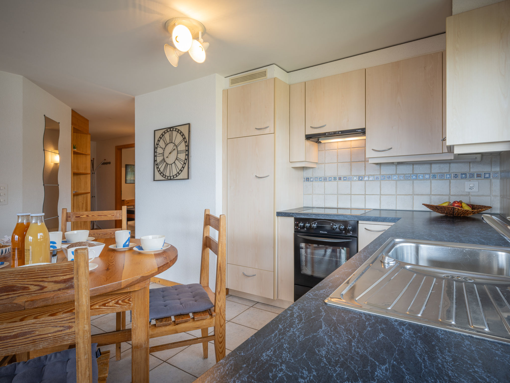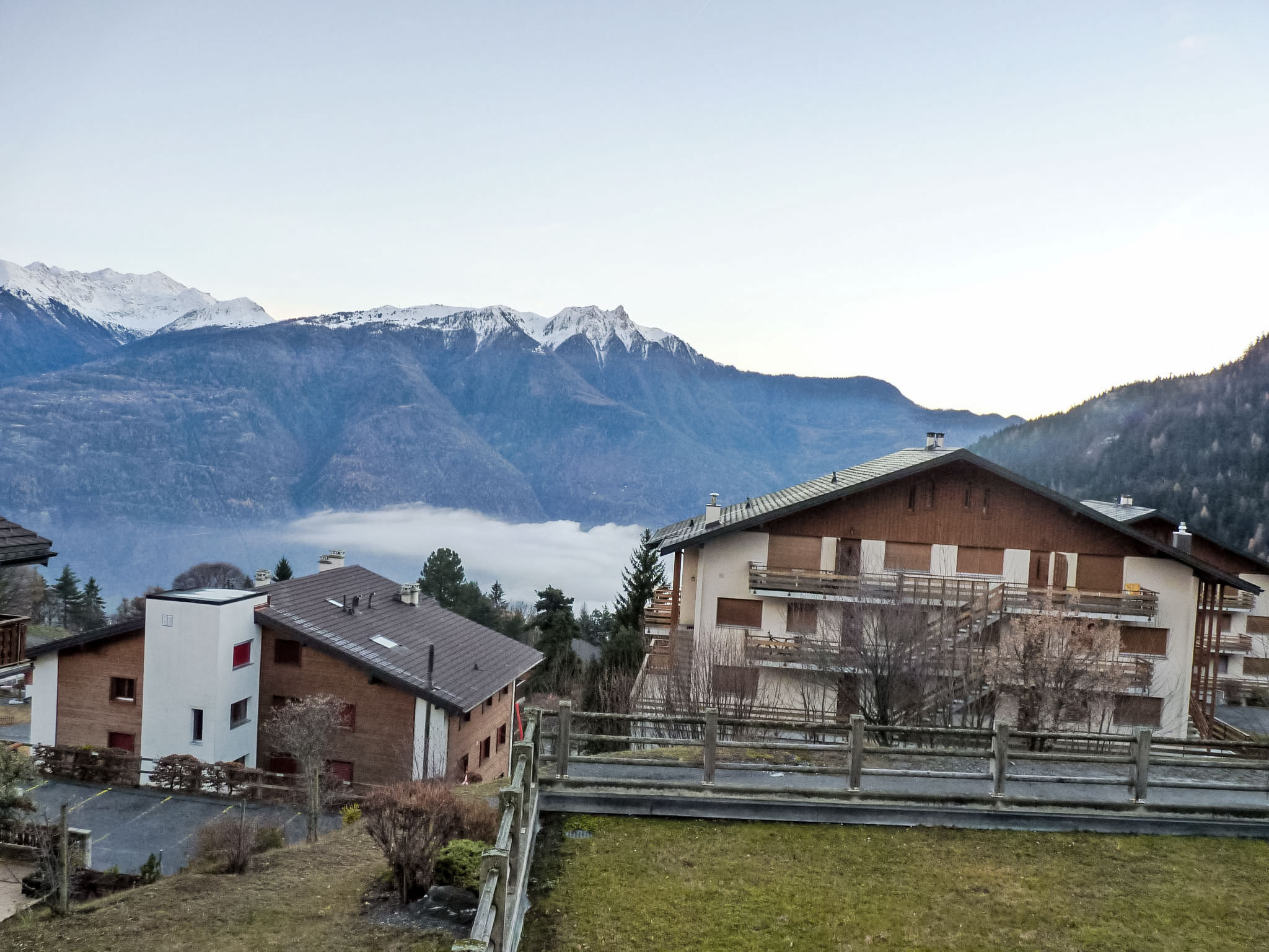 "Seya 19", 3-room apartment 85 m2 on 1st floor, south-east facing position. Very comfortable and tasteful furnishings: entrance hall. Living/dining room with 1 sofabed and cable TV (flat screen), video and DVD. Exit to the balcony, south facing position. 1 room with 2 beds (90 cm, length 190 cm). 1 room with 1 french bed (1 x 160 cm, length 200 cm). Open kitchen (oven, dishwasher, 4 ceramic glass hob hotplates, kettle, microwave, electric coffee machine, raclette grill, fondue Set (cheese)). Bath/WC, double hand-basin. Balcony 14 m2, south facing position. Balcony furniture, deck chairs (1). Very beautiful view of the mountains. Facilities: baby cot for up to 3 year olds, hair dryer. Internet (WiFi, free). Garage space n 19 (1 car), height 260 cm, width 250 cm. Please note: non-smokers only.