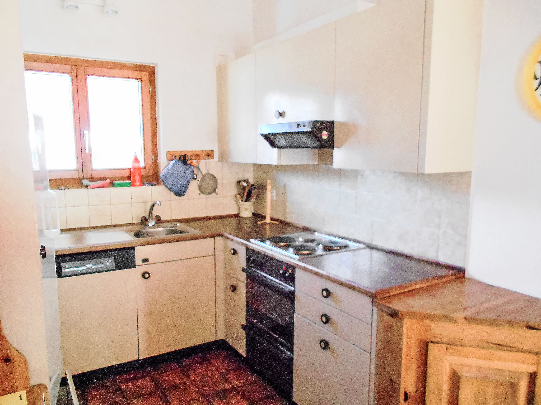"Haus Murena", 5-room house on 2 levels. Comfortable furnishings: living/dining room with TV. Exit to the balcony. 1 room with 1 bed. 1 room with 2 beds. Open kitchen (oven, dishwasher). Bath/WC. On the lower ground floor: 1 room with 1 double bed (2 x 90 cm). 1 room with 2 beds. Bath/WC. Boiler (150 litres). Very beautiful view of the mountains and the valley. Facilities: washing machine. Internet (WiFi, free). Parking. Maximum 1 pet/ dog allowed. Living/dining room with typical tiled oven.