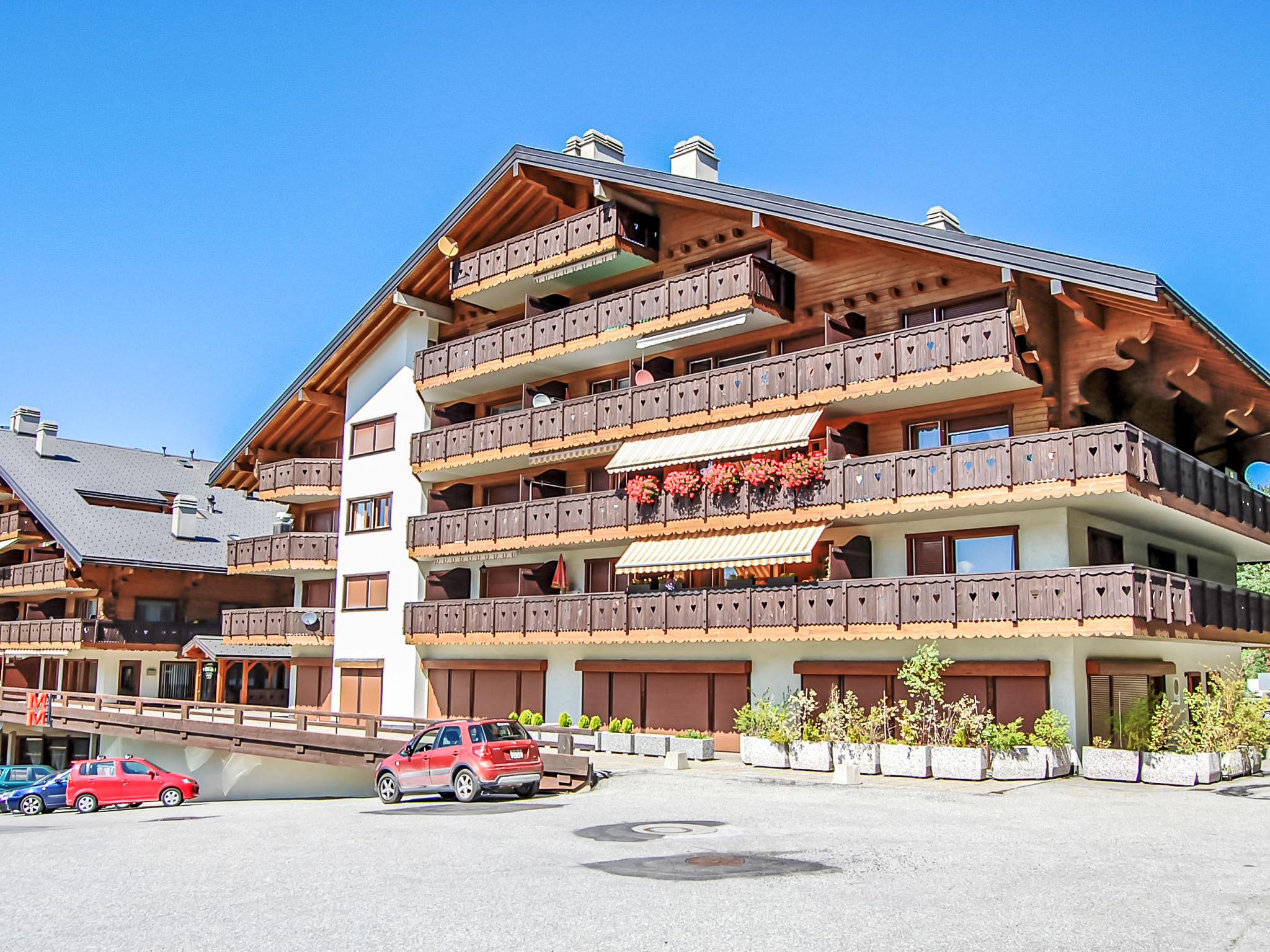 Residence "Lake-Placid", 4 storeys. In the centre, west facing position. In the house: kiosk, lift, storage room for skis, central heating system, washing machine, tumble dryer (for shared use, extra). Parking (limited number of spaces). Supermarket 10 m, restaurant 150 m, bus stop 300 m, railway station "Sion" 14 km, outdoor swimming pool 700 m. Golf course (18 hole) 16 km, tennis 650 m, gondola lift 450 m, ski bus stop 200 m, ice rink 100 m. Nearby attractions: Spa des Bisses 200 m. Well-known ski regions can easily be reached: Nendaz-Tracouet 4 Vallées 450 m. Please note: ski bus (free of charge). Additional accommodations can be booked.