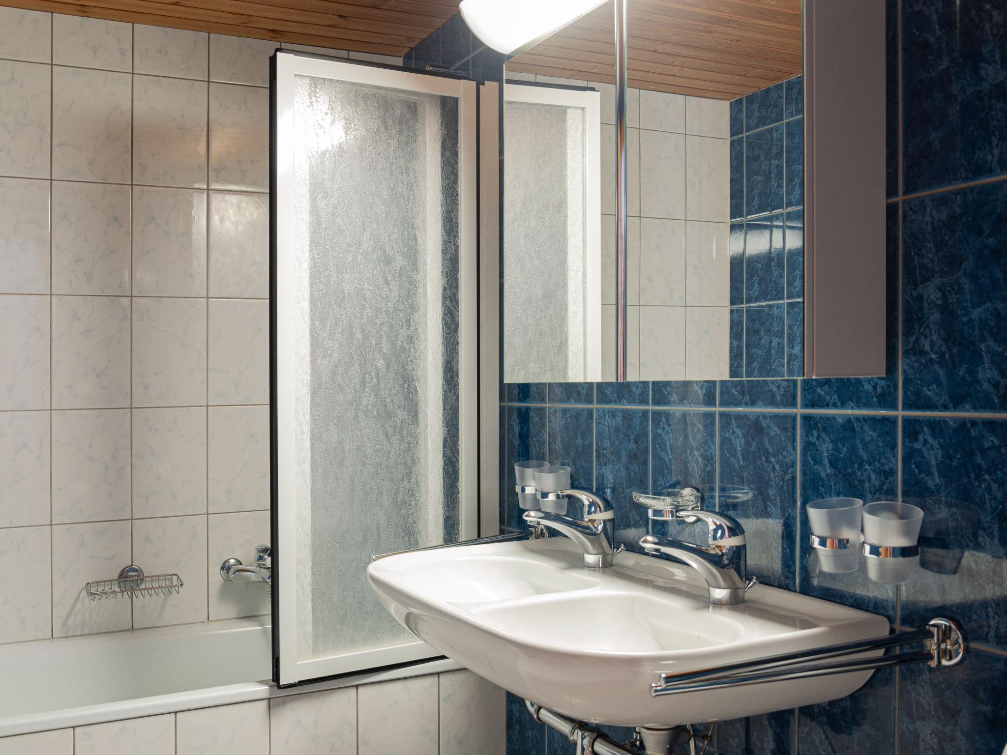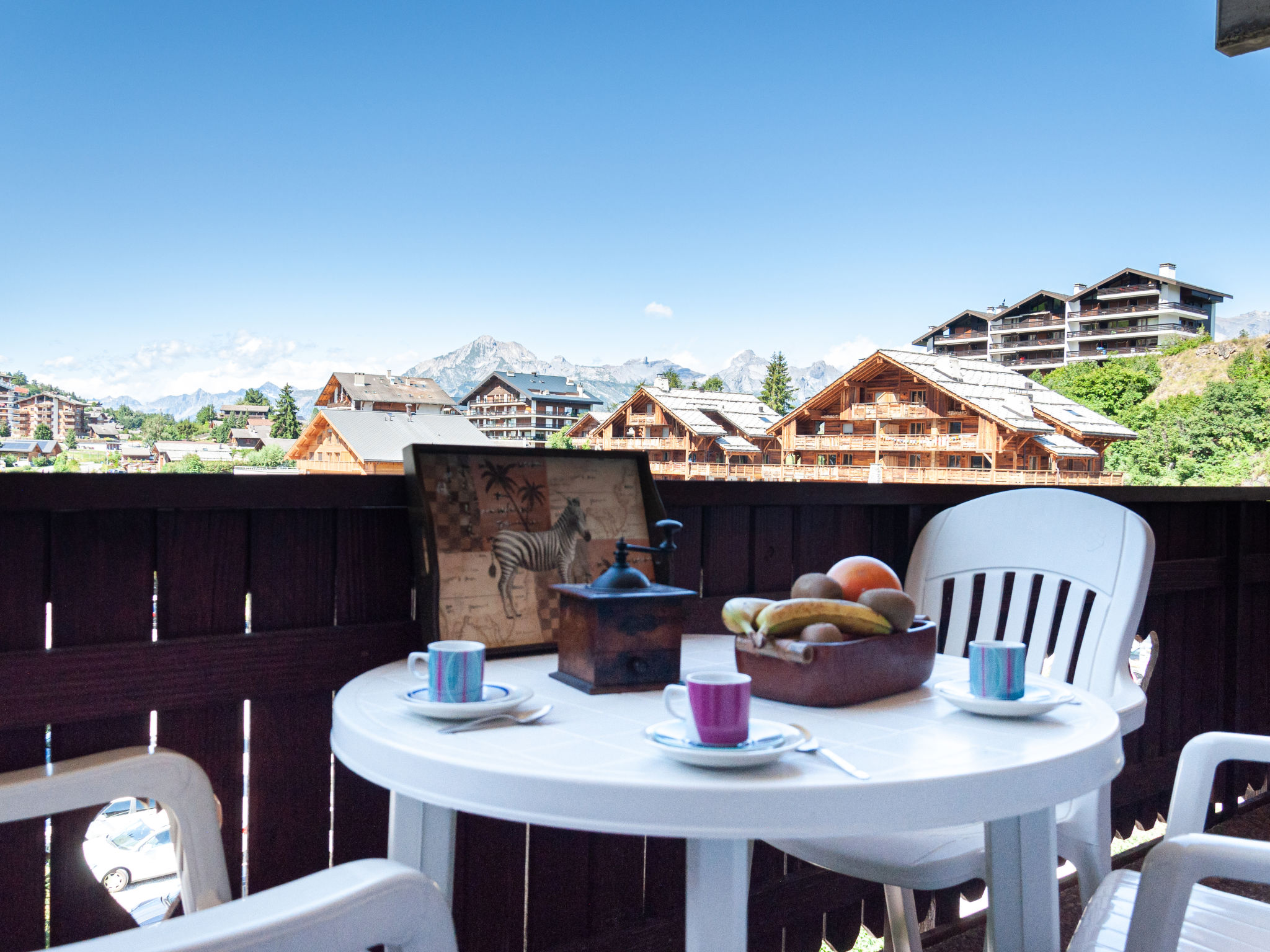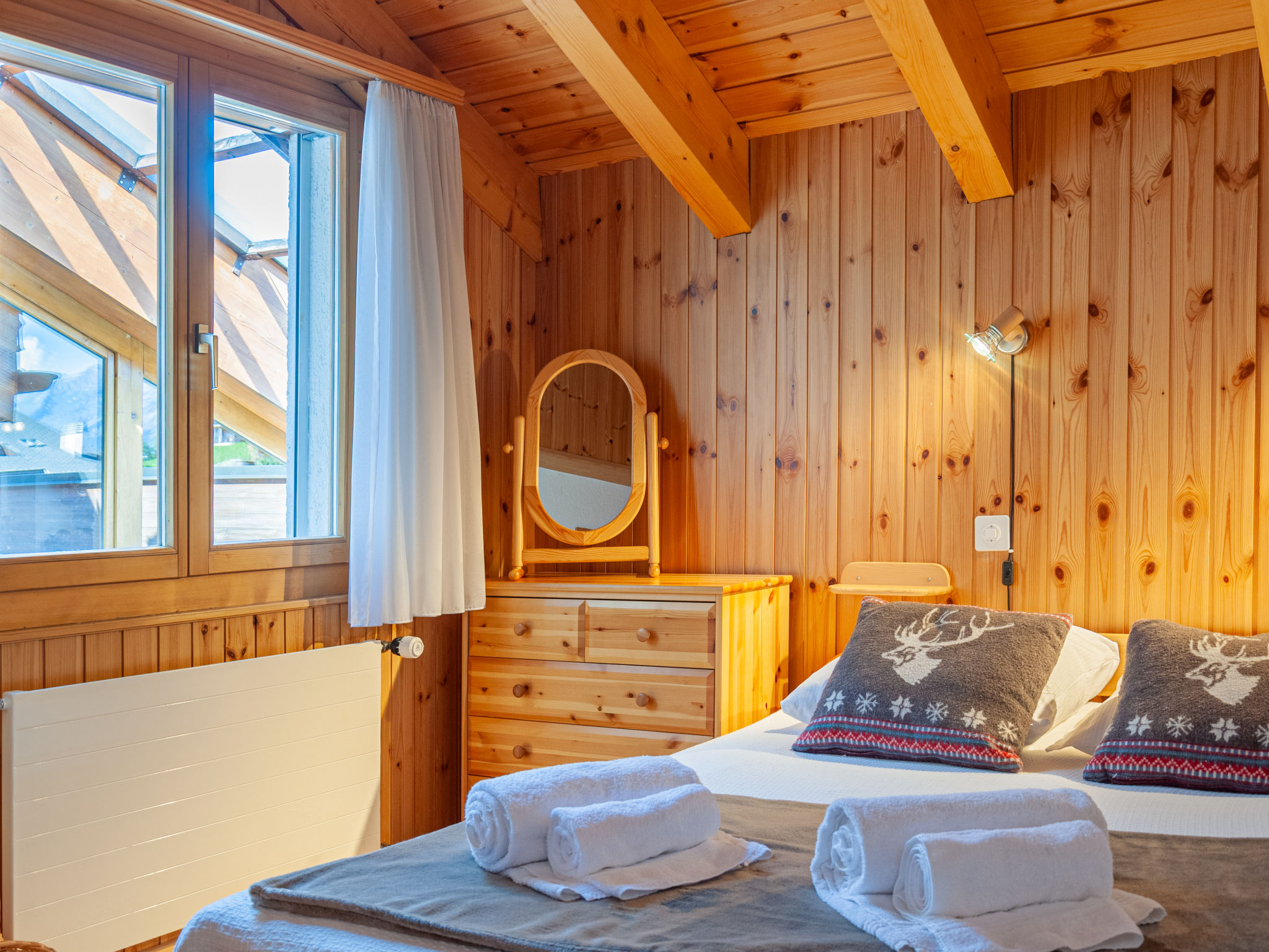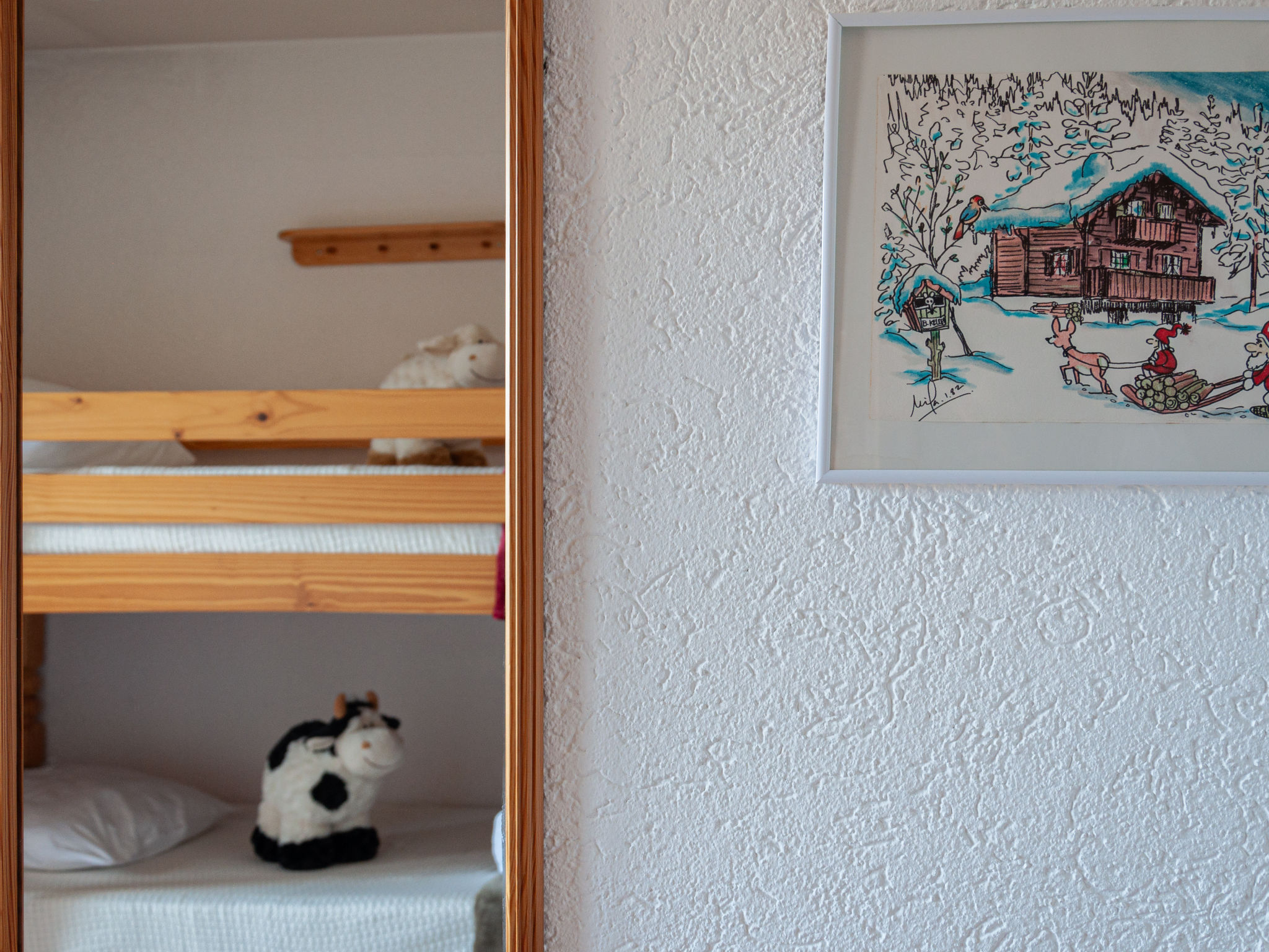 "Lake Placid A7", 4-room penthouse 90 m2 on 4th floor. Spacious and bright, with sloping ceilings, beautiful and tasteful furnishings: entrance hall. Large living/dining room with Scandinavian wood stove and cable TV. Exit to the balcony, to the terrace. 1 children's room with 1 x 2 bunk beds (90 cm, length 195 cm). Exit to the balcony, east facing position. 1 room with 1 french bed (140 cm, length 200 cm). 1 room with sloping ceilings with 1 french bed (160 cm, length 200 cm). Kitchen (dishwasher, 4 ceramic glass hob hotplates, microwave, electric coffee machine, Capsules for coffee machine (Delizio) extra, raclette grill, fondue Set (chinoise, cheese)). Bath/WC, sep. WC. Balcony, west facing position and, east facing position, large terrace, north facing position. Balcony furniture. View of the mountains and the resort. Facilities: hair dryer. Internet (WiFi, free). Parking space n A7 (roofed), height 230 cm. Please note: non-smokers only.