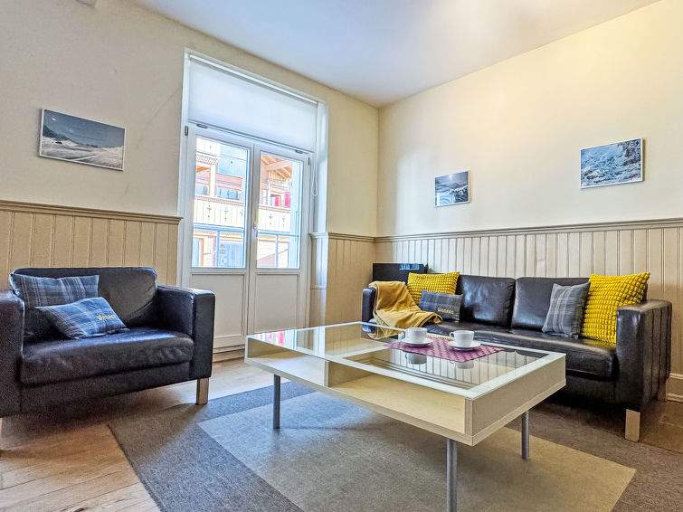 2-family house "Gertsch". In the centre of Wengen, in a central, busy position. In the house: bar. Pre-arrival grocery service. Shop, grocery, restaurant 10 m, bakery 50 m, bus stop "Lauterbrunnen (by train)" 3.1 km, railway station "Wengen" 100 m, outdoor swimming pool 600 m. Cable car, skisport facilities 30 m. Well-known lakes can easily be reached: Thunersee 13 km, Brienzersee 13 km. Please note: car-free holiday complex. Arrival via mountain railway. Arrival is only possible by train from Lauterbrunnen – 14 minutes driving time.