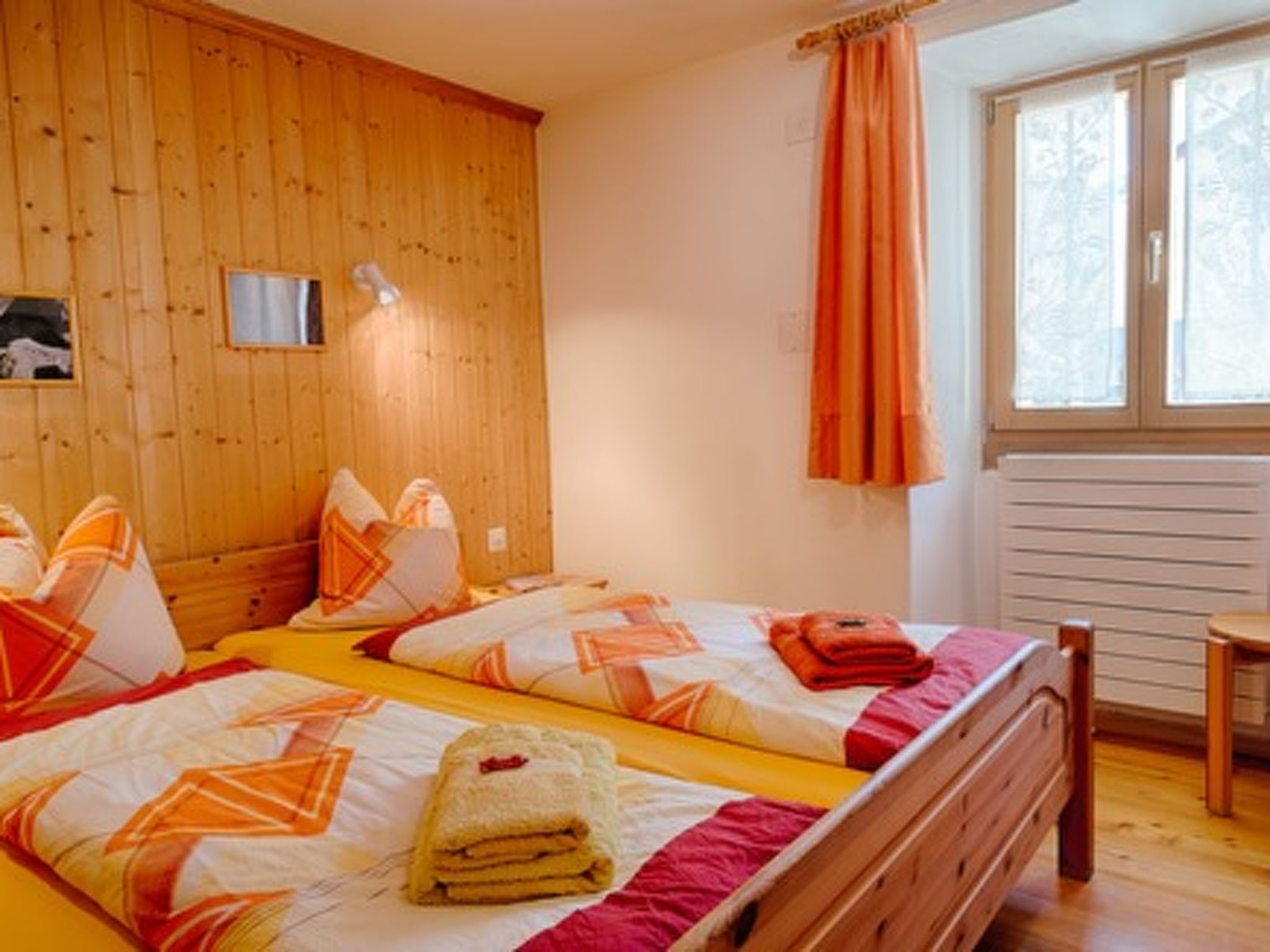 160 m2. More information by the provider: Large 8-bed apartment with 4 double rooms on two floors (160 m2), it is extremely comfortable, cozy and practically furnished. It offers a lot of space and is ideal to enjoy a vacation with a family of friends or together with grandparents or other friends. In the kitchen the housewives/men can really enjoy themselves. It is very comfortably equipped and some guests turn their vacations with us into real gourmet vacations. On the ground floor is one of four bedrooms. The other three double bedrooms are accessed via the nostalgic wooden staircase on the 1st floor. This way, some can retire for a while, while others can linger comfortably in the spacious Engadine living room at the mighty walnut table. On the ground floor there is a bathroom with a vaulted ceiling. The second bathroom is on the 1st floor. Both with window view to the east. The old pine and walnut wood that lines the living room and large parts of the apartment crackles and creaks and never loses its very special scent. The apartment is constantly kept in swing. Our goal is to offer you feel-good vacations. Translated with www.DeepL.com/Translator (free version)