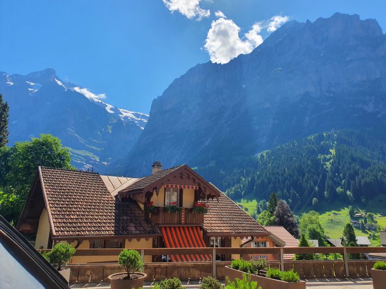 Residence "Chalet Abendrot apARTments". In the centre. In the house: reception, lounge, WiFi, table tennis, billiard table, playroom, lift, storage room for skis, central heating system. Pre-arrival grocery service. In Winter: please take snow chains. Communal covered parking (extra), public parking 200 m extra. Shop 400 m, restaurant 10 m, bus stop "Firstbahn" 80 m, railway station "Grindelwald Dorf" 800 m, outdoor swimming pool 2.5 km, indoor swimming pool 600 m. Golf course (9 hole) 2 km, tennis 1 km, minigolf 400 m, sports centre 600 m, mountain railway 800 m, gondola lift 80 m, ski rental 50 m, ski bus stop 80 m, cross country ski track 1 km, children's playground 600 m. Well-known lakes can easily be reached: Thuner-/Brienzersee 18 km. Please note: The owner does not accept any groups. Ski bus (free of charge). Neighbourhood highly sensitive to noise. Quietness and good behaviour expected. Indian restaurant "Golden India" in the house. The apartment house, built in chalet style, offers a youth room, a children's playroom, a garage (parking space CHF 98.00/week, reservation on arrival). Modern-rustic and cozy apartments, most with a spacious balcony or terrace and a wonderful view of the mountains. Please note: limited number of garage spaces. Pre-reservation not possible. Garage height and width: 12 parking spaces 2.09x2.06 m, 15 parking spaces 1.65x2.06 m. Max. 2000 kg.