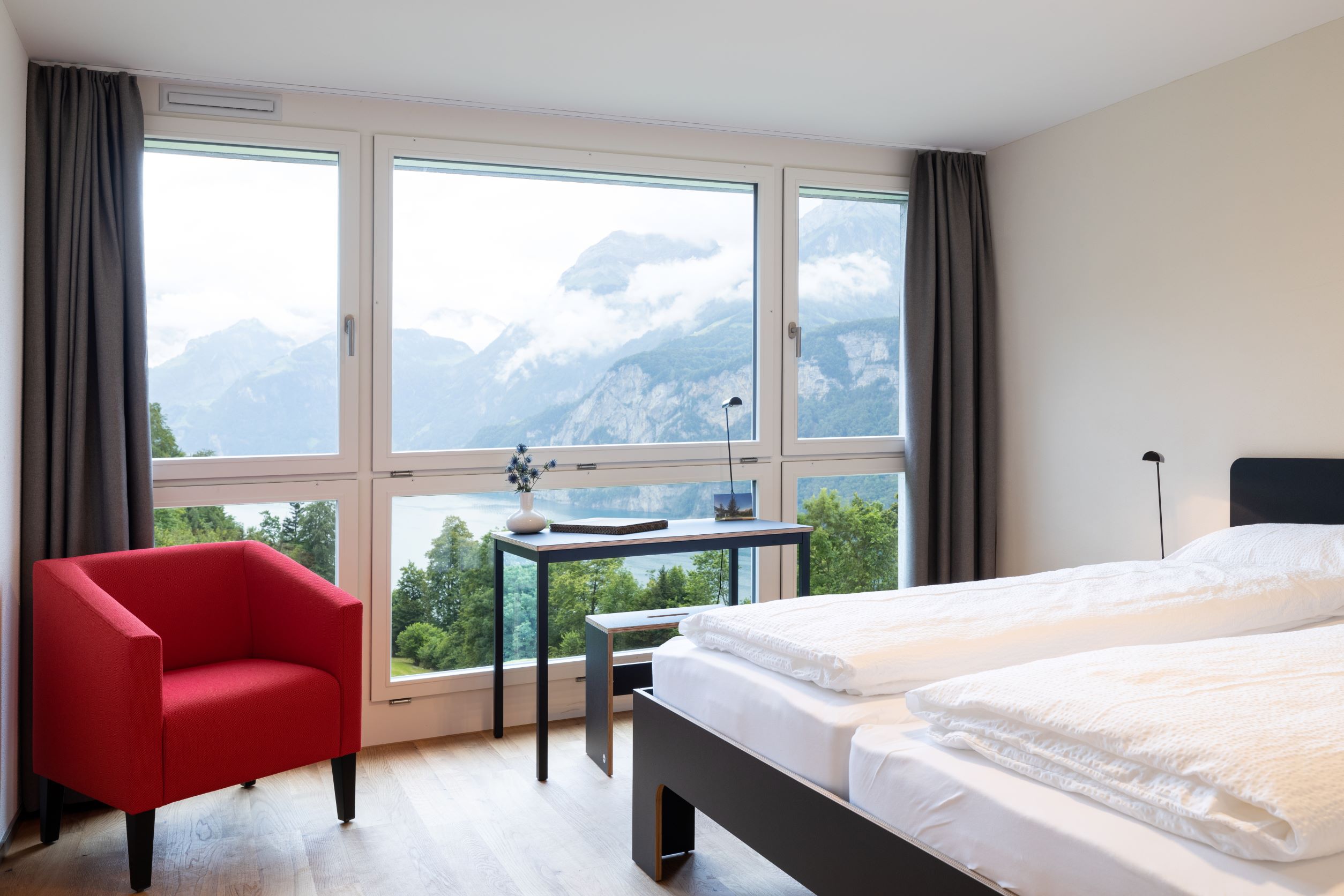 The Mattli is a seminar and education centre, a place of peace, recreation and relaxation. Even in the summertime, the Mattli is an ideal place to spend your holidays. Our rooms, newly renovated in May 2020, are family-friendly, uncomplicated and contemporary, the children can discover the path of the senses and let off steam in our play cave. Wellness at the Mattli Antoniushaus means: Enjoy the fantastic view on the large terrace and feel the energy in this place of power. A network of walking and hiking trails start on our doorstep. The mountain railways as well as the bathing area in Morschach-Stoos round off the offer. You can find more information about our house with its own course program on our website > www.antoniushaus.ch/