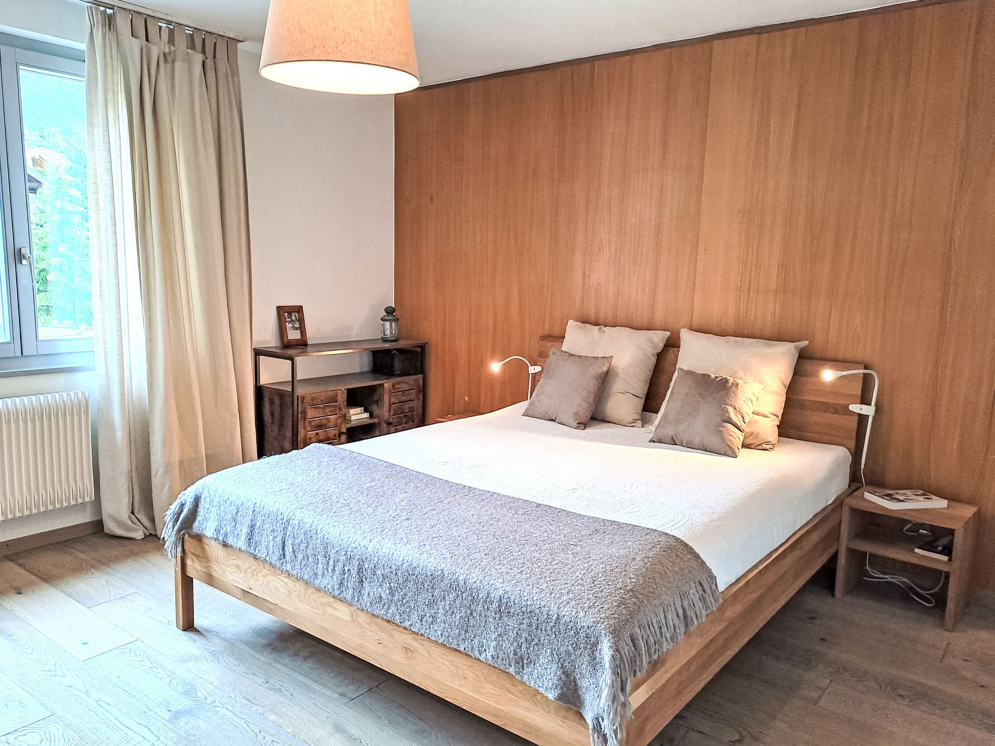 "Beausoleil 9", 3-room apartment 80 m2 on 2nd floor. Fully renovated in 2018, comfortable and tasteful furnishings: large living/dining room with cable TV. Exit to the balcony. 1 room with 1 french bed (1 x 160 cm, length 200 cm). 1 room with 2 beds (90 cm, length 200 cm). Large, open kitchen (4 hot plates, oven, dishwasher, toaster, kettle, electric coffee machine, Capsules for coffee machine (Nespesso) extra, raclette grill). Shower/WC, sep. WC. Balcony furniture. Panoramic view of the mountains. Facilities: washing machine, dryer. Internet (WiFi, free). Parking space n 9 (1 car). Please note: non-smokers only.