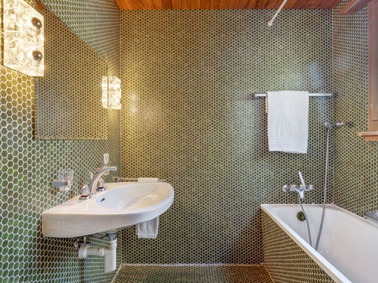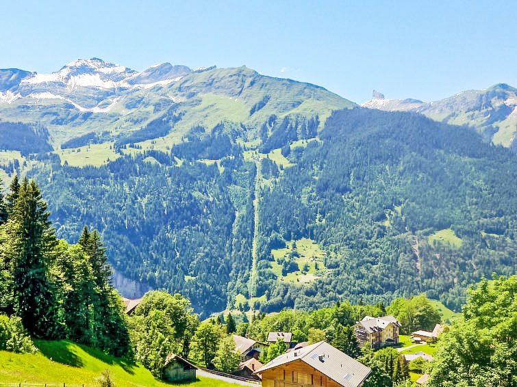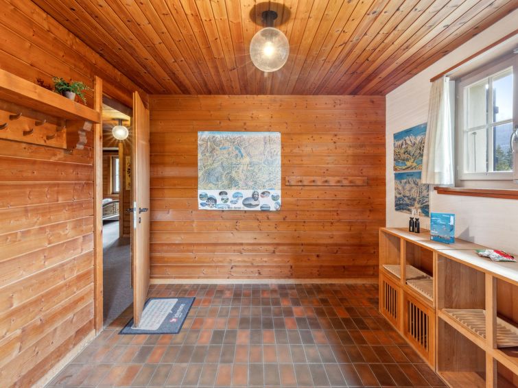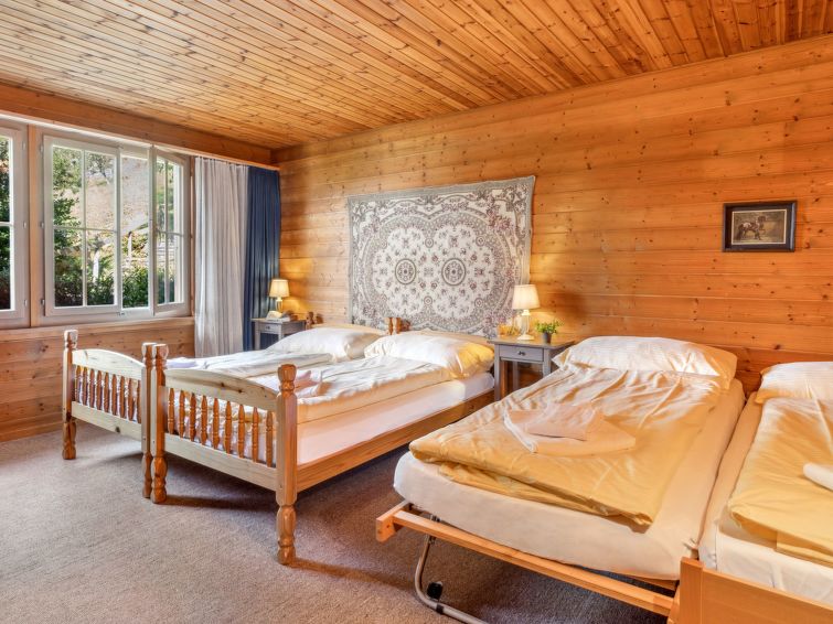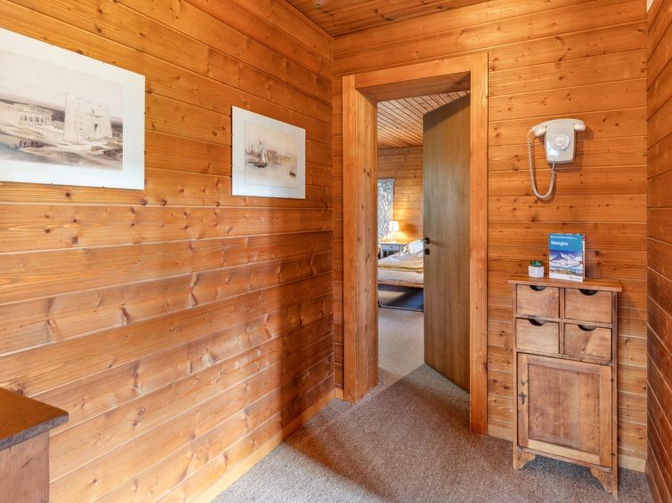 Chalet "Arche", 2 storeys, built in 1976. 1 km from the centre of Wengen, in a quiet, sunny position. In the house: central heating system. Pre-arrival grocery service. Stepped path (60 steps) to the house. Shop 1 km, supermarket 1 km, restaurant 1 km, bar 1 km, bakery 1 km, 15 minute walk to the centre, bus stop "Lauterbrunnen (by train)" 4 km, railway station "Wengen" 1 km. Cable car 1 km, skisport facilities 1 km. Well-known lakes can easily be reached: Thunersee 13 km, Brienzersee 13 km. Please note: car-free holiday complex. Arrival via mountain railway. Arrival is only possible by train from Lauterbrunnen – 14 minutes driving time.