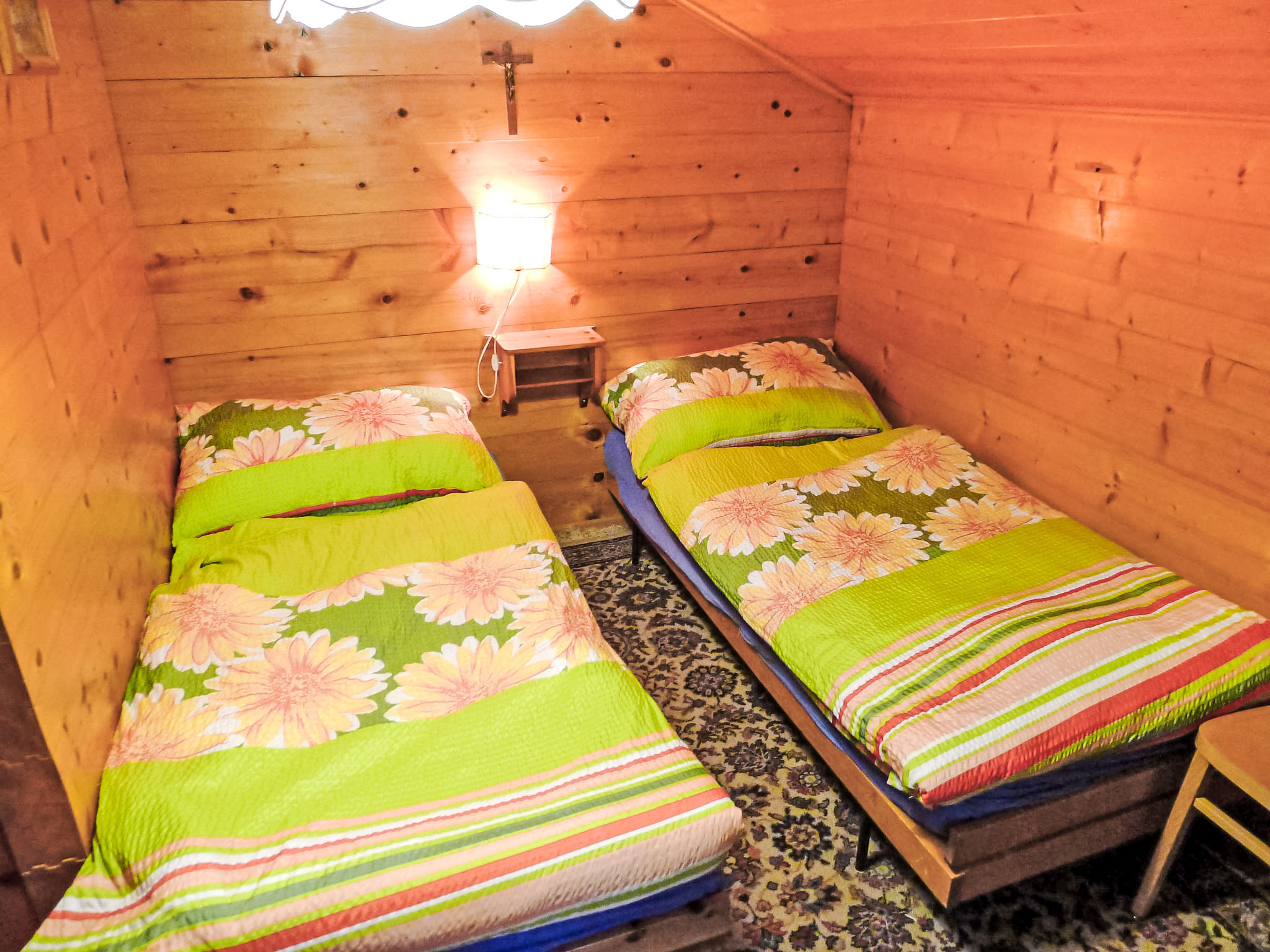 3-room apartment 47 m2 on 2nd floor. Simple and cosy furnishings: 1 double bedroom with sloping ceilings. 1 room with sloping ceilings with 2 beds. Kitchen-/living room (4 hot plates, oven) with dining table, satellite TV (flat screen), radio and CD-player. Exit to the balcony. Bath/WC. Balcony, south facing position. Terrace furniture. Very beautiful view of the mountains and the countryside. Facilities: Internet (WiFi, free). Parking at 20 m. Please note: non-smokers only. Bath tub without shower curtain.