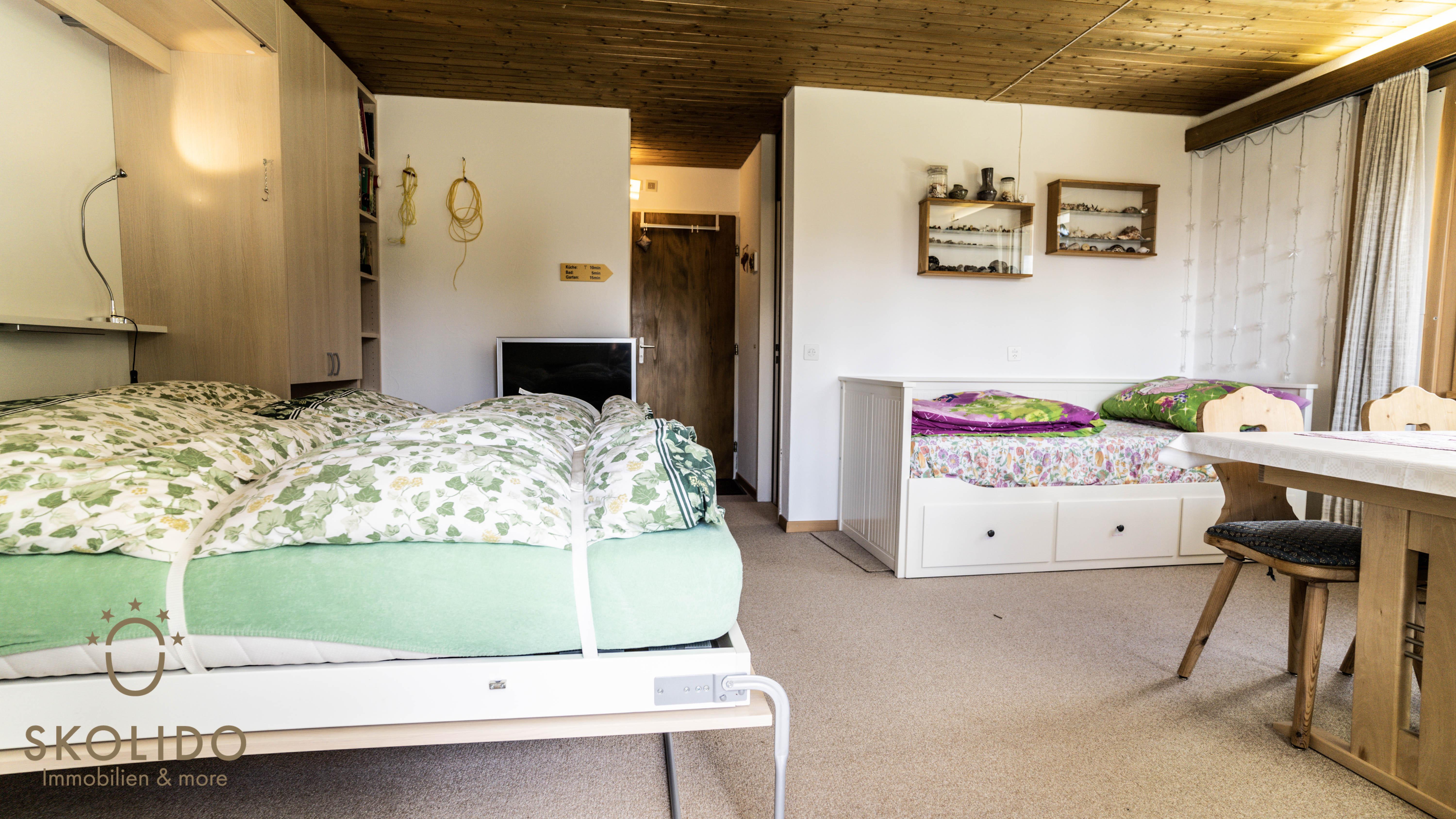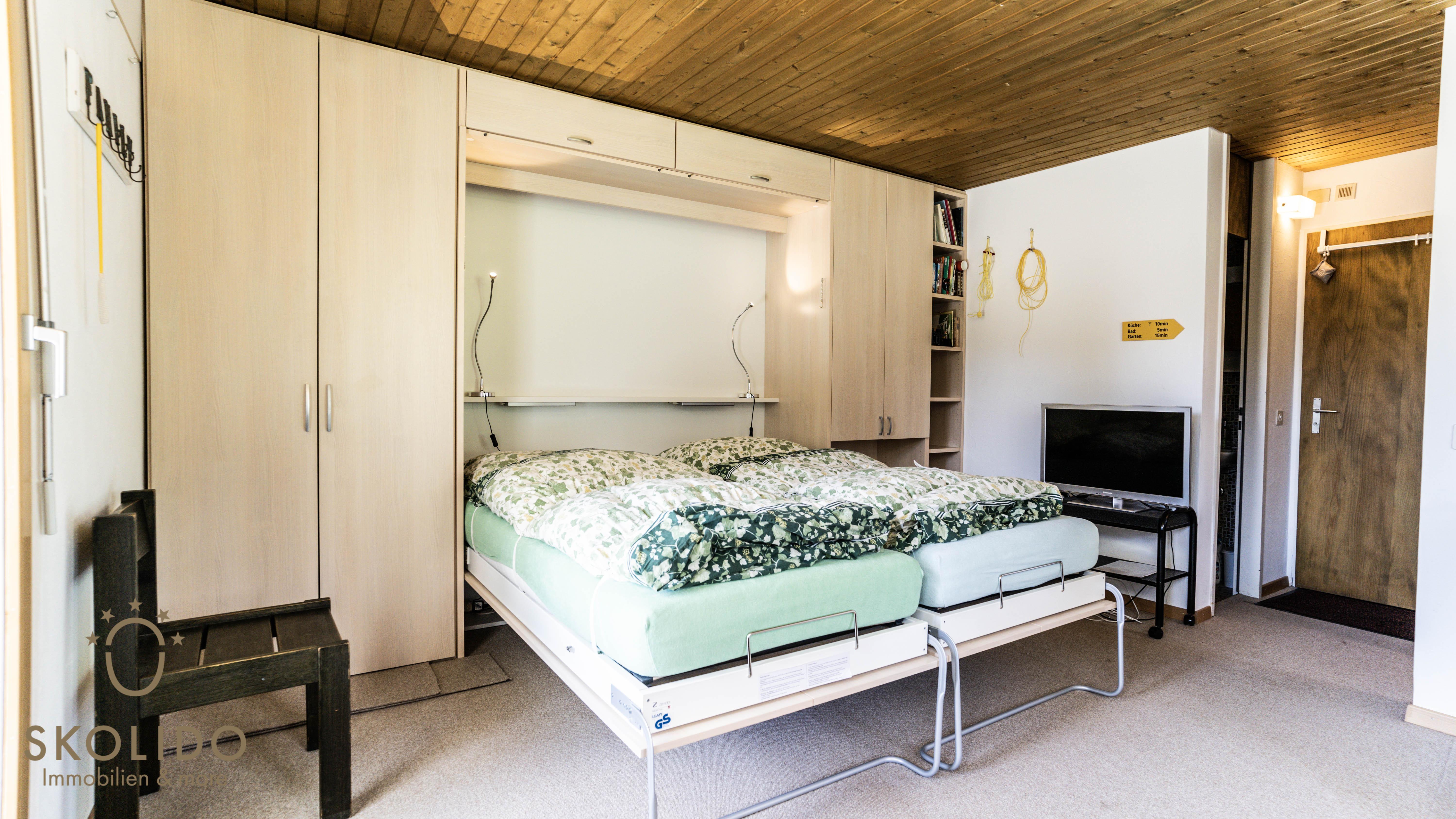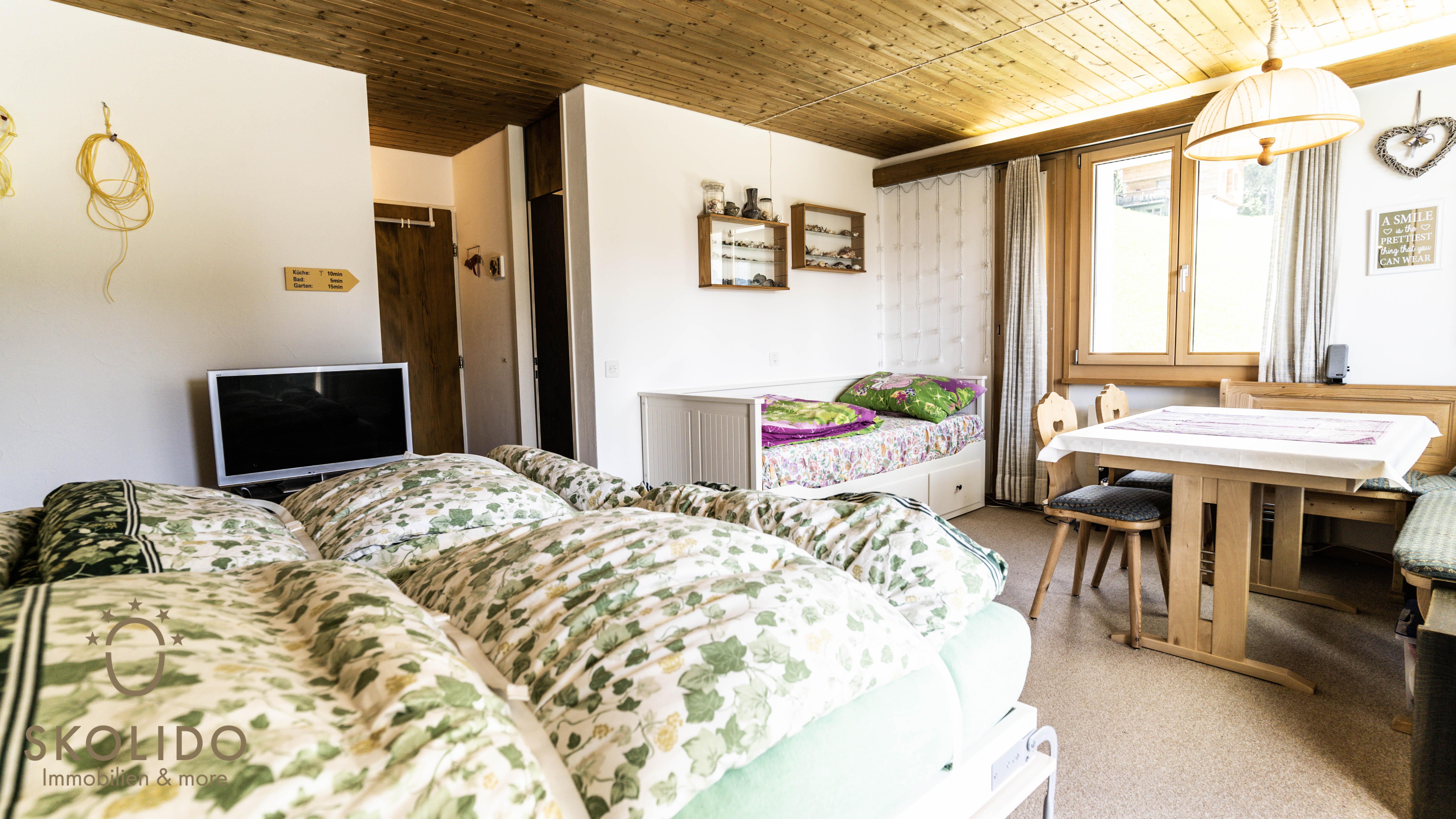 This studio is located in the house Caroline on the second floor. The house is situated in a quiet area not far from restaurants and ski lifts. Shopping facilities are available directly at the Riederalp cable car (Riederalp Mitte). The studio is connected to the road network of Riederalp and is therefore easy to reach on foot (winter skis) or by mountain taxi. The location offers a unique view of the alpine panorama including the Matterhorn.