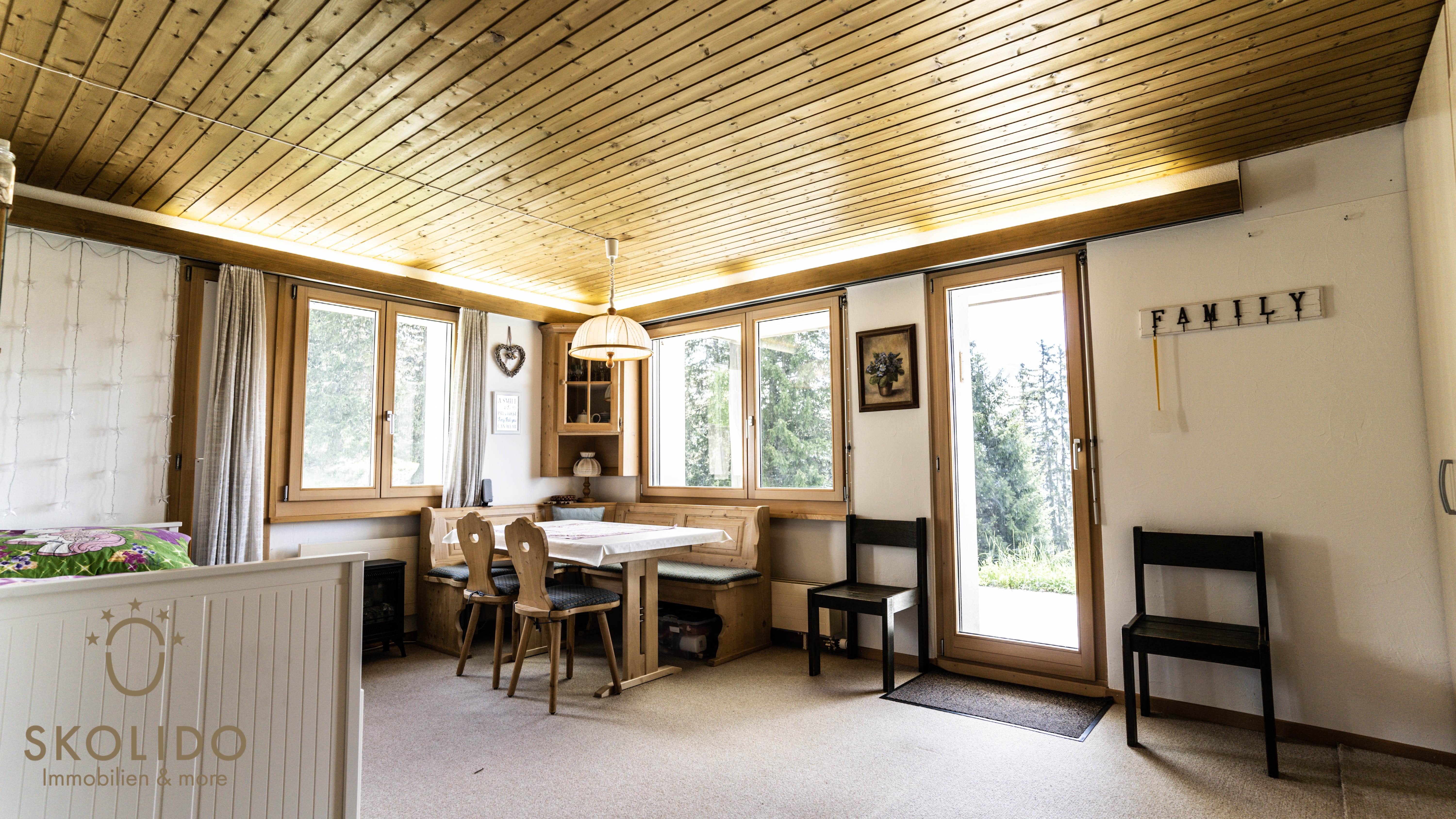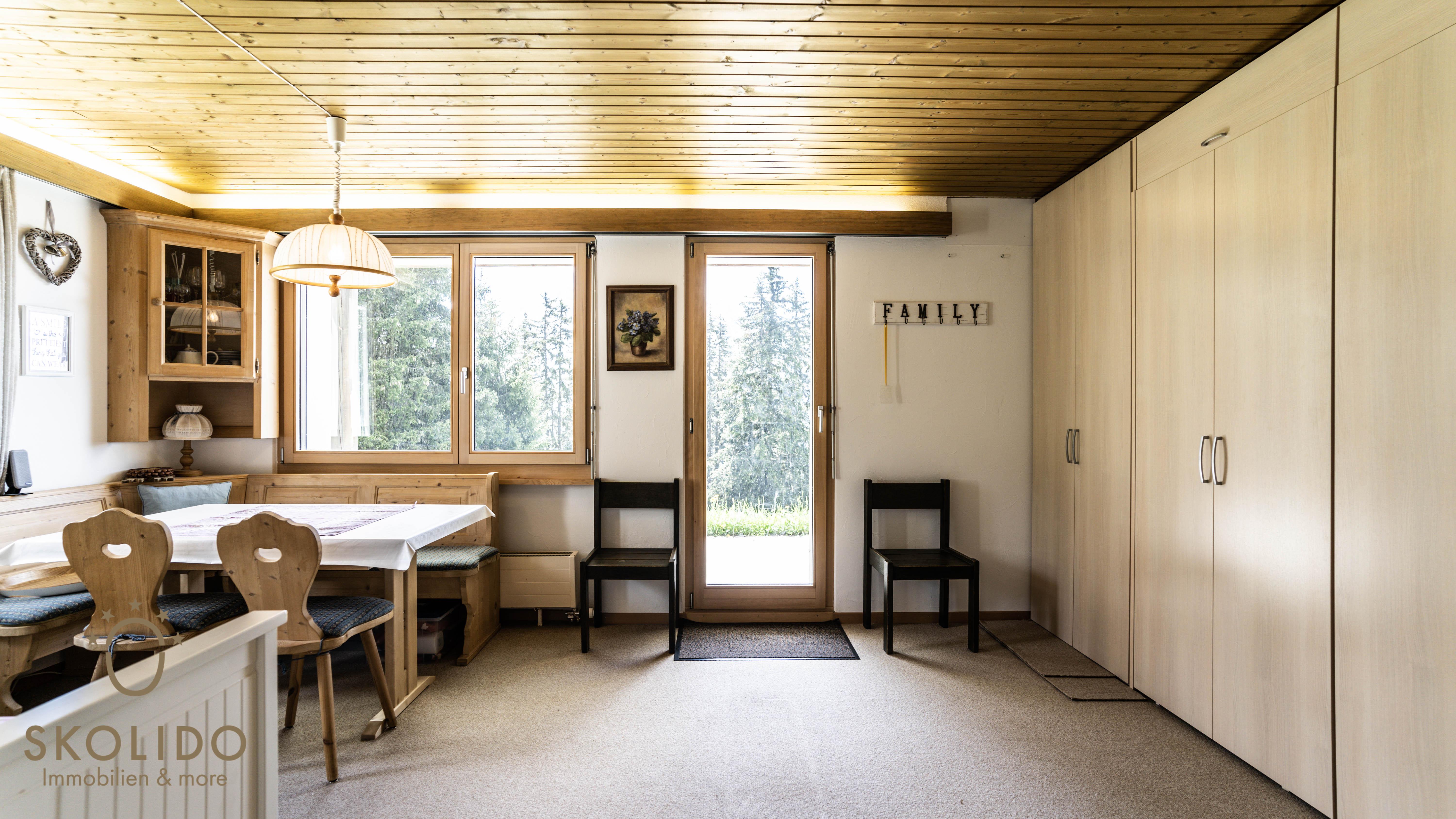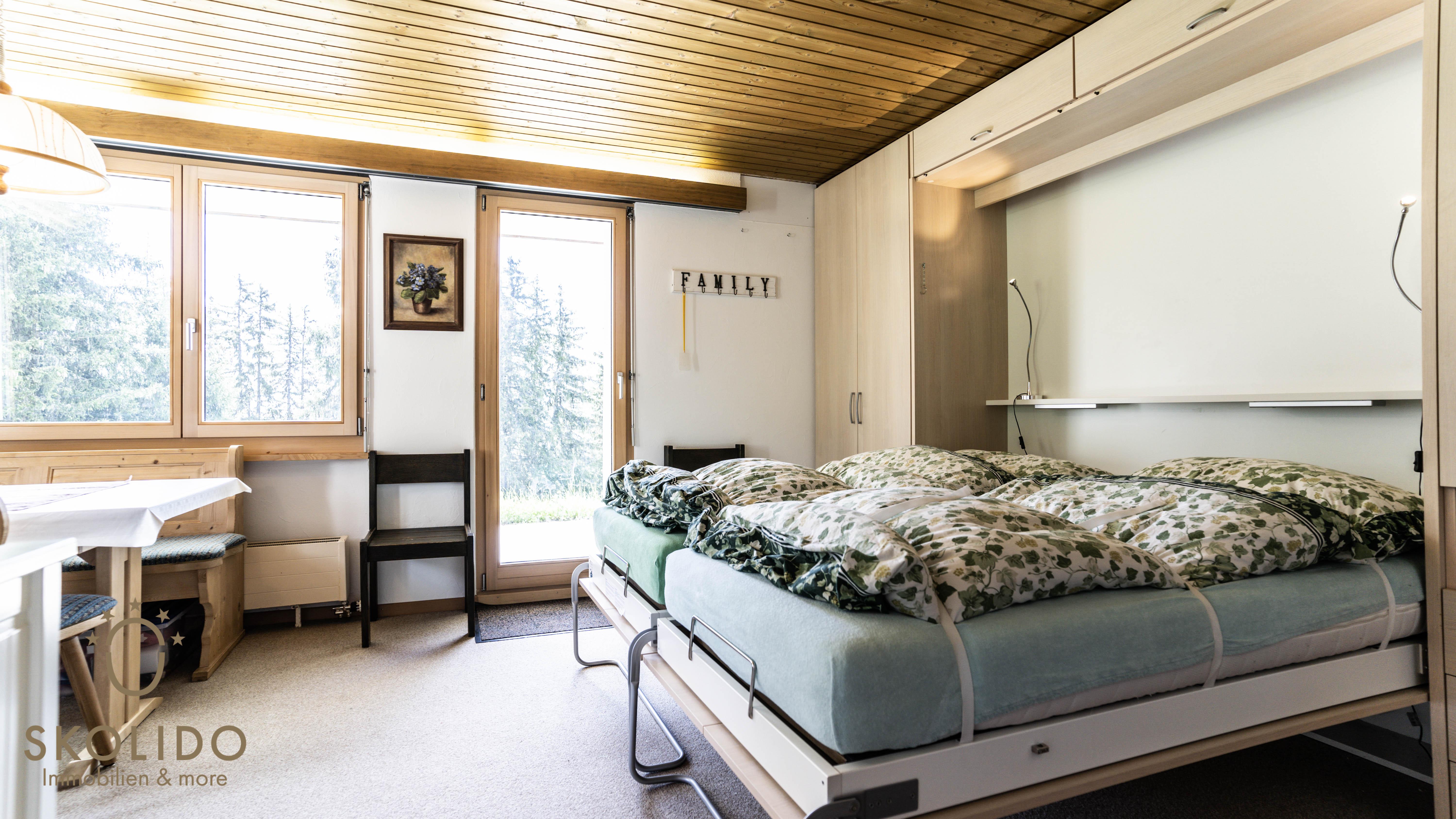 This studio is located in the house Caroline on the second floor. The house is situated in a quiet area not far from restaurants and ski lifts. Shopping facilities are available directly at the Riederalp cable car (Riederalp Mitte). The studio is connected to the road network of Riederalp and is therefore easy to reach on foot (winter skis) or by mountain taxi. The location offers a unique view of the alpine panorama including the Matterhorn.