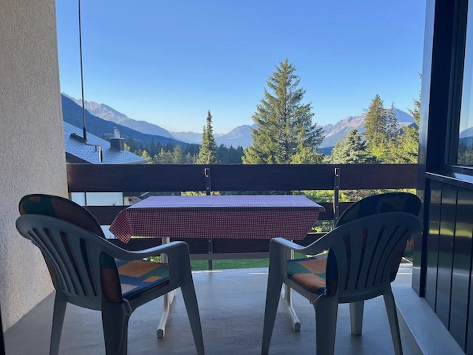 The Chesa Clois apartment building is in a quiet, sunny location away from the main street, 200m from the village center. The cross-country ski trail and nearest skilift can be reached from the building on skis in the winter. Ice rink, curling and tennis courts nearby. rooftop terrace, house bar (only in winter); common room with TV, skittle alley (extra), table tennis, billiards (extra), children's play room, kiosk, elevator, laundry room. small swimming-pool and sauna (extra).